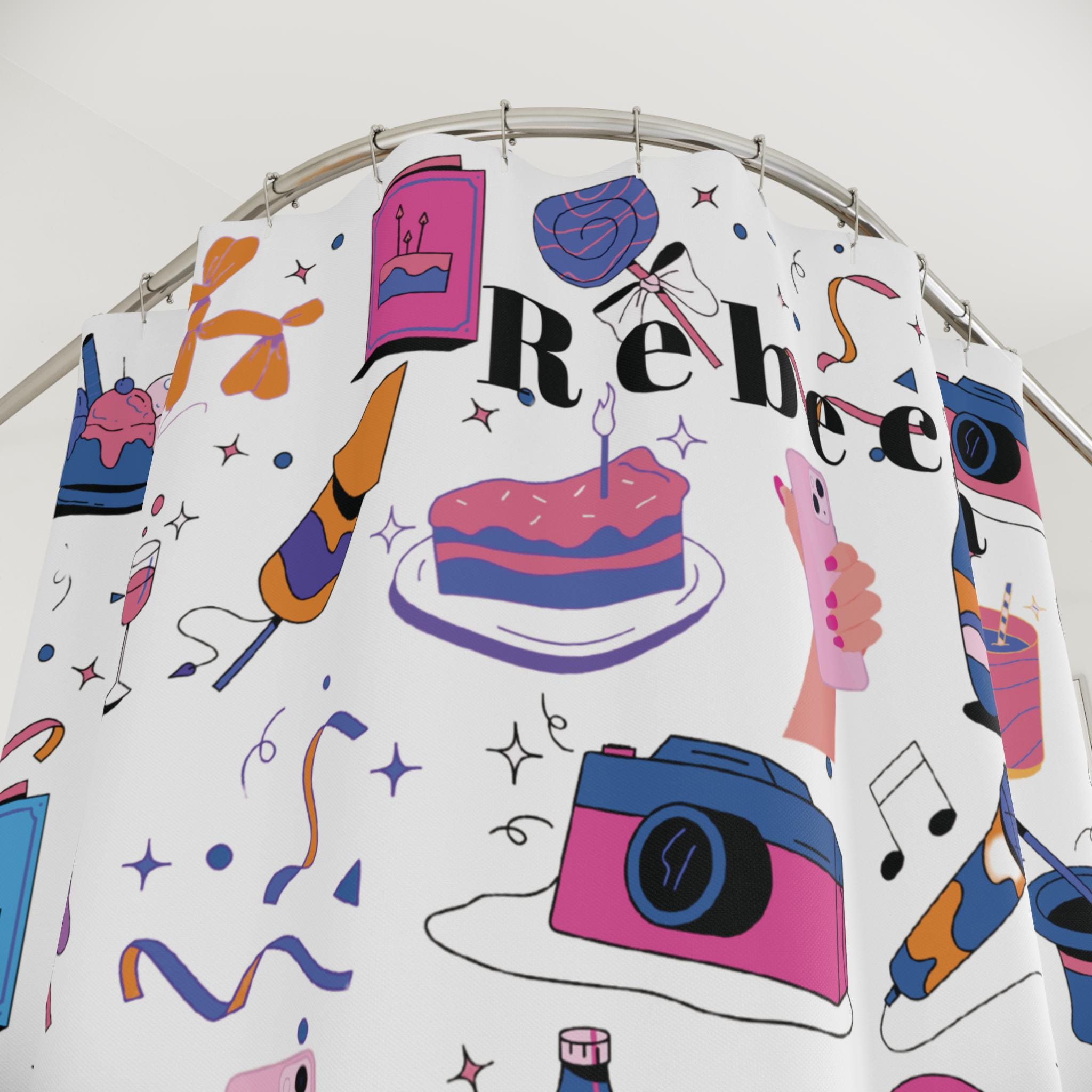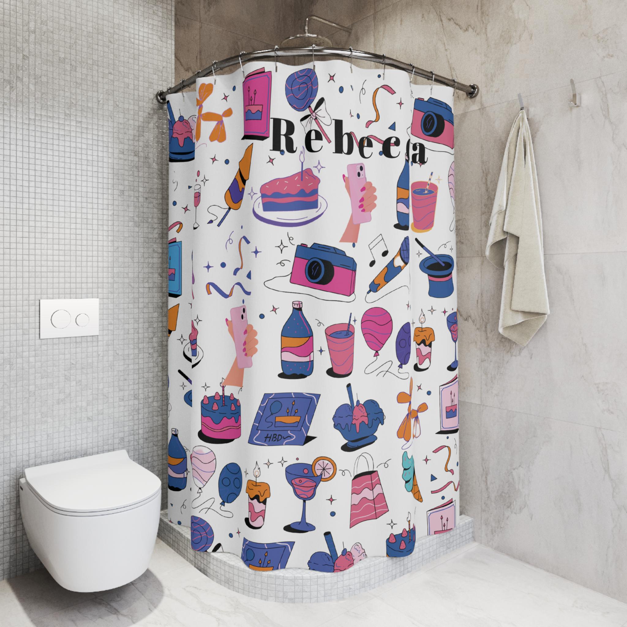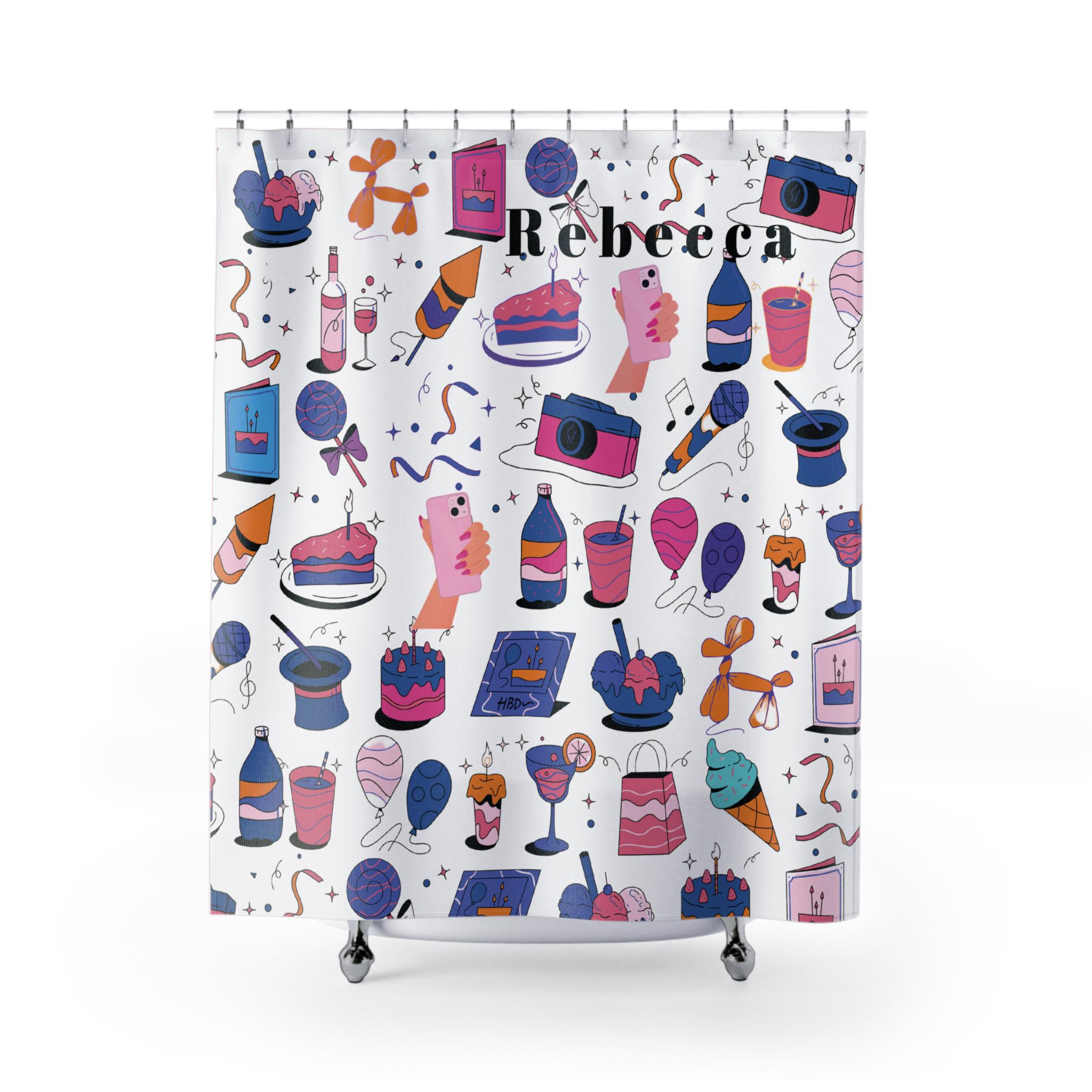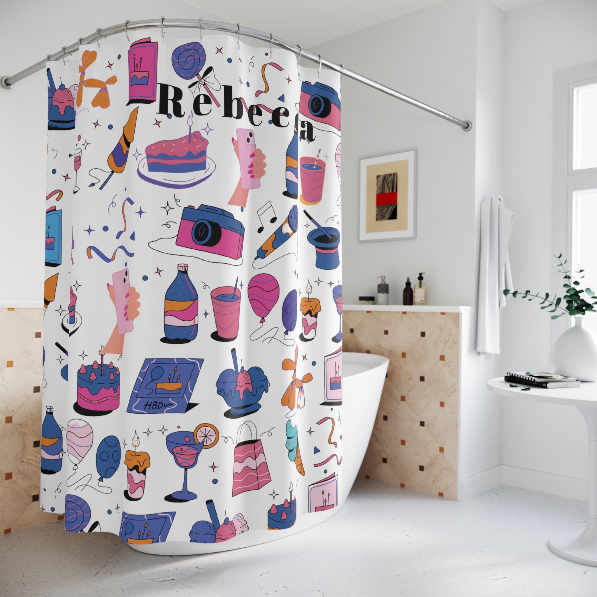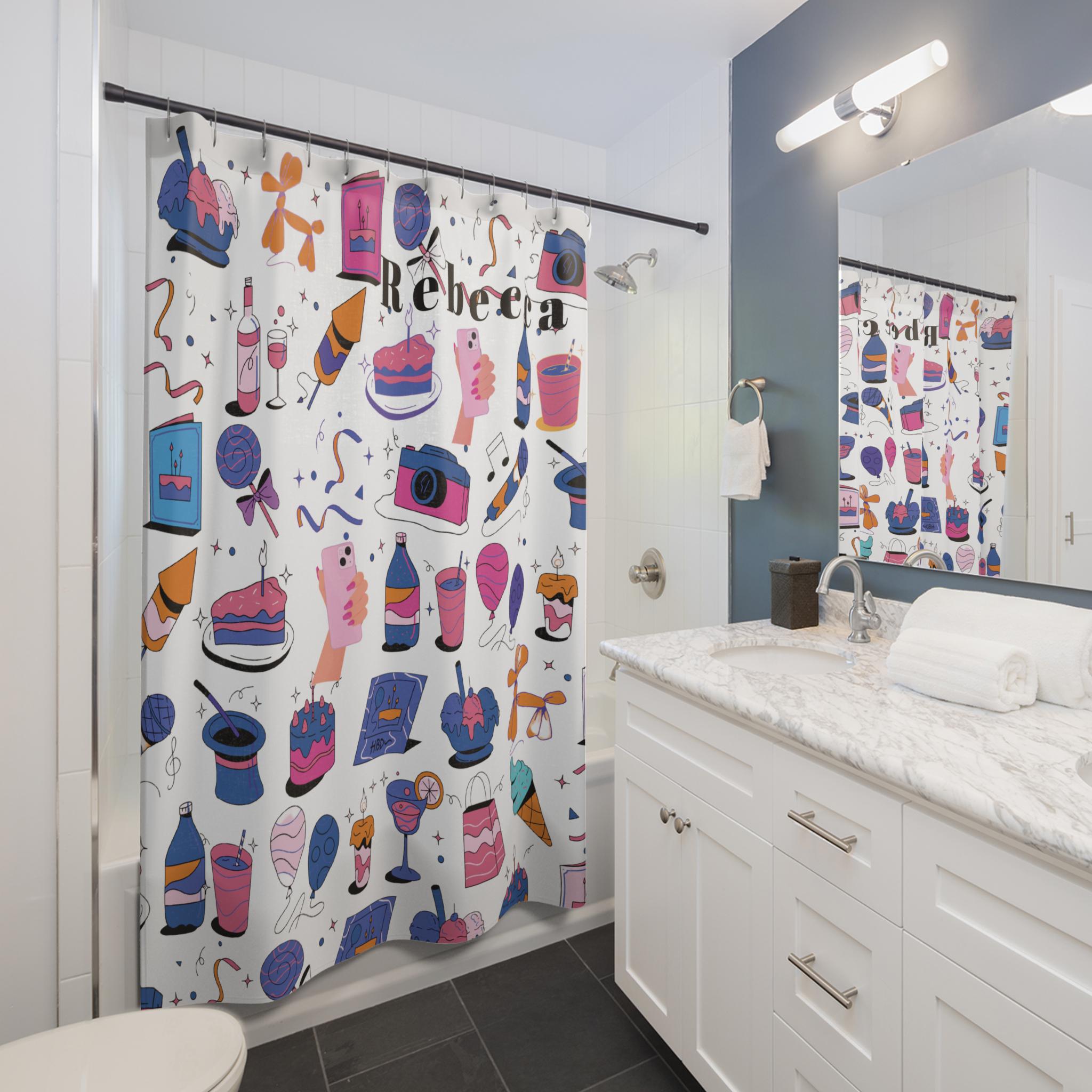 A retro women's shower curtain that can be personalized, made with the help of AI. This shower curtain gives off a vintage vibe and can add a unique touch to any bathroom. Perfect for those looking to add a personalized touch to their home decor. Ideal for special occasions like birthdays, housewarmings, or as a thoughtful gift for a loved one.