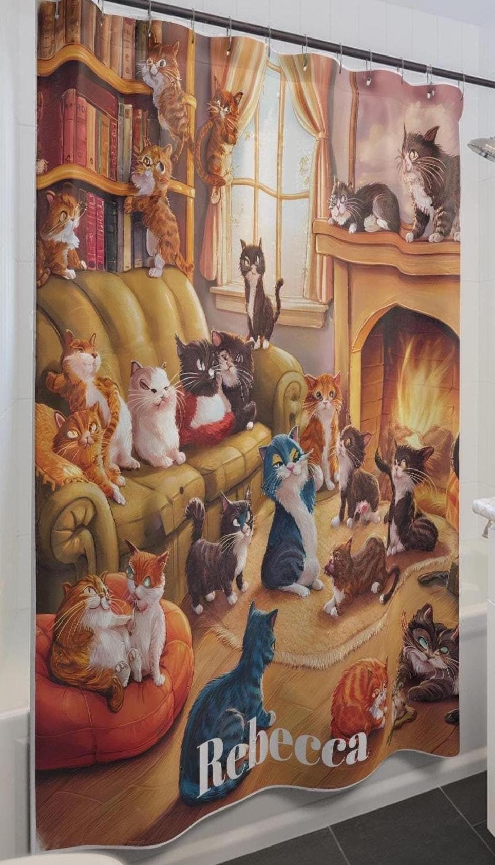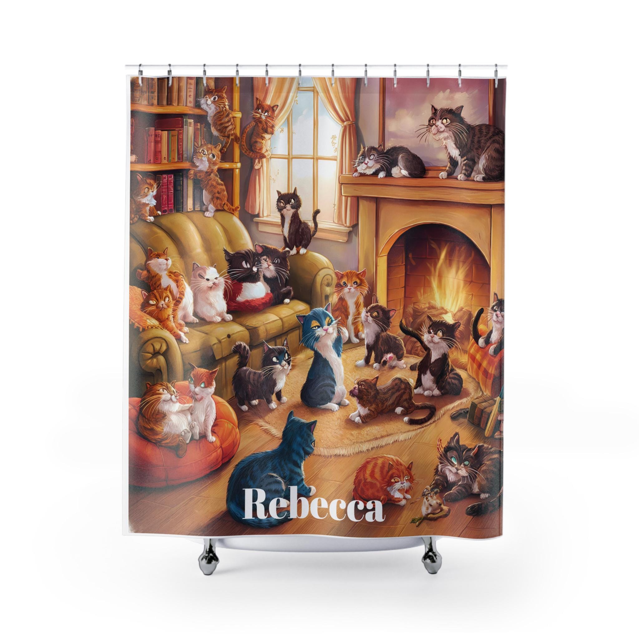 Cat custom shower curtain, Home Decor, Animal Themes, Gifts