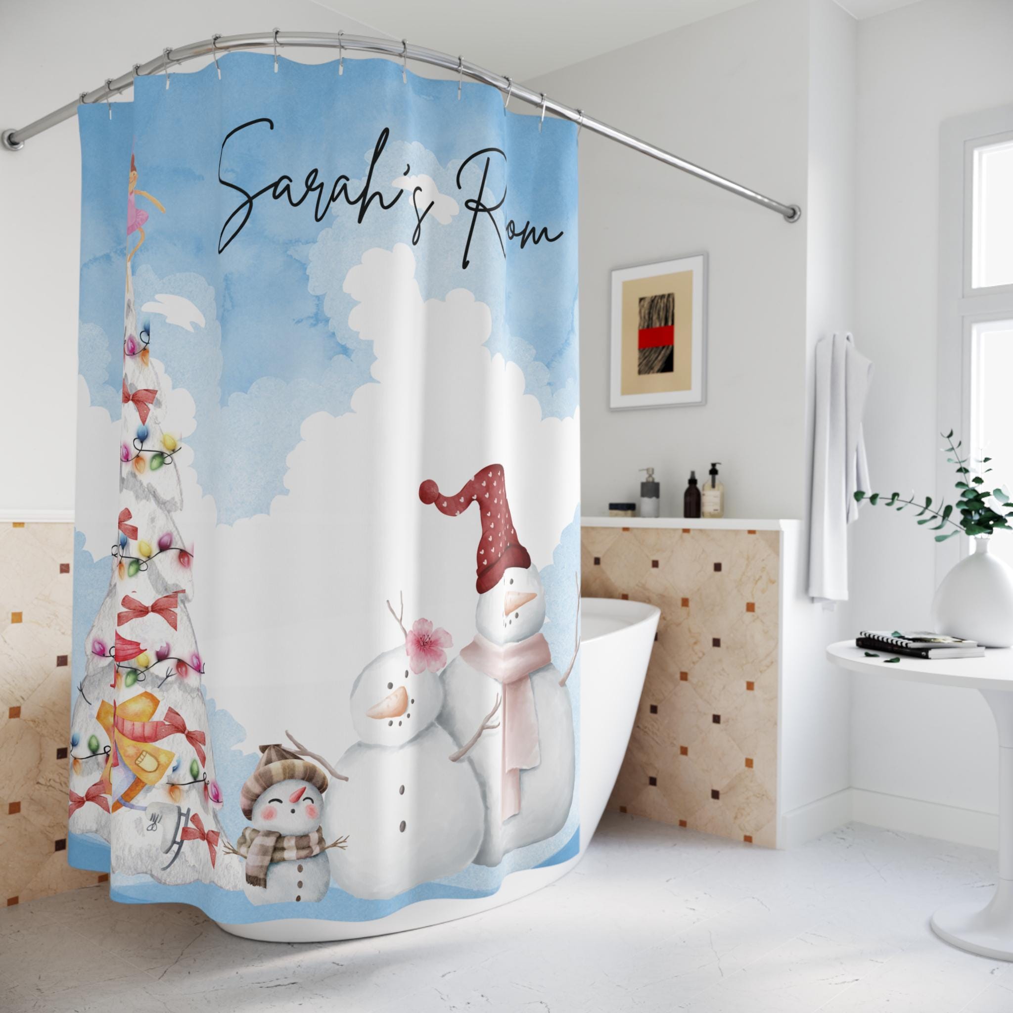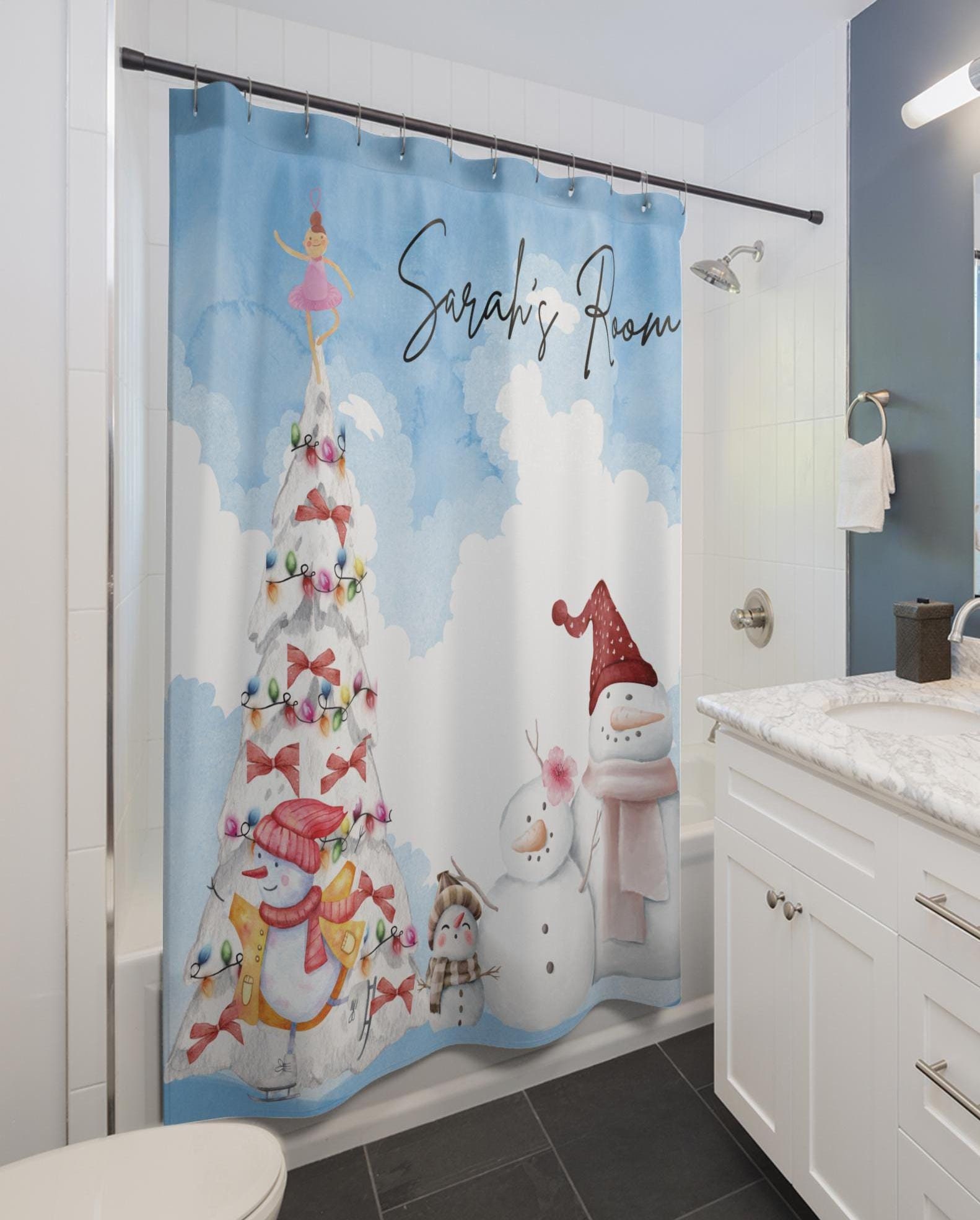 Personalized Christmas Shower Curtain, Winter Wonderland Decor