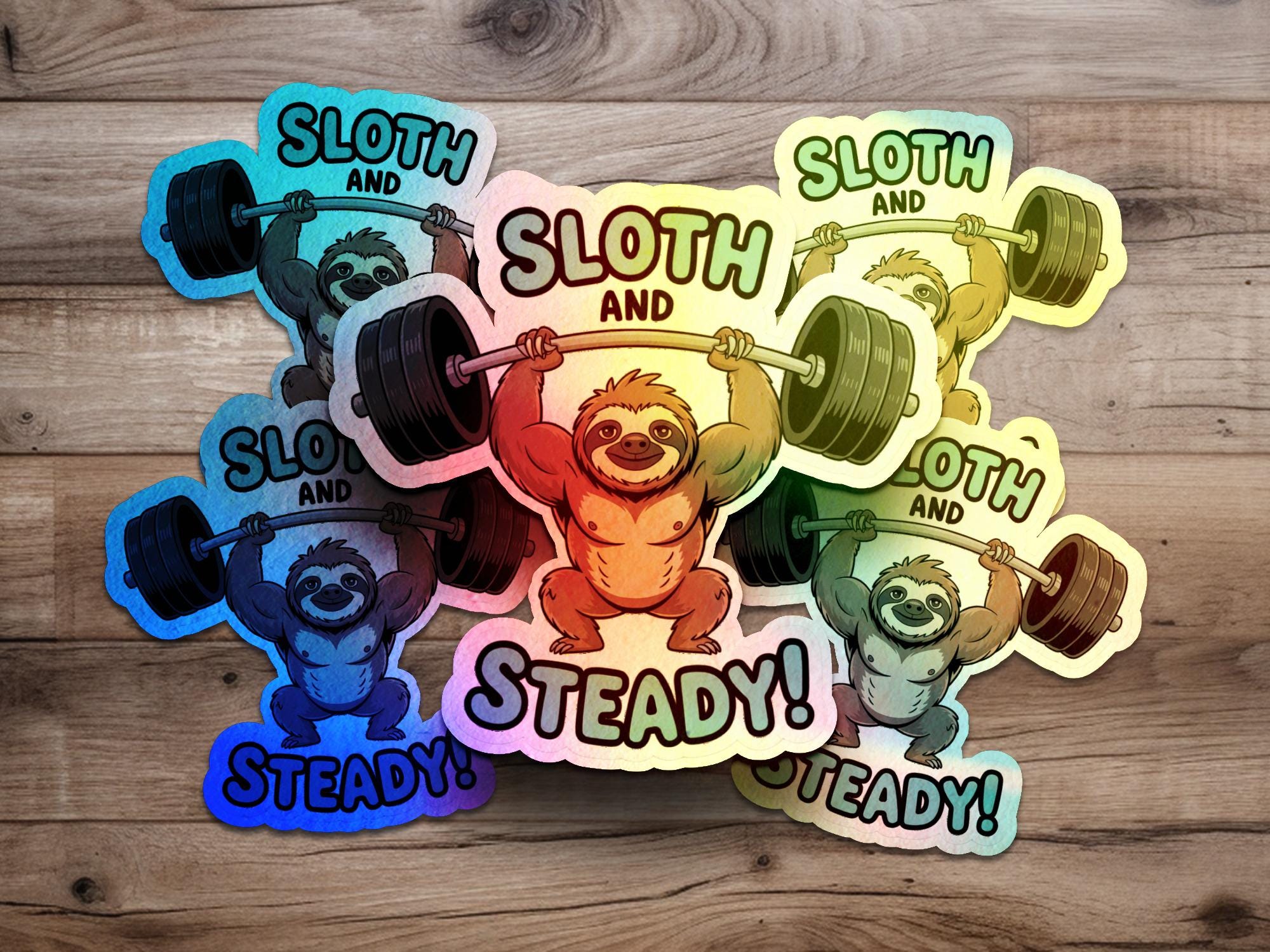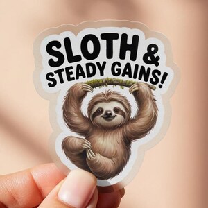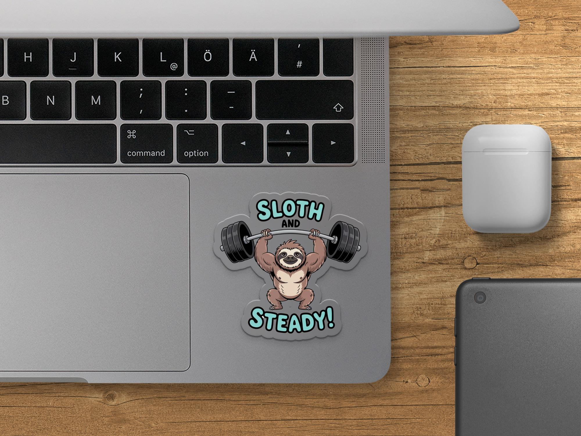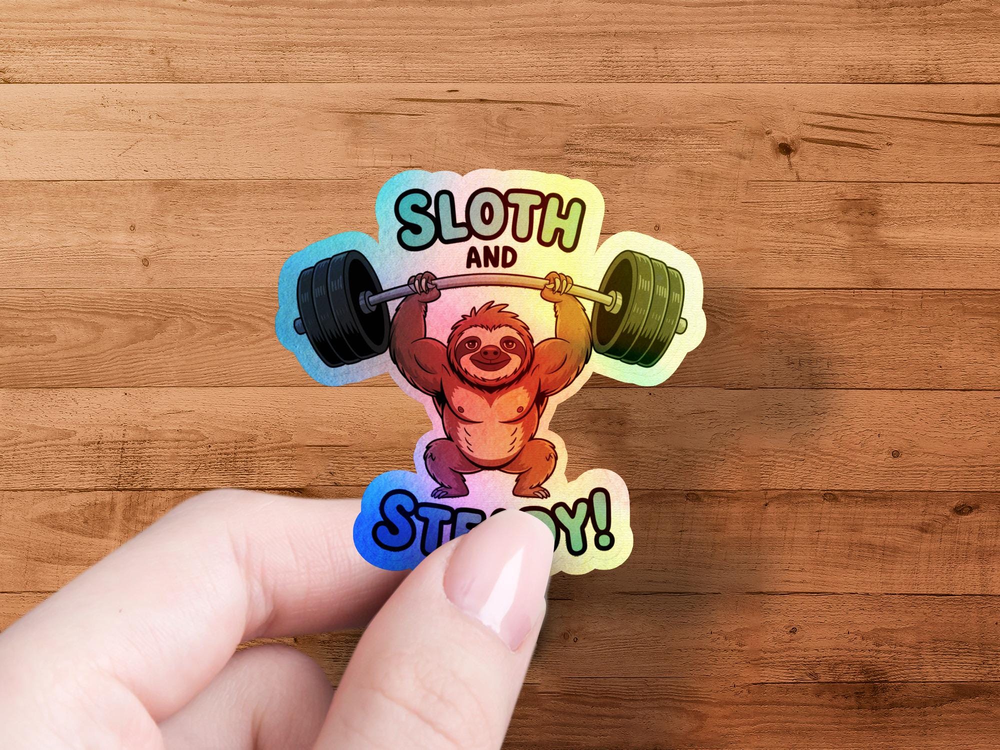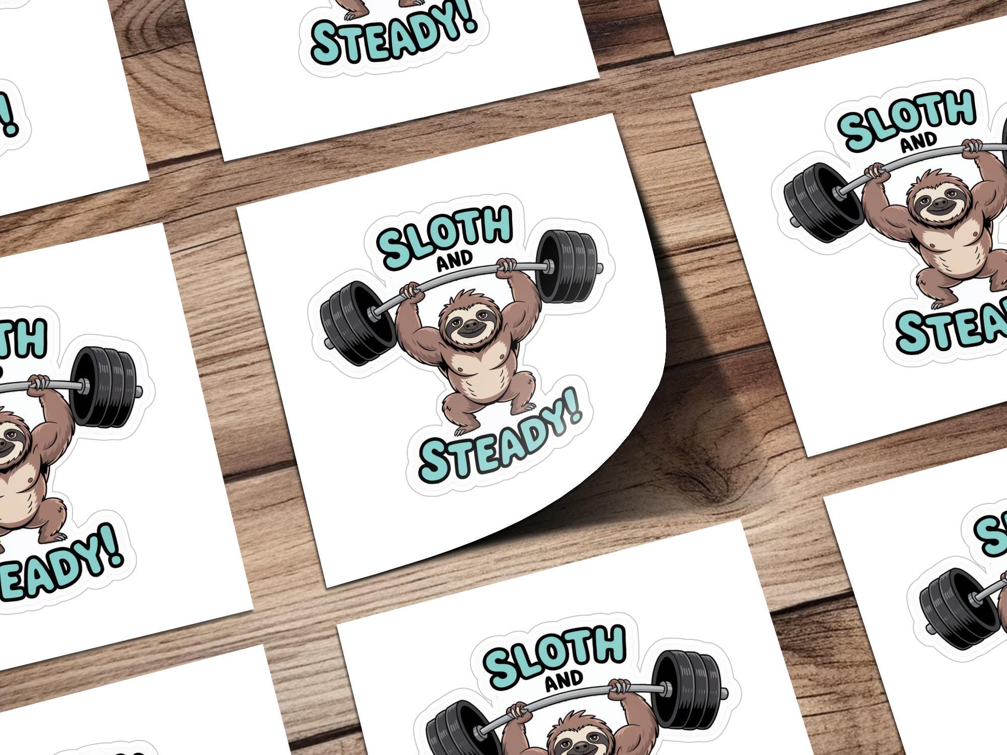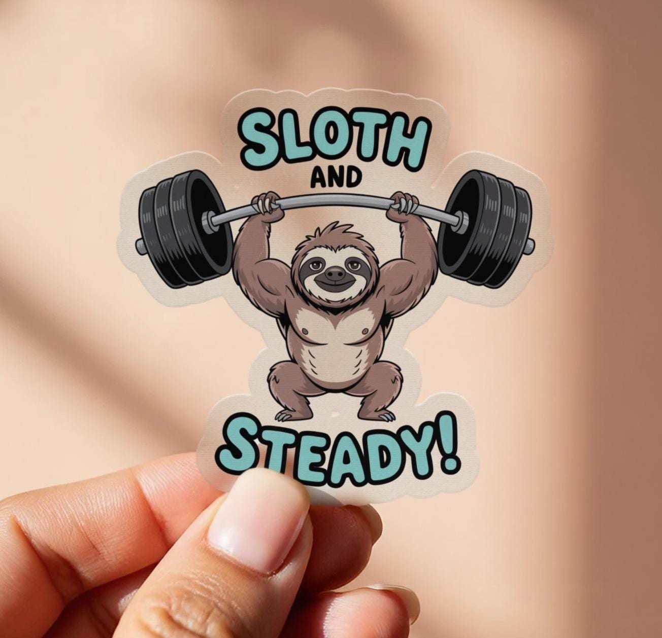 This funny sticker features a sloth lifting weights, perfect for adding a touch of humor to your belongings. This unique design is ideal for gym enthusiasts, fitness lovers, or anyone who appreciates a good laugh. Decorate your laptop, water bottle, notebook, or any smooth surface with this high quality vinyl sticker.