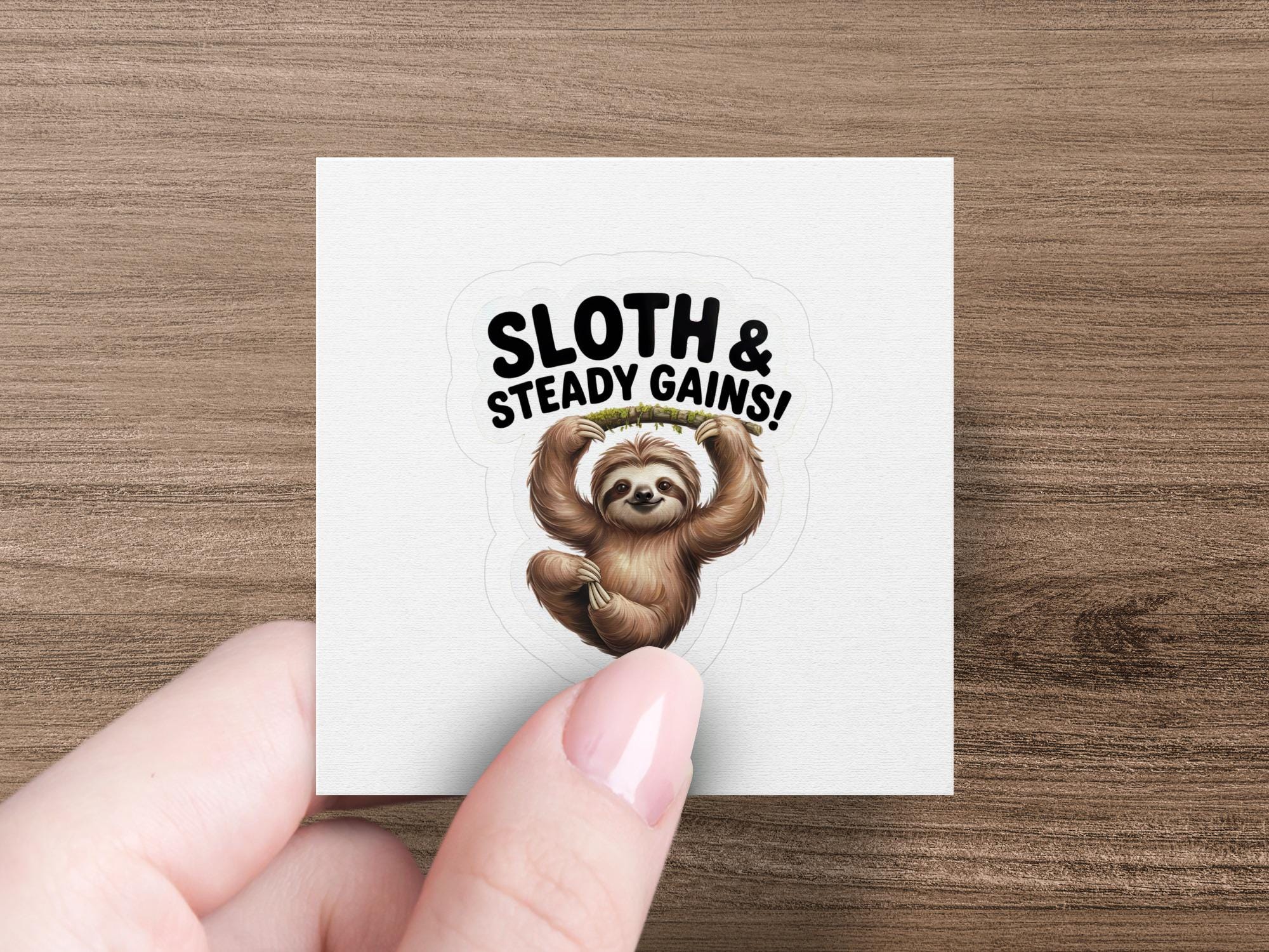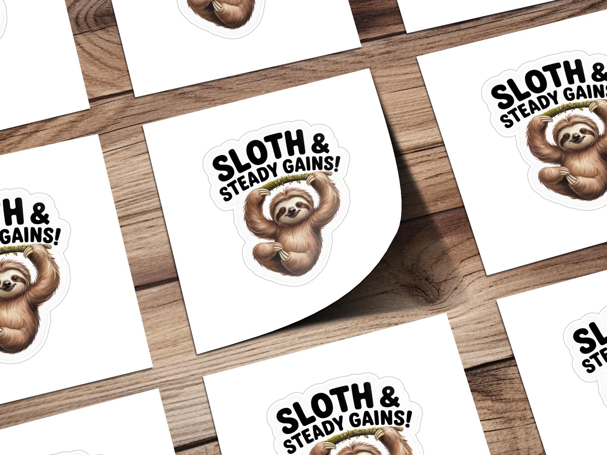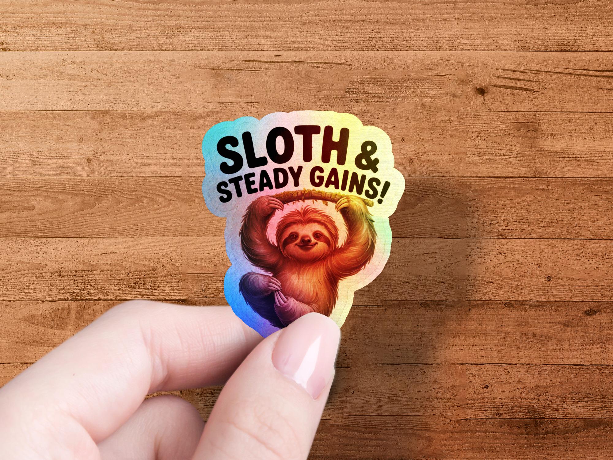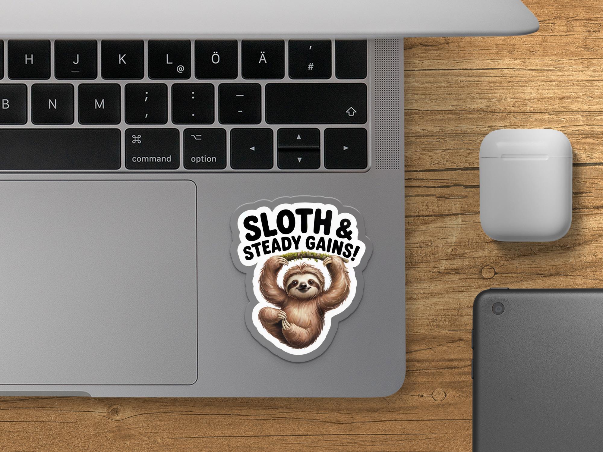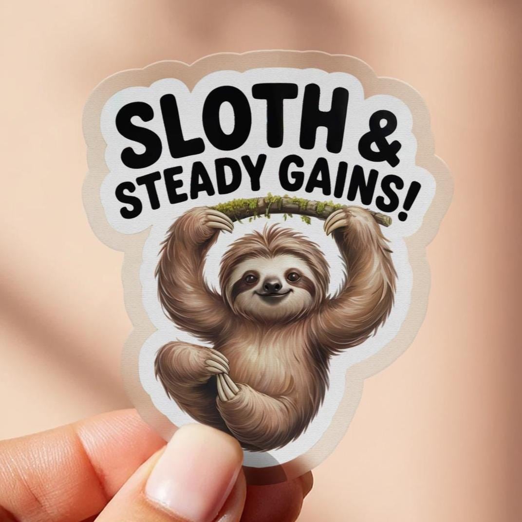 Sloth Gym Sticker: Slow and Steady Gains, Motivational Fitness Decal
