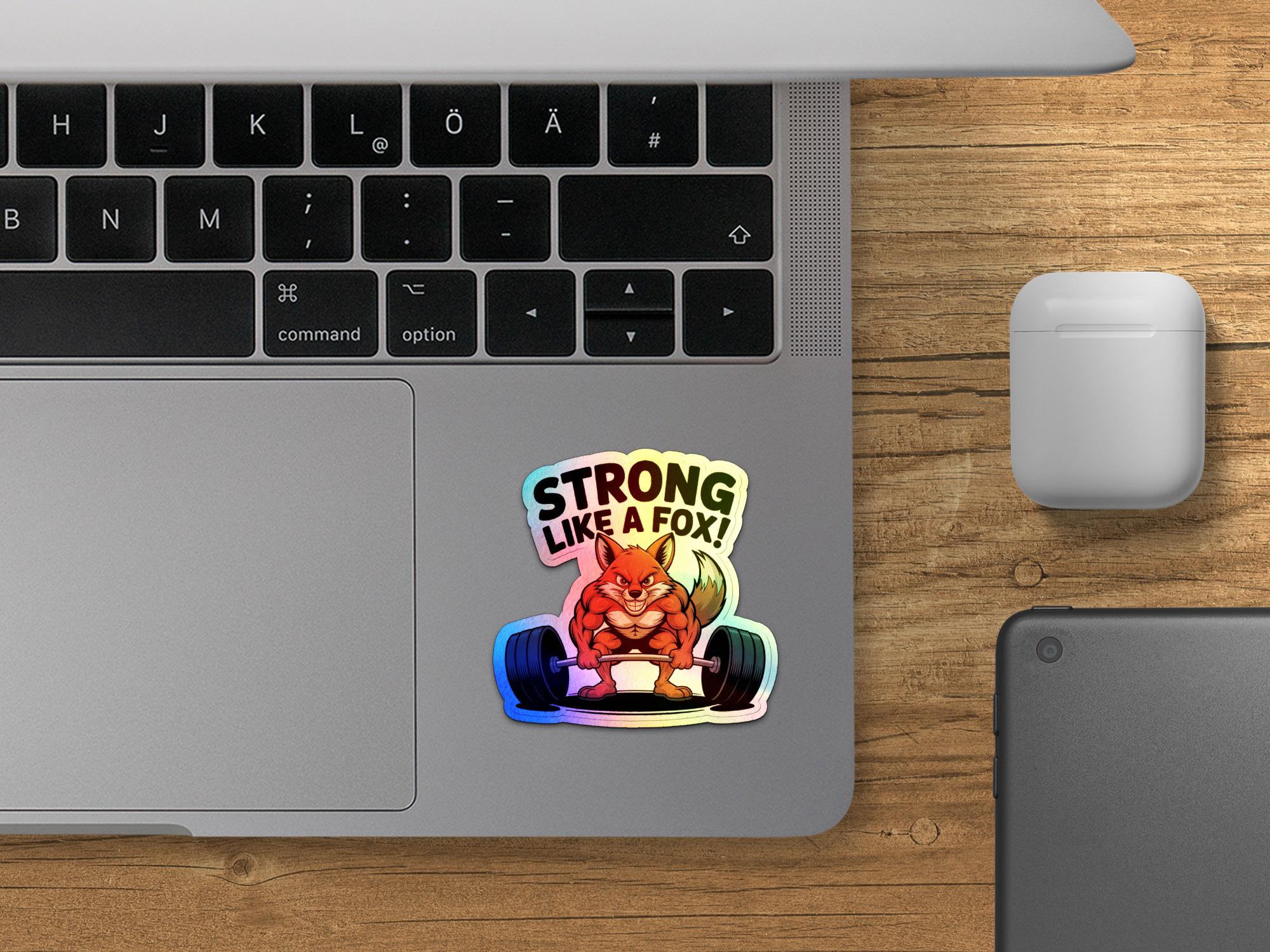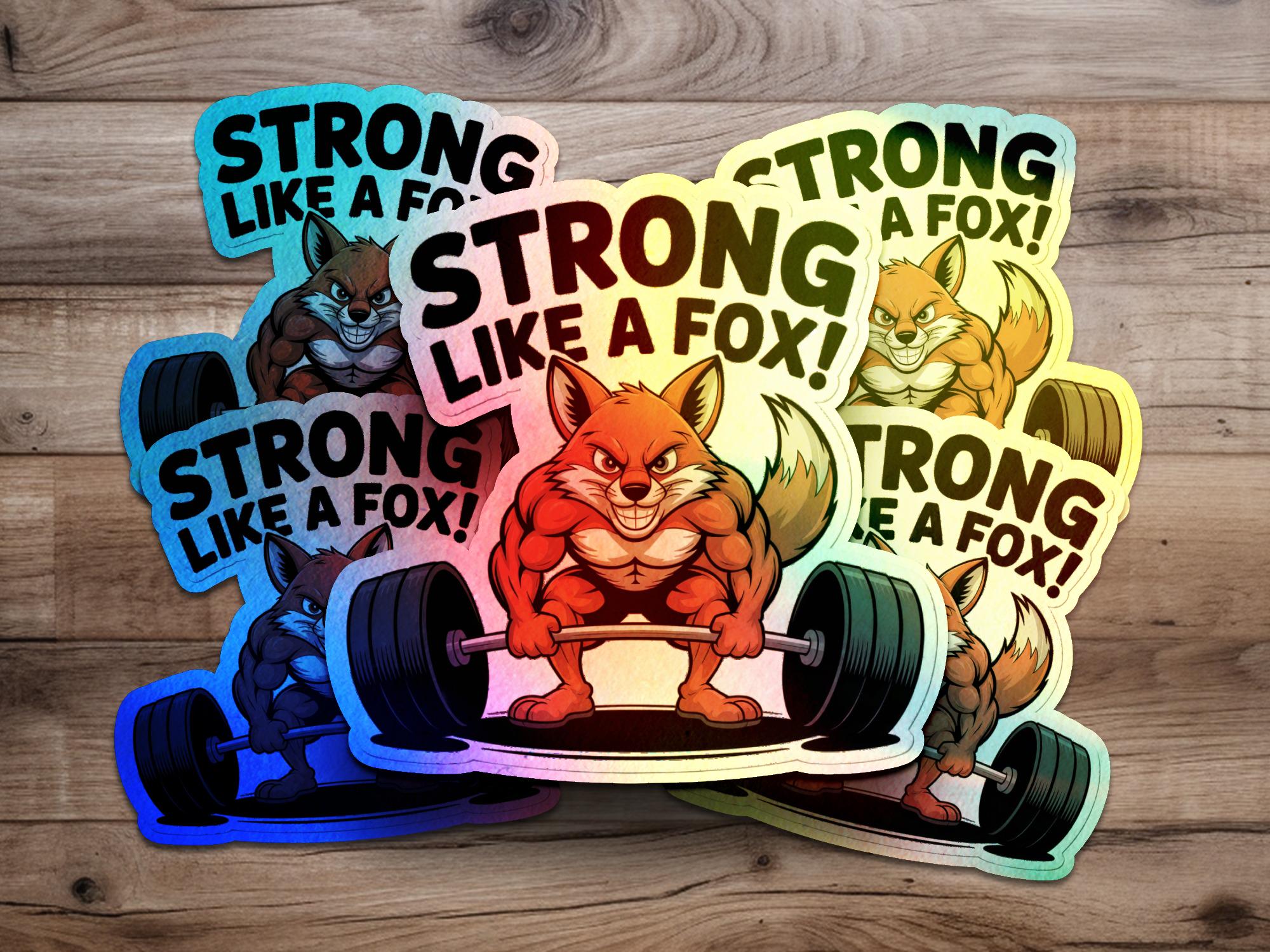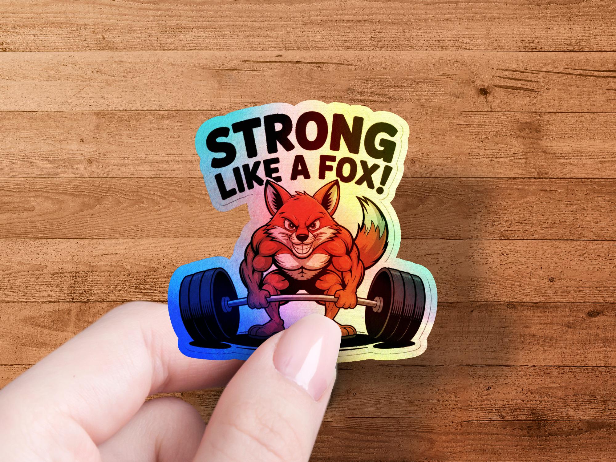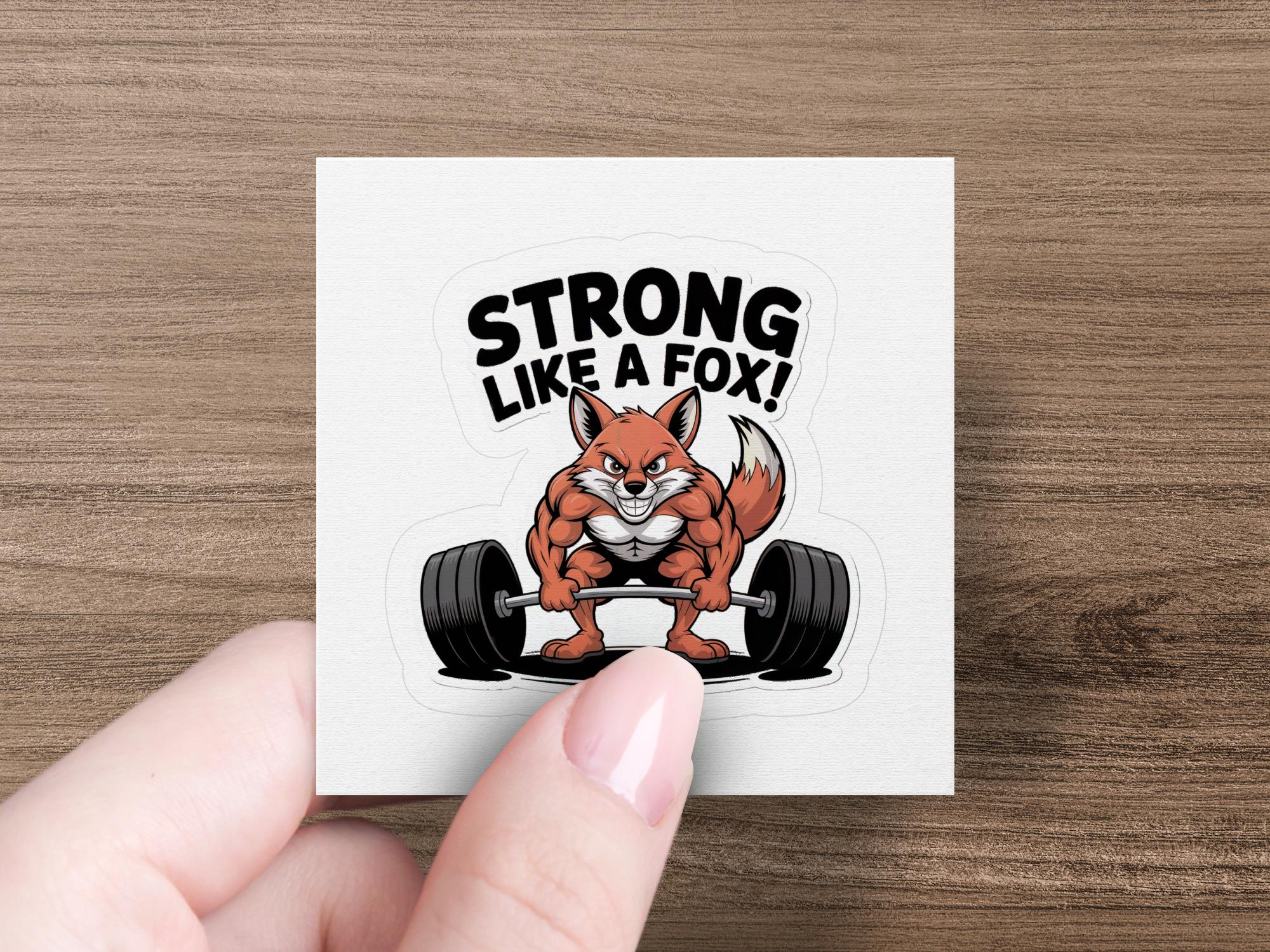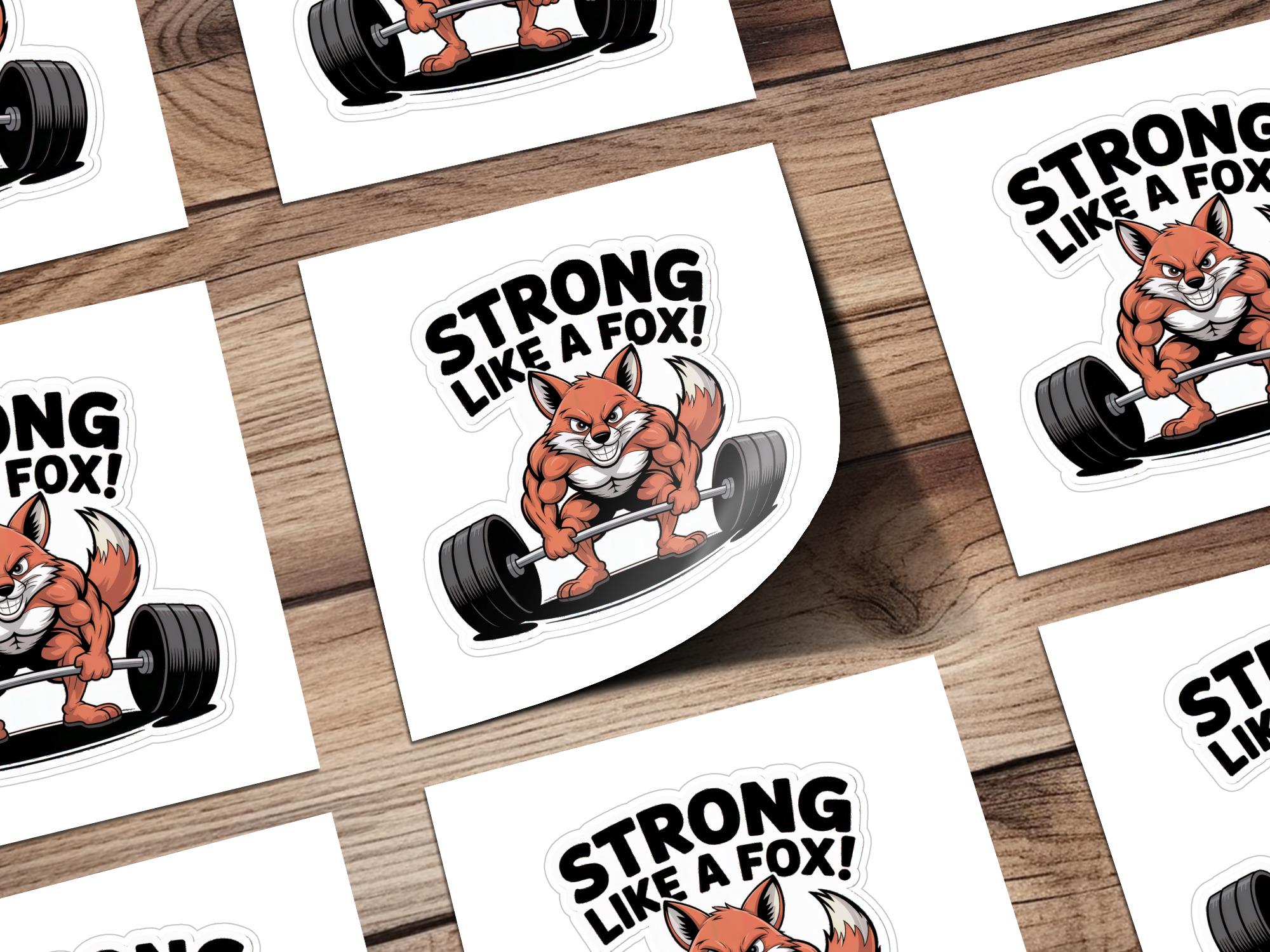 The sticker showcases a charismatic fox character confidently lifting a barbell. The bold "Strong Like a Fox" text adds a motivational and playful element to the design. The design is great conversation starter.
