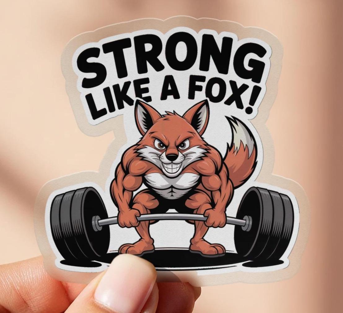 Show off your love for fitness and humor with this unique "Strong Like a Fox" sticker! This eye catching design features a muscular fox lifting weights, perfect for adding a touch of personality to your belongings. Great for gym enthusiasts, animal lovers, or anyone who appreciates a good pun!