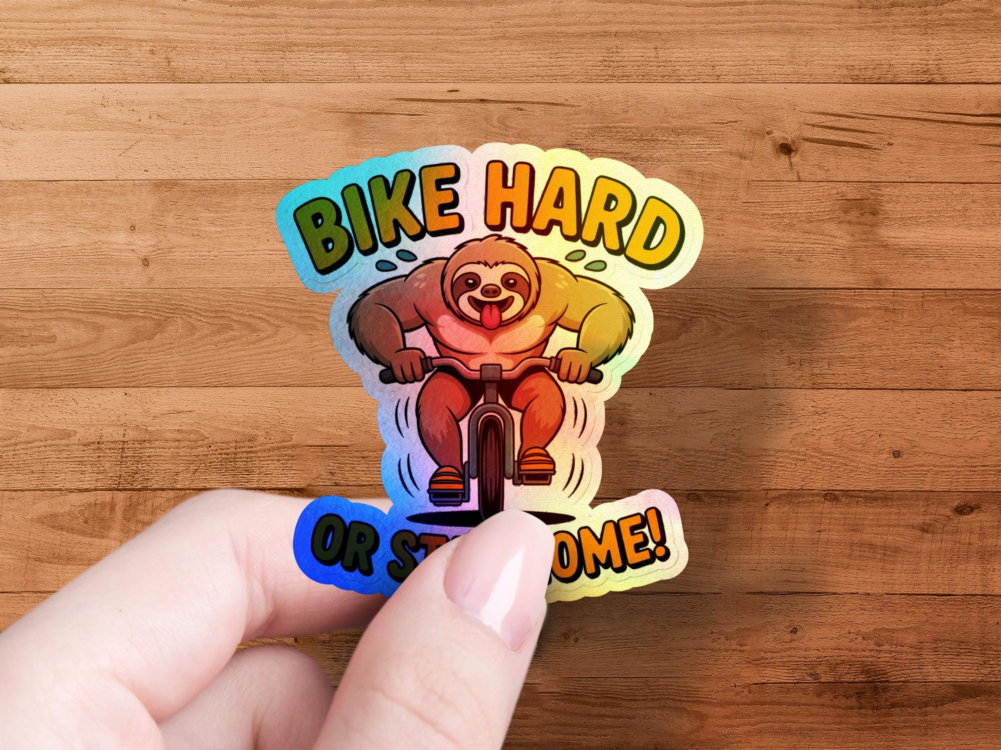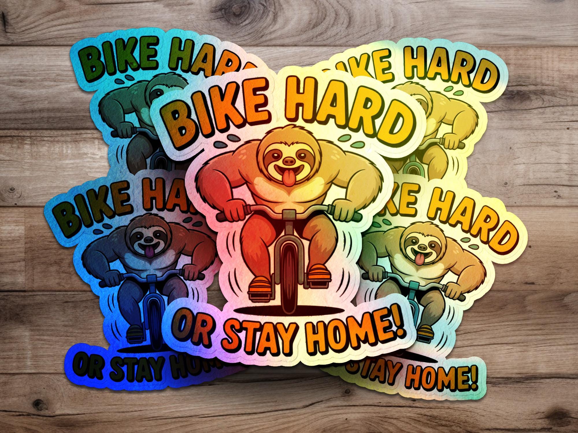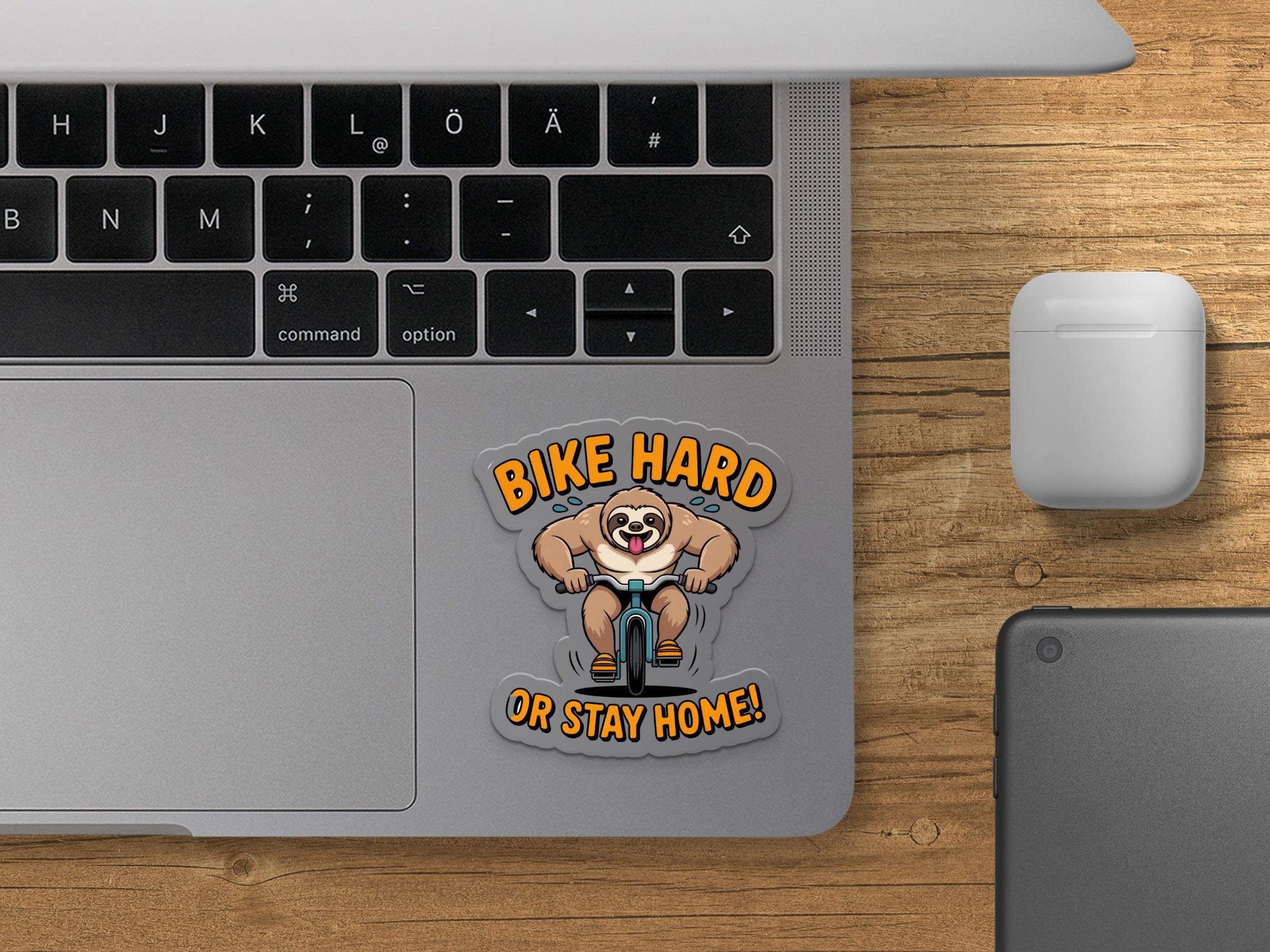 Add a touch of humor and motivation to your belongings with this unique "Bike Hard or Stay Home" sticker featuring a funny sloth on a bicycle! Perfect for cyclists, sloth lovers, or anyone who needs a daily dose of inspiration. Stick it on your laptop, water bottle, notebook, or any smooth surface to showcase your personality and love for adventure.