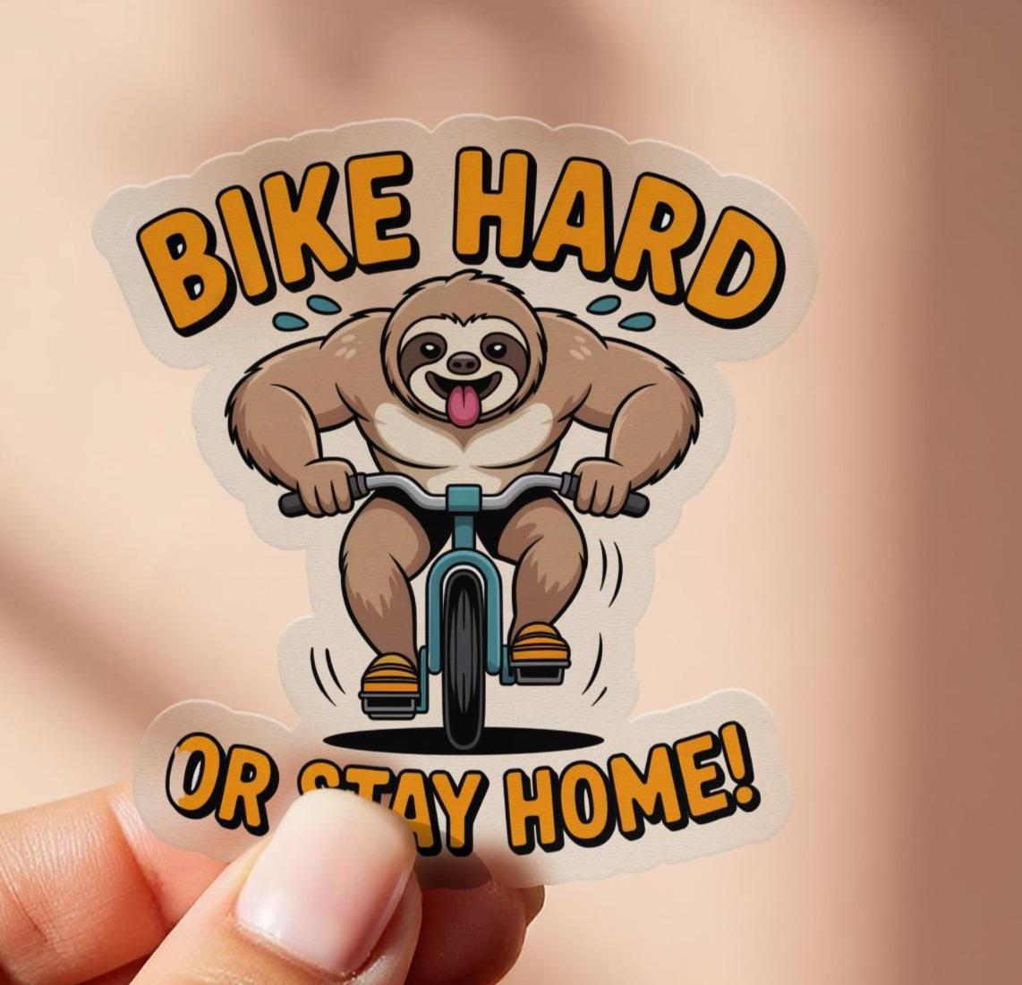 Bike Hard Sloth Sticker: Funny Cycling Decal, Motivational Gift
