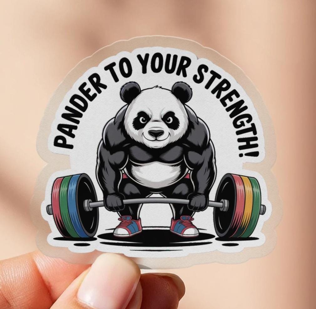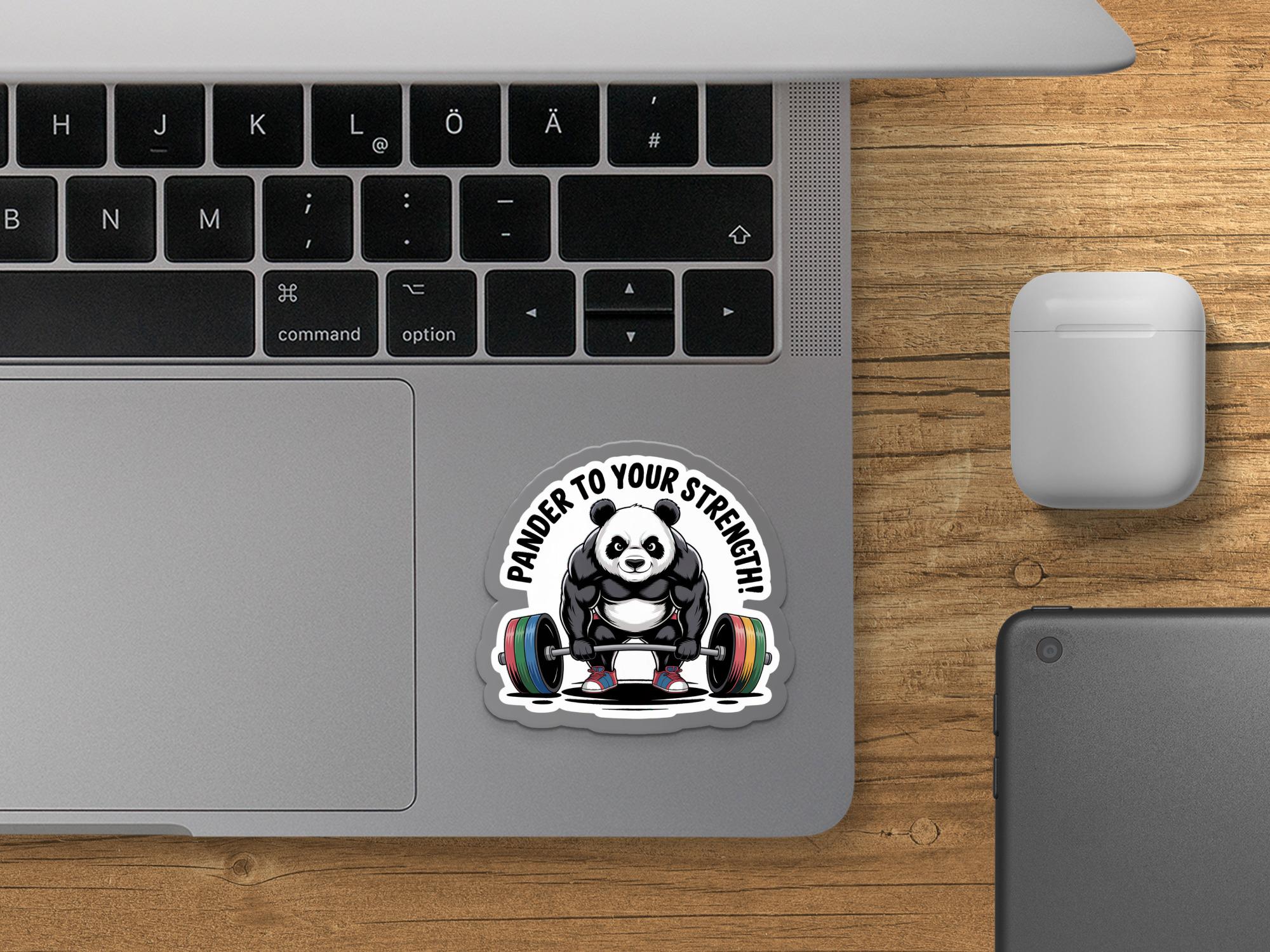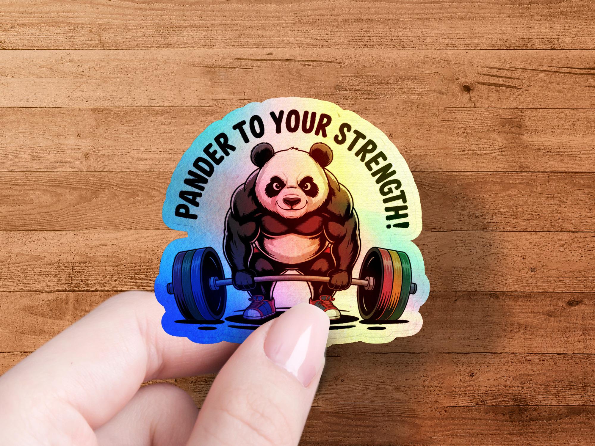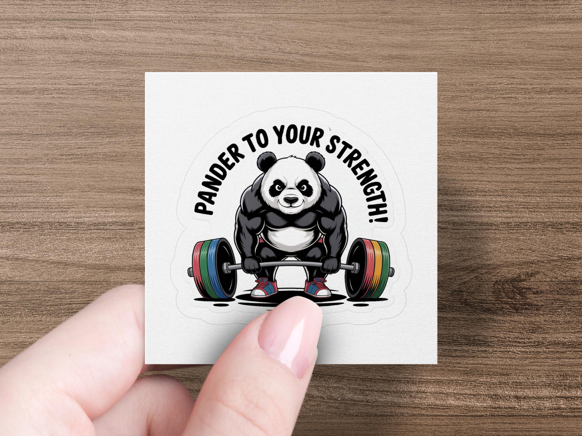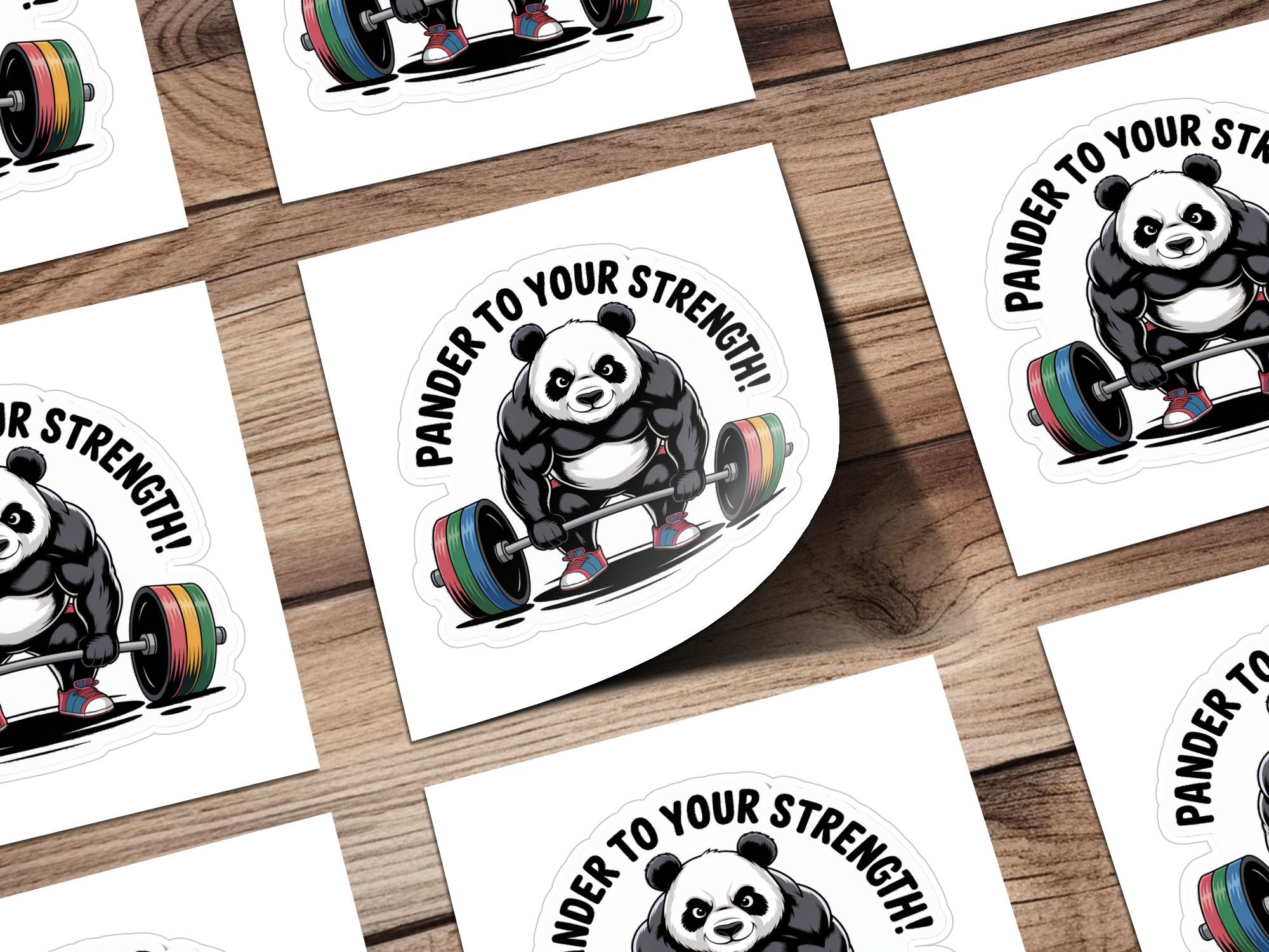 This adorable weightlifting panda sticker is the perfect way to show off your love for pandas and fitness! This sticker features a muscular panda bear lifting a barbell, with the punny text "Pander To Your Strength!". Whether you are a weightlifter, a fitness enthusiast, or simply a panda lover, this sticker is sure to bring a smile to your face.