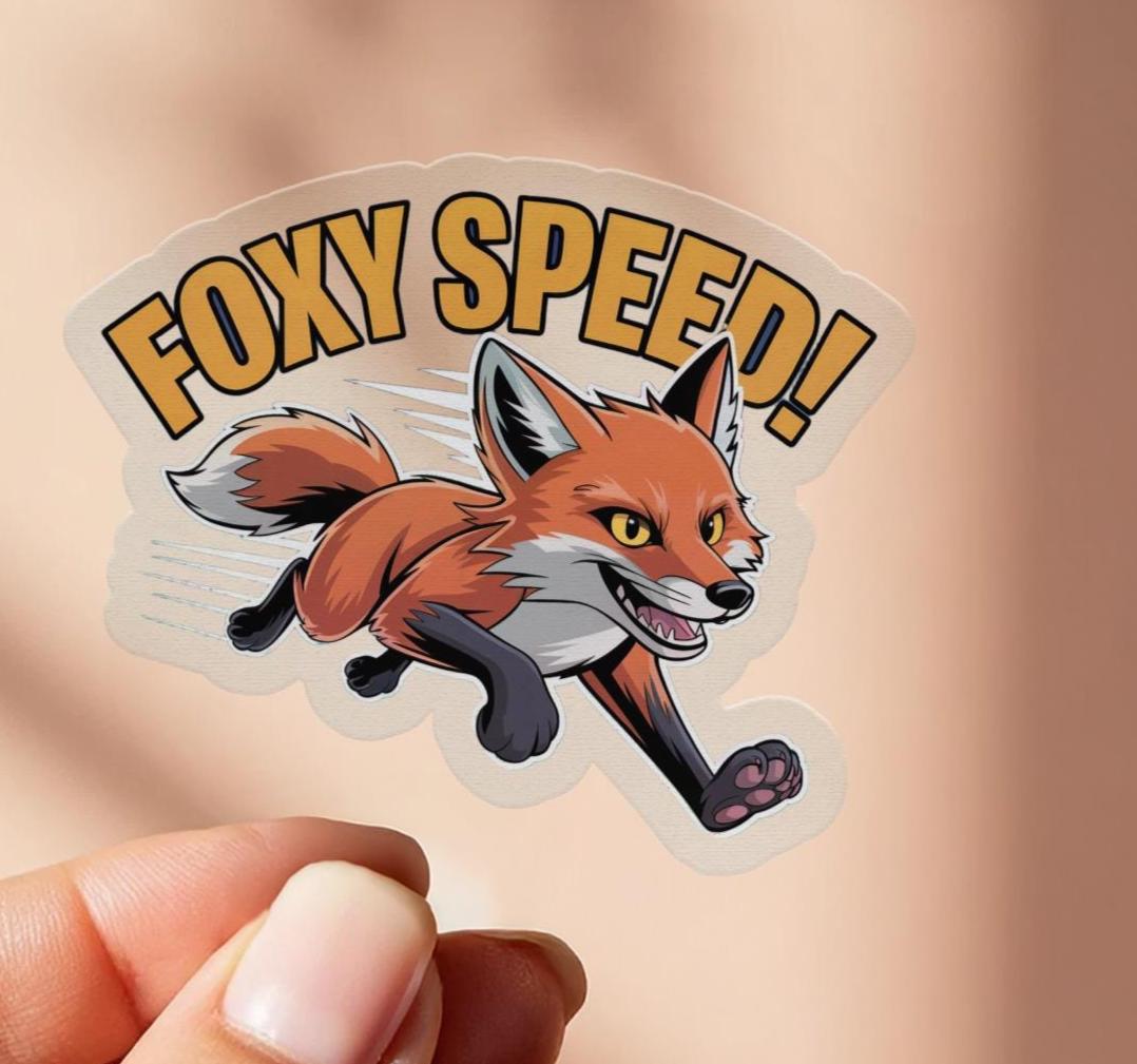 Add a touch of playful energy to your belongings with this vibrant "Foxy Speed" sticker! This sticker features a cartoon fox sprinting with determination and reads "FOXY SPEED!".