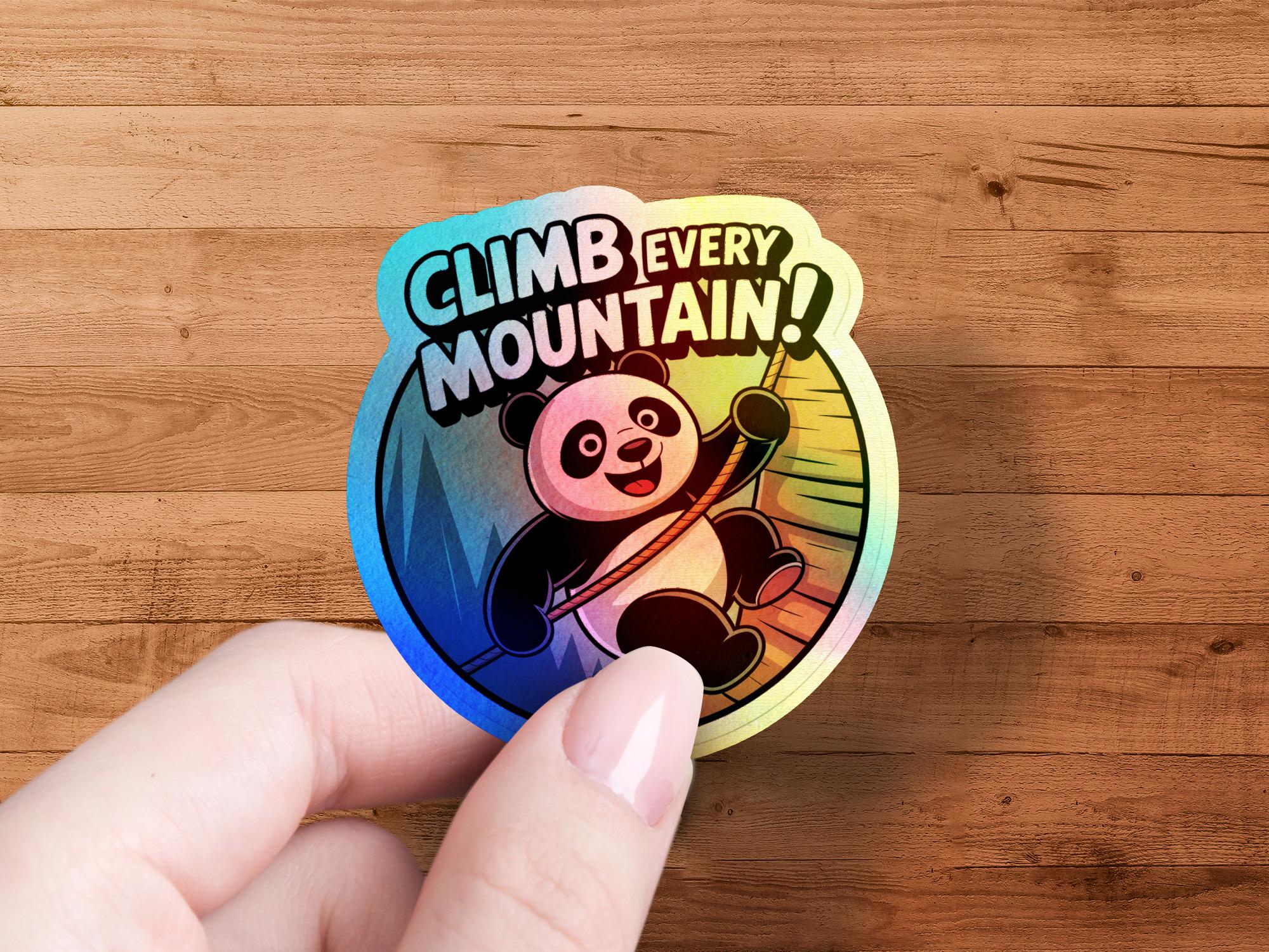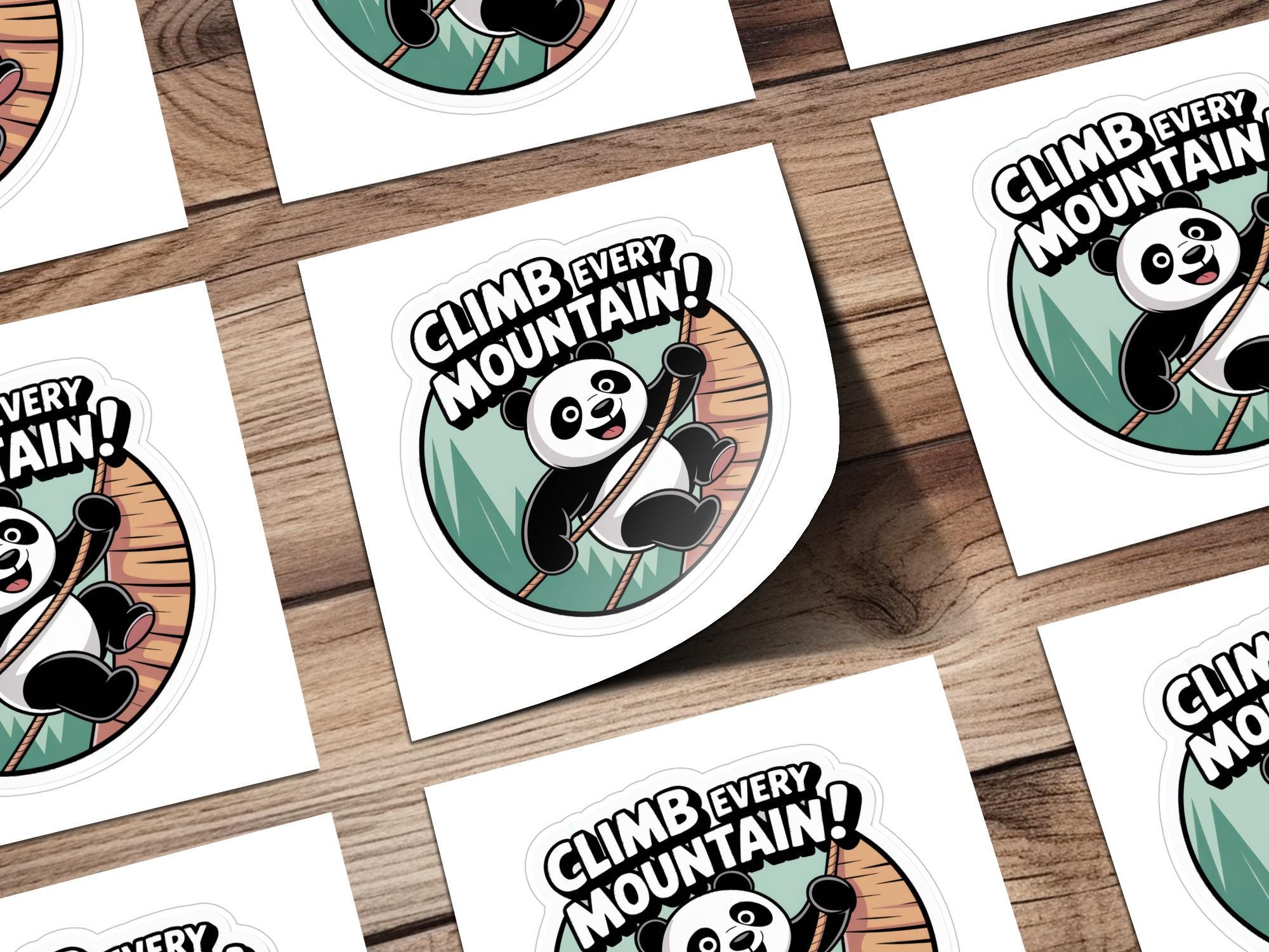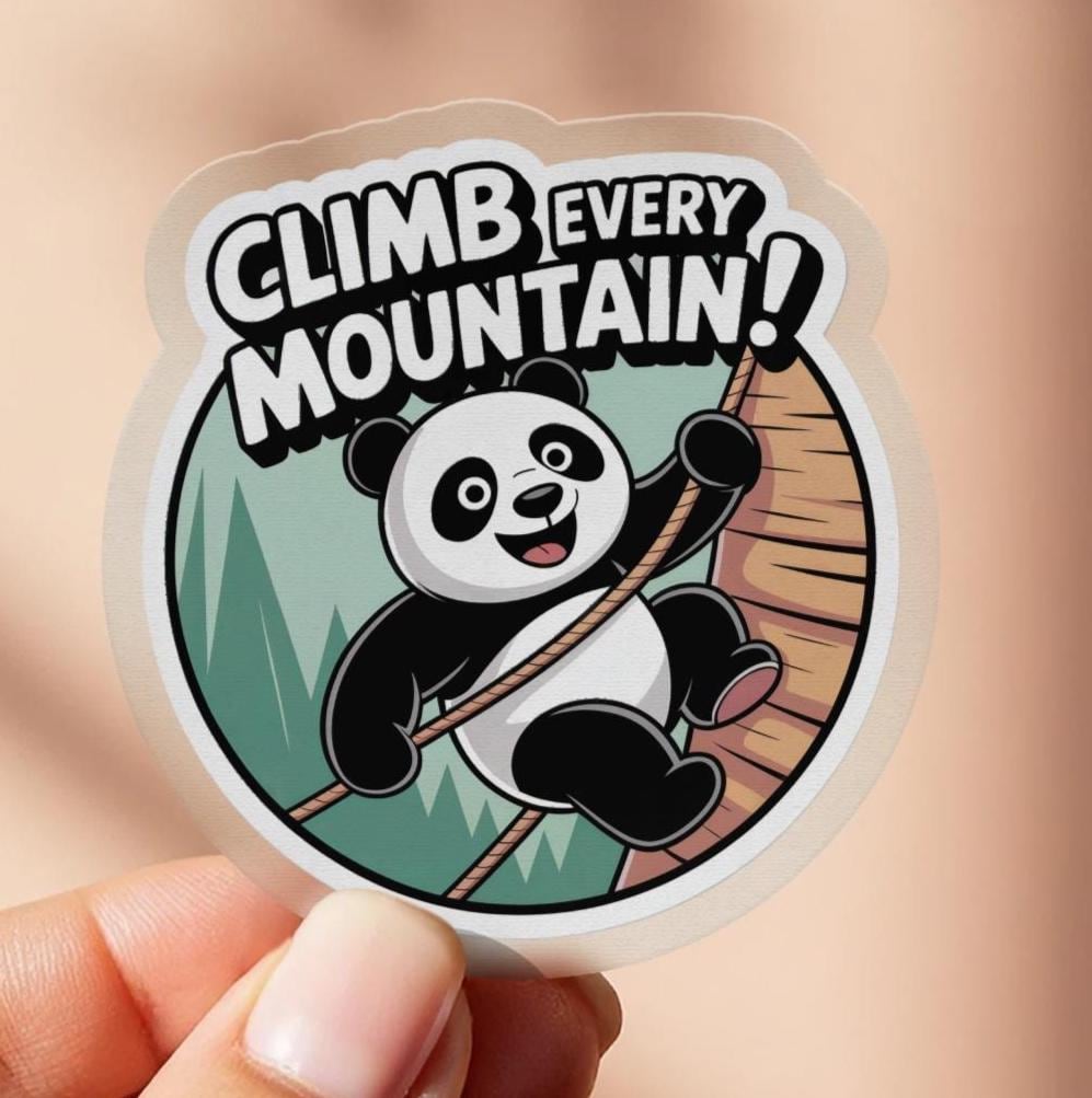 Climb Every Mountain Panda Sticker: Motivational Adventure