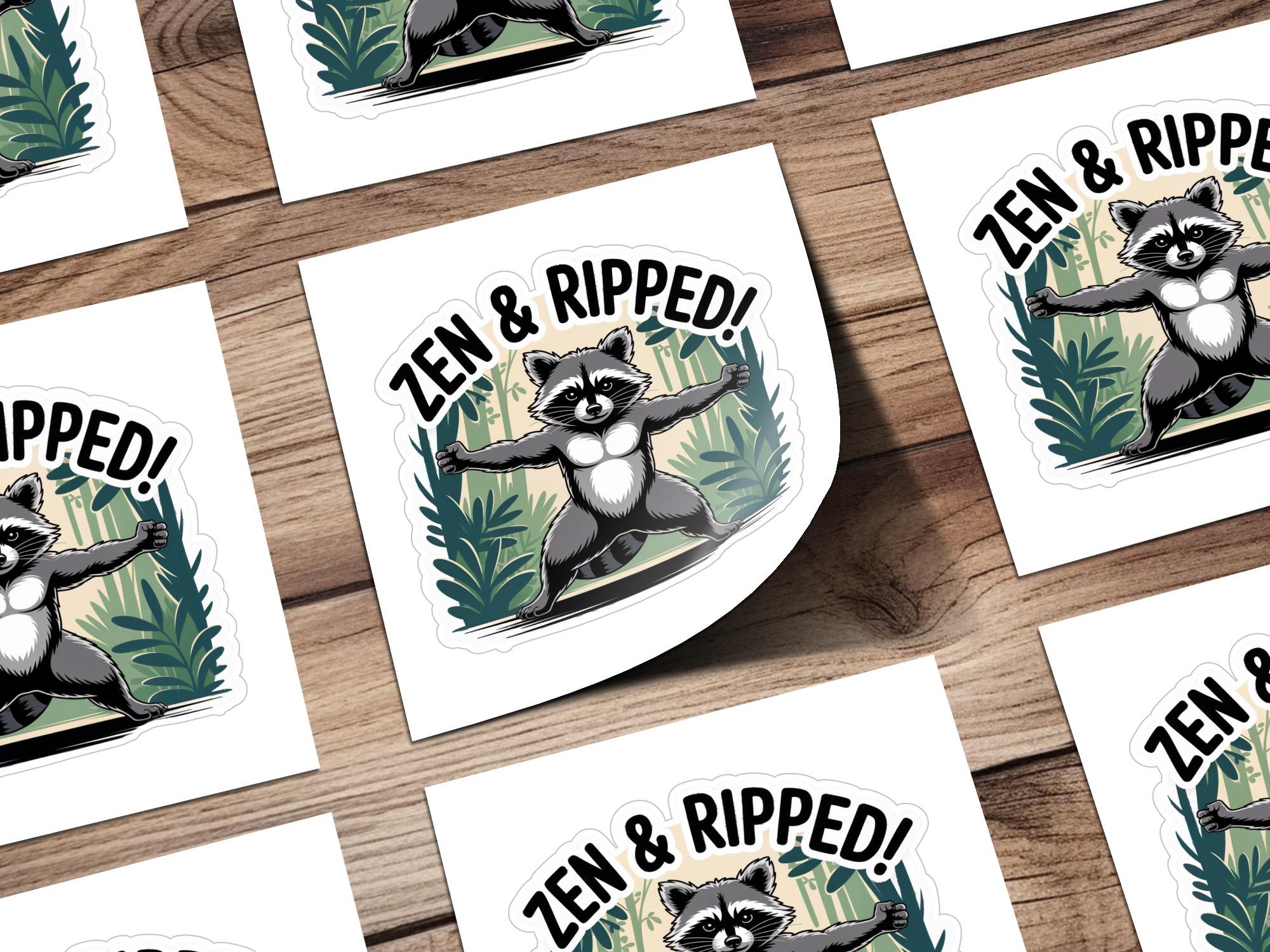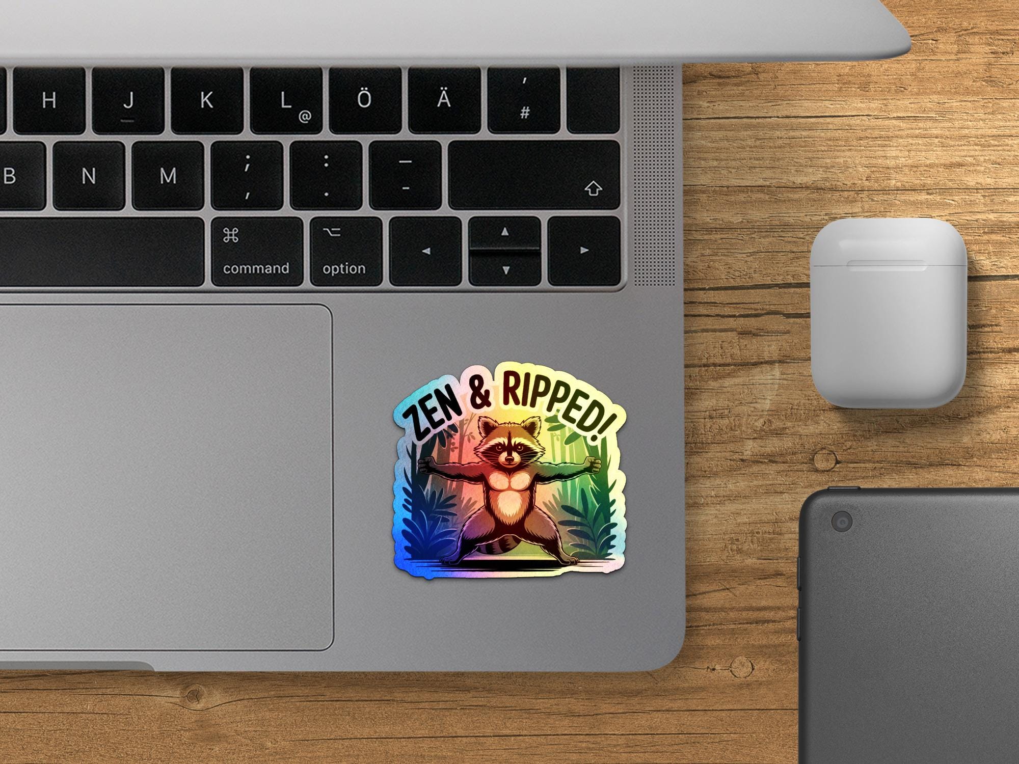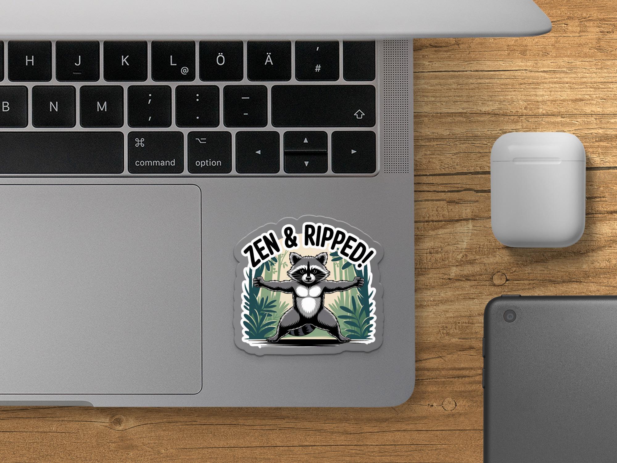 Add some humor and personality to your belongings with this Zen and Ripped Raccoon Sticker! This funny sticker features a muscular raccoon doing yoga in a forest setting, combining the concepts of zen and fitness in a hilarious way. Perfect for gym lovers, animal enthusiasts, or anyone with a sense of humor, this sticker is sure to bring a smile to your face.
