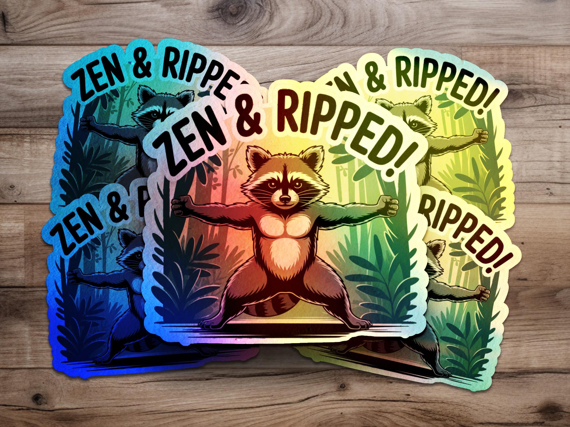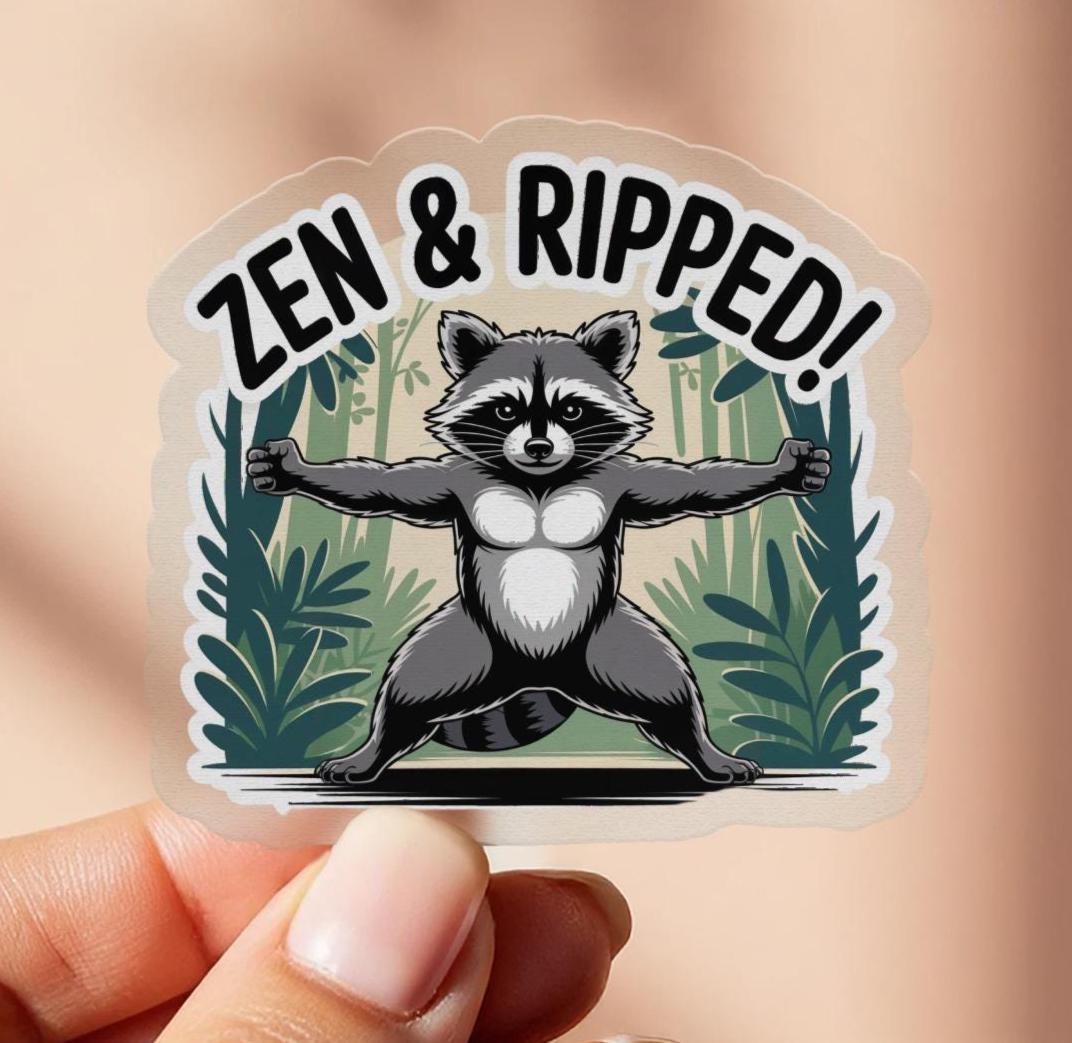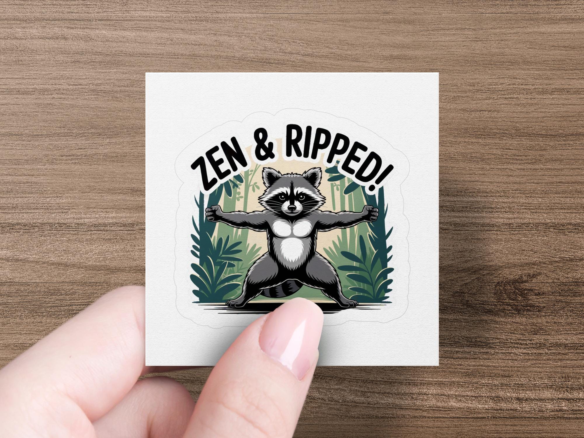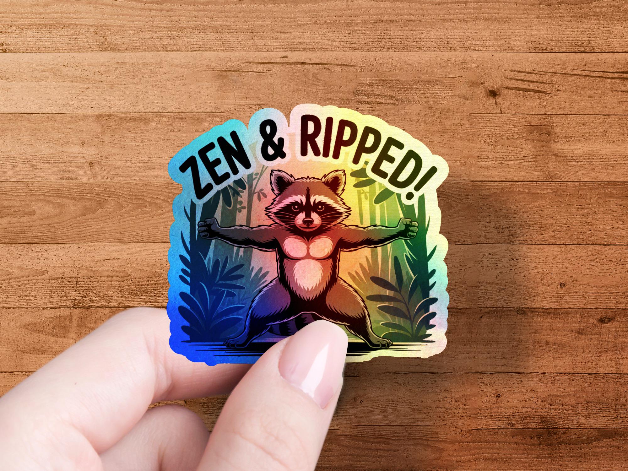 Add some humor and personality to your belongings with this Zen and Ripped Raccoon Sticker! This funny sticker features a muscular raccoon doing yoga in a forest setting, combining the concepts of zen and fitness in a hilarious way. Perfect for gym lovers, animal enthusiasts, or anyone with a sense of humor, this sticker is sure to bring a smile to your face.