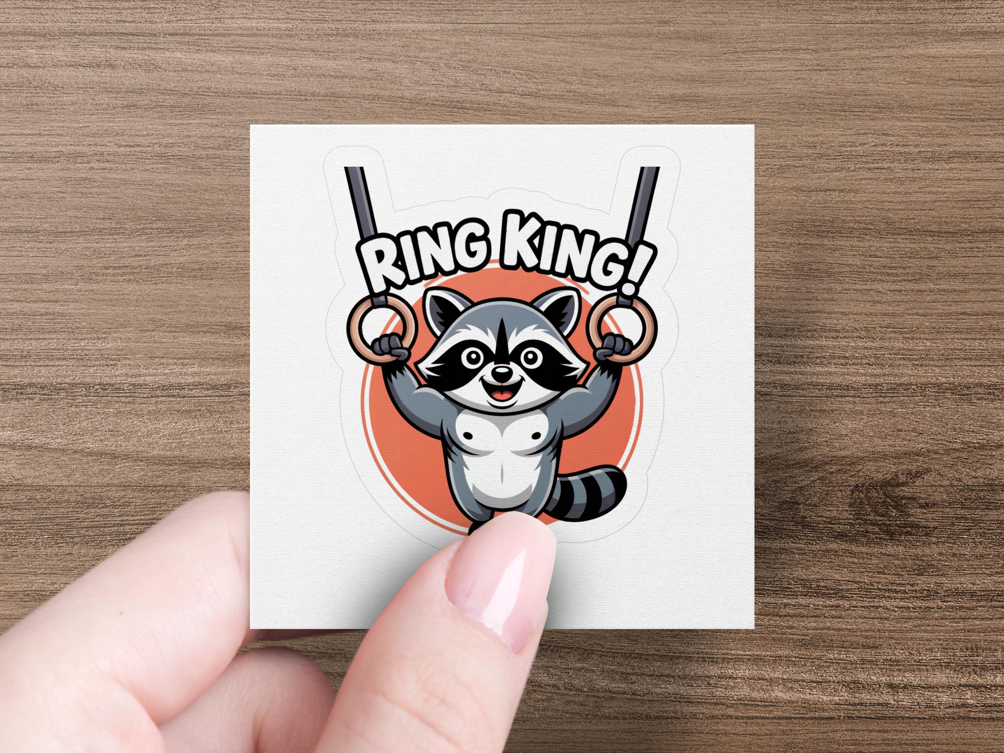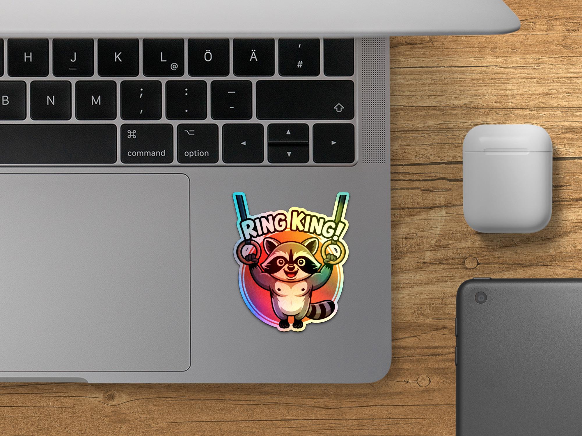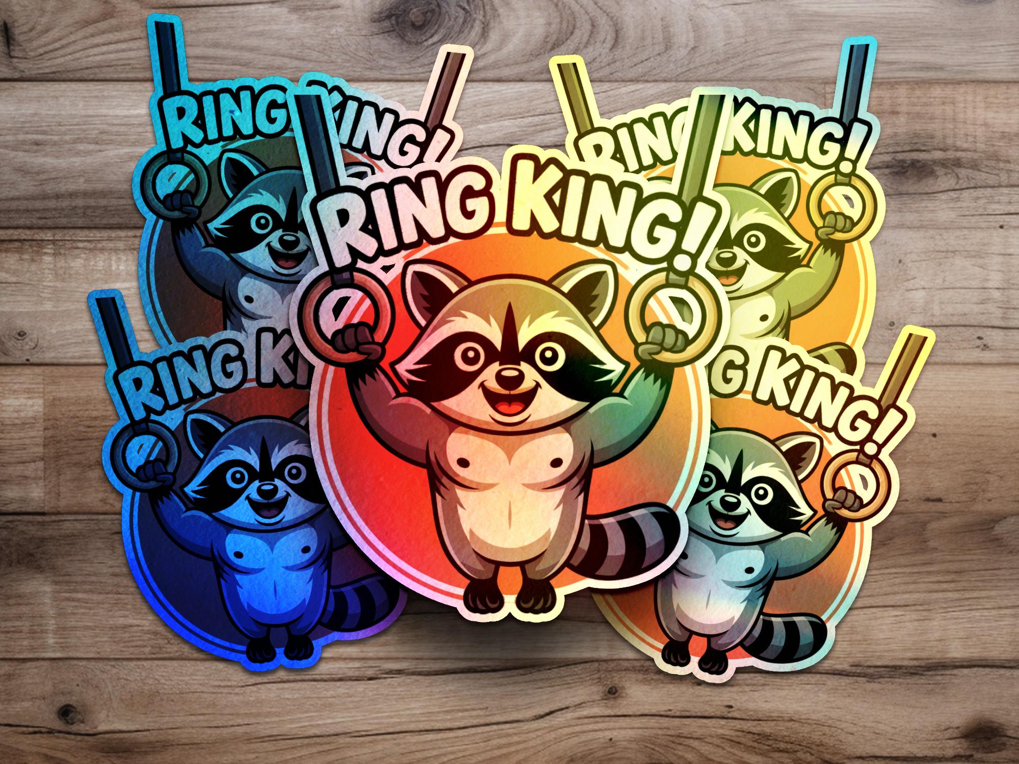 Add a touch of humor and personality to your belongings with this adorable "Ring King" raccoon sticker. This fun decal features a cute cartoon raccoon mastering the gymnastics rings, making it a perfect gift for gymnasts, animal lovers, or anyone who appreciates a good laugh. Stick it on your laptop, water bottle, phone, or any other smooth surface to showcase your unique style.
