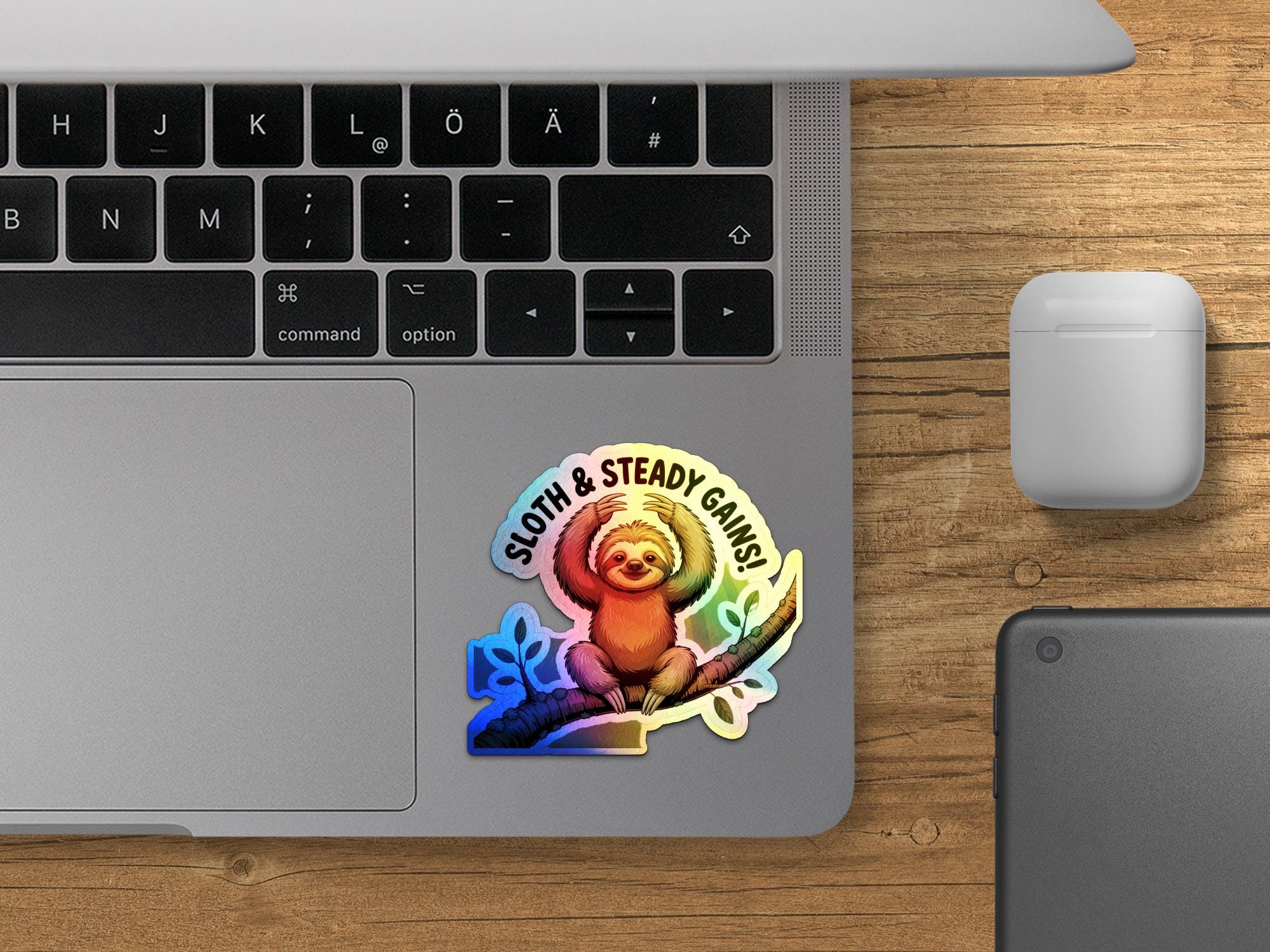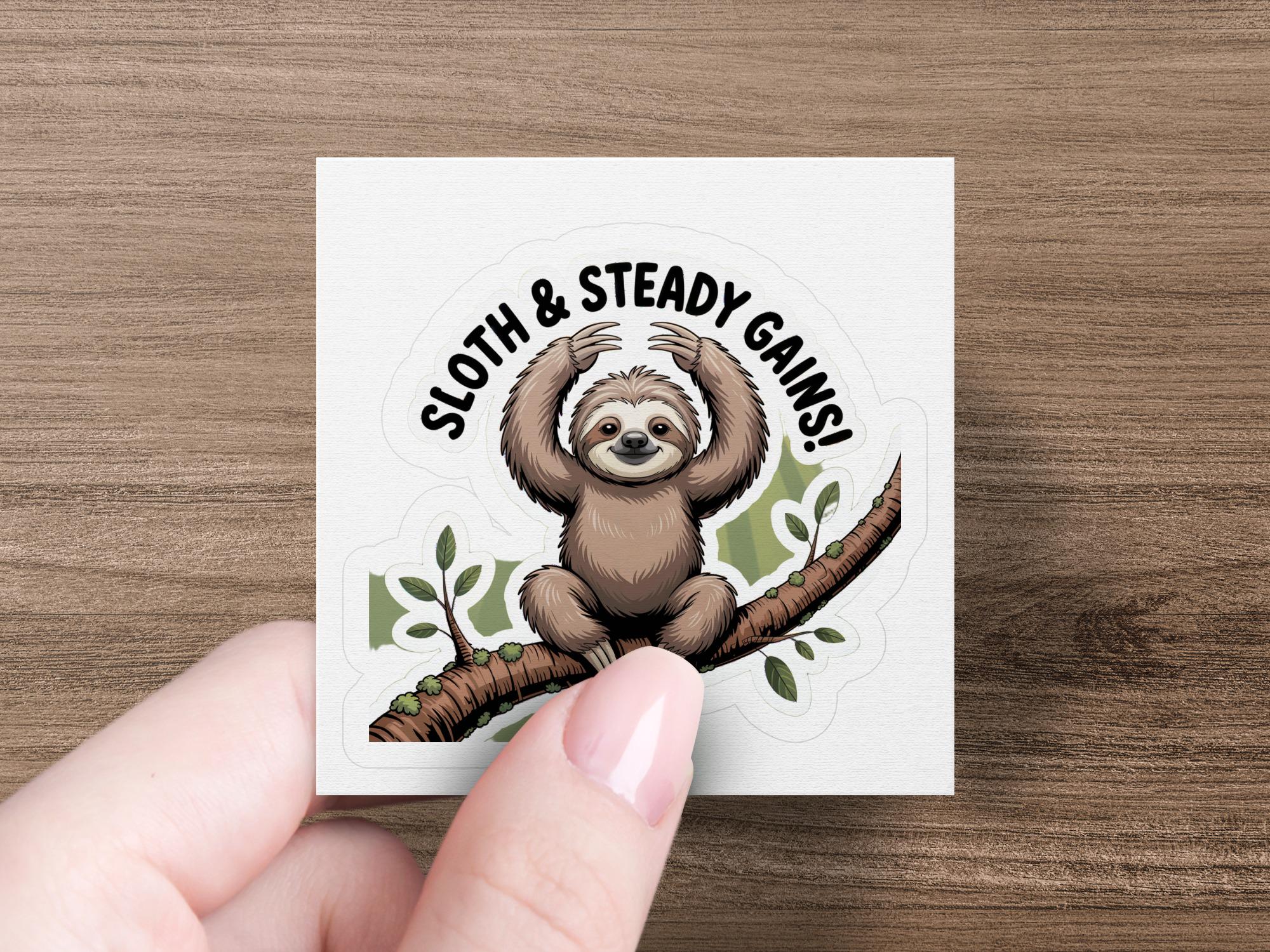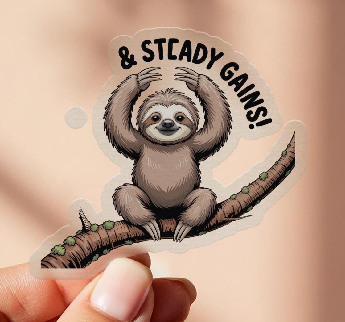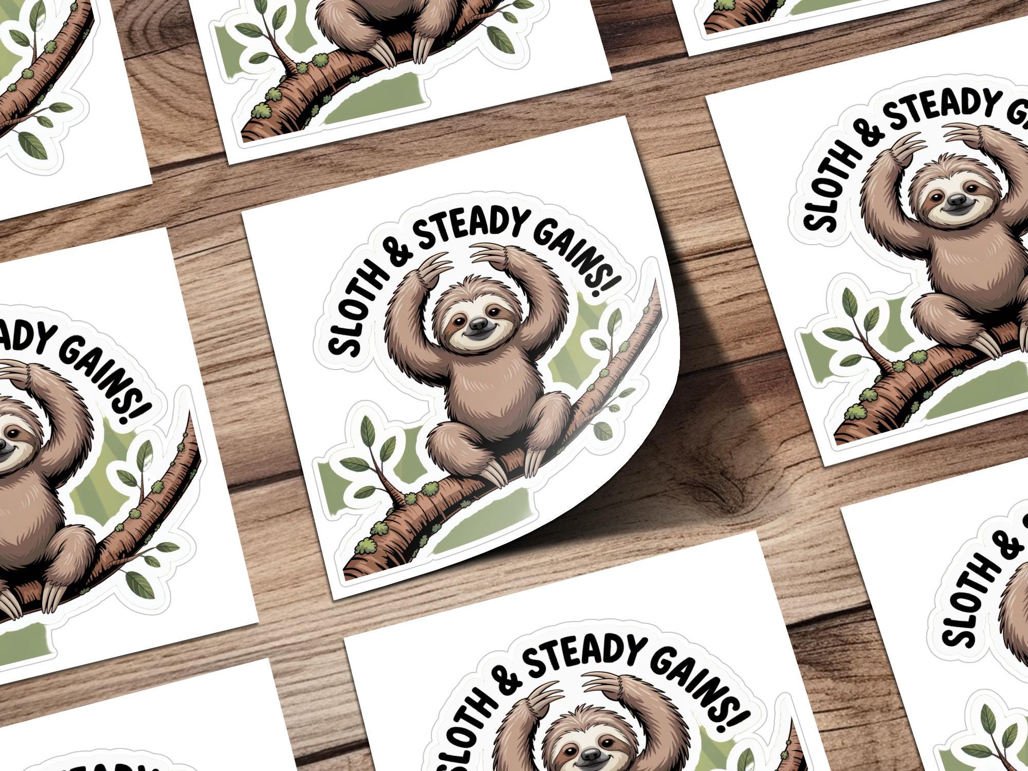 This adorable sloth sticker is a perfect reminder to stay motivated and embrace the journey, no matter how slow it may seem. Featuring a cute sloth perched on a branch, lifting weights, this sticker adds a touch of humor and inspiration to any surface. Sloth and steady gains for the win. Perfect for anyone who loves sloths, fitness, or just needs a little encouragement.