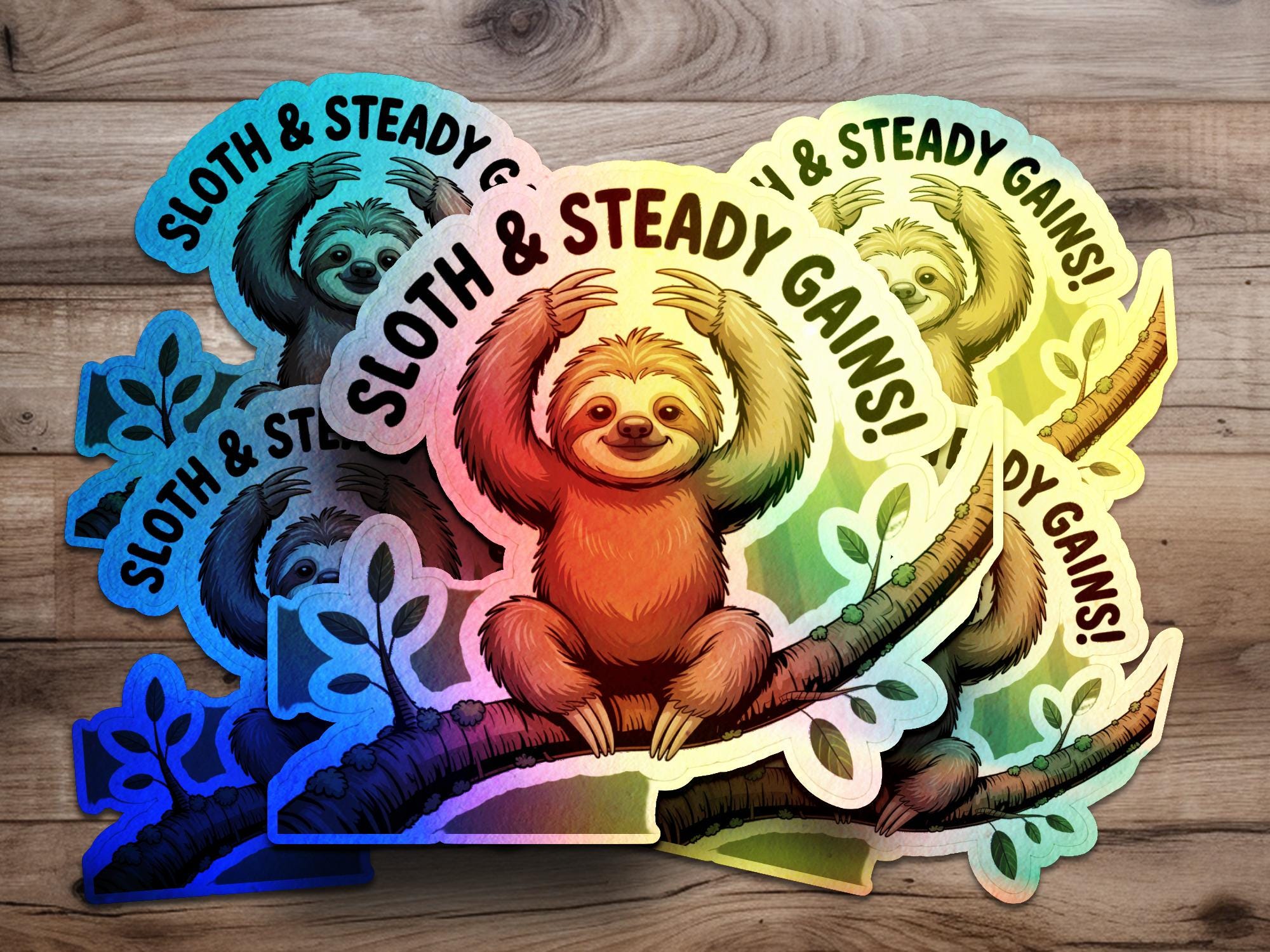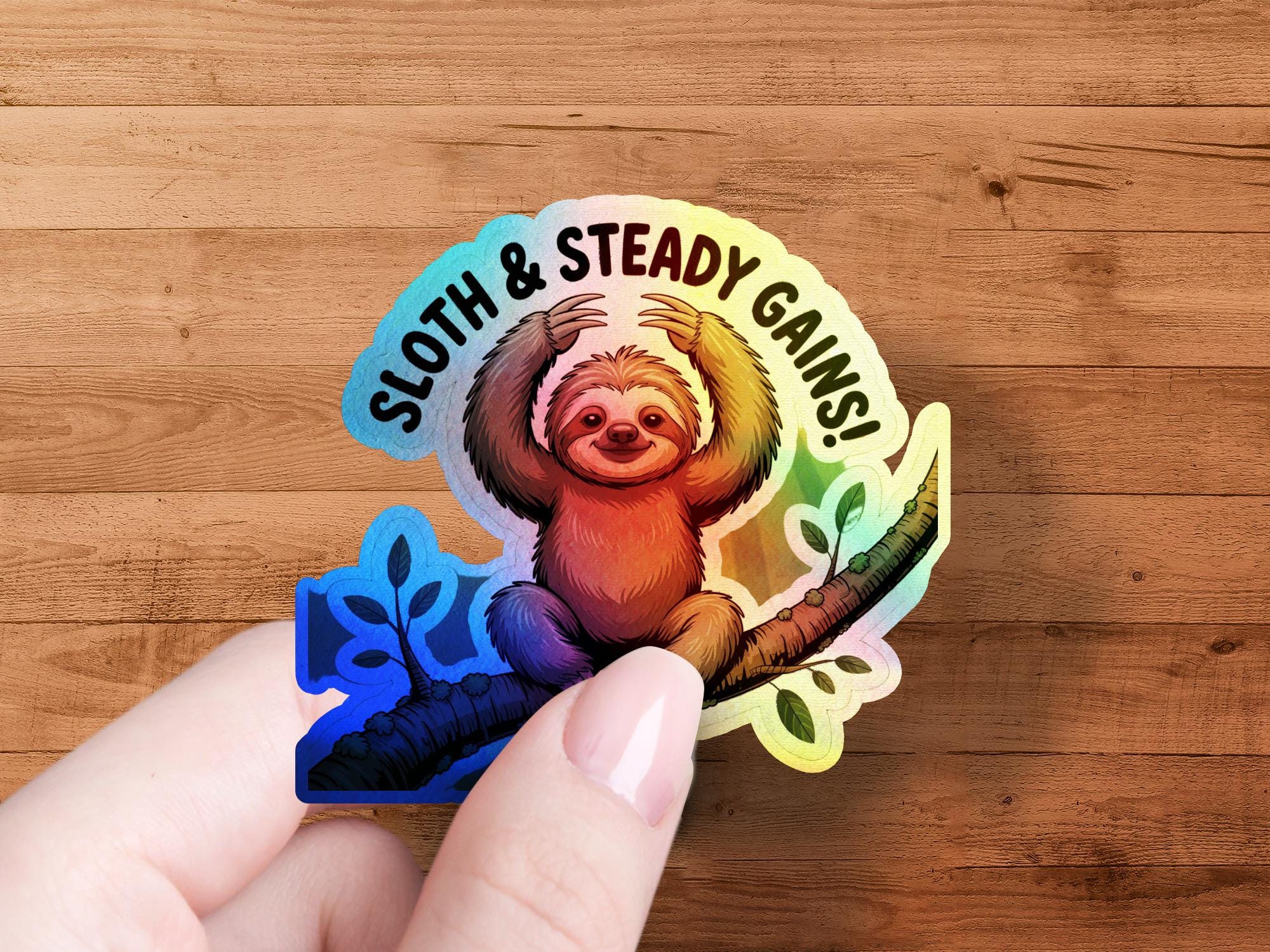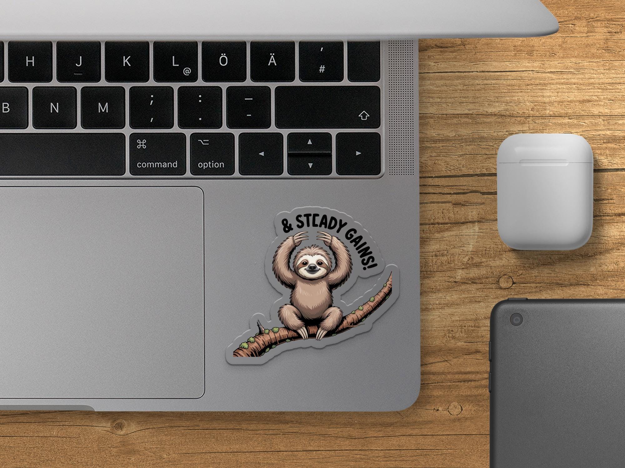 This adorable sloth sticker is a perfect reminder to stay motivated and embrace the journey, no matter how slow it may seem. Featuring a cute sloth perched on a branch, lifting weights, this sticker adds a touch of humor and inspiration to any surface. Sloth and steady gains for the win. Perfect for anyone who loves sloths, fitness, or just needs a little encouragement.