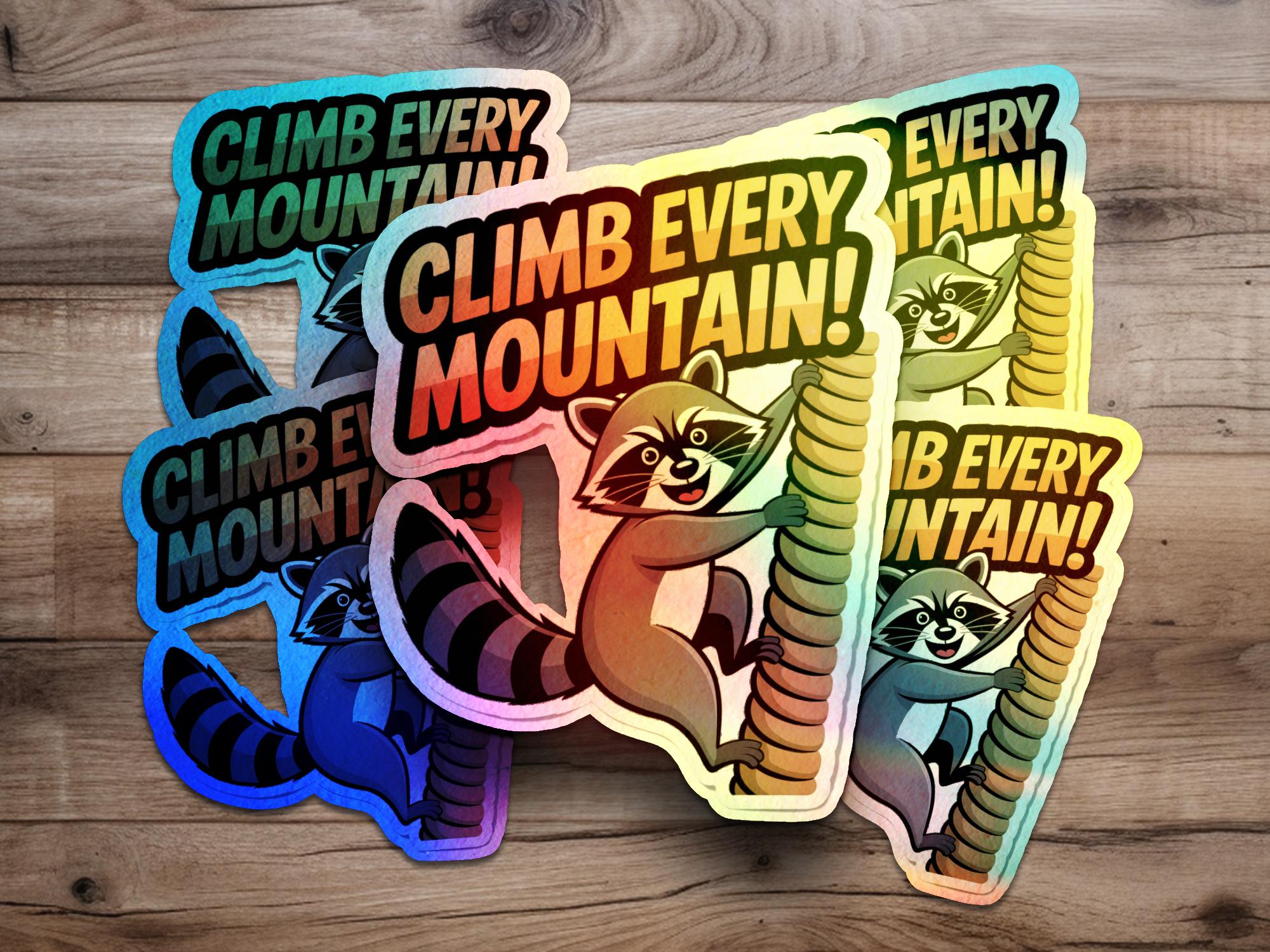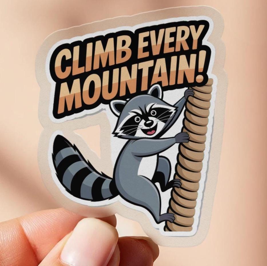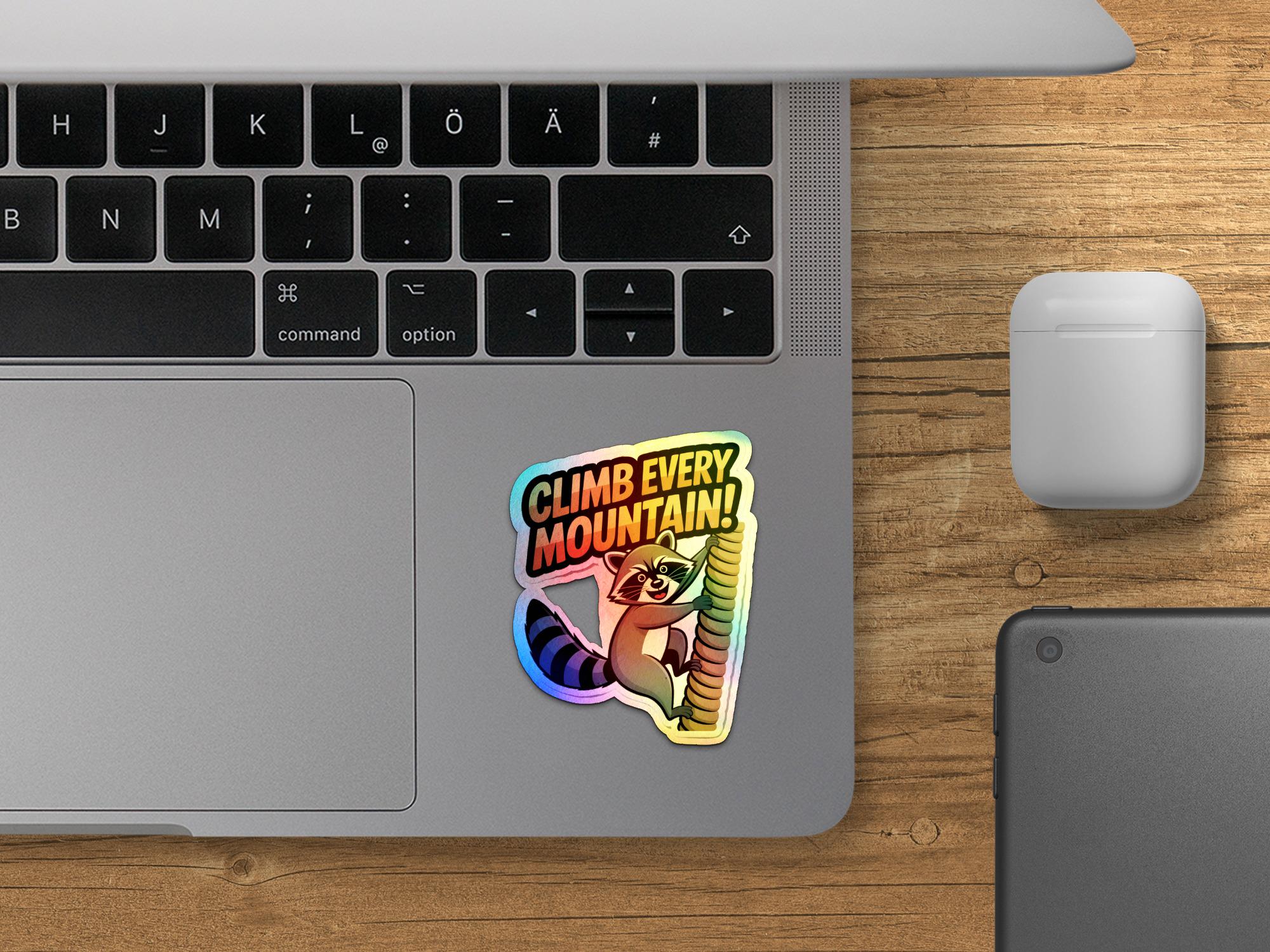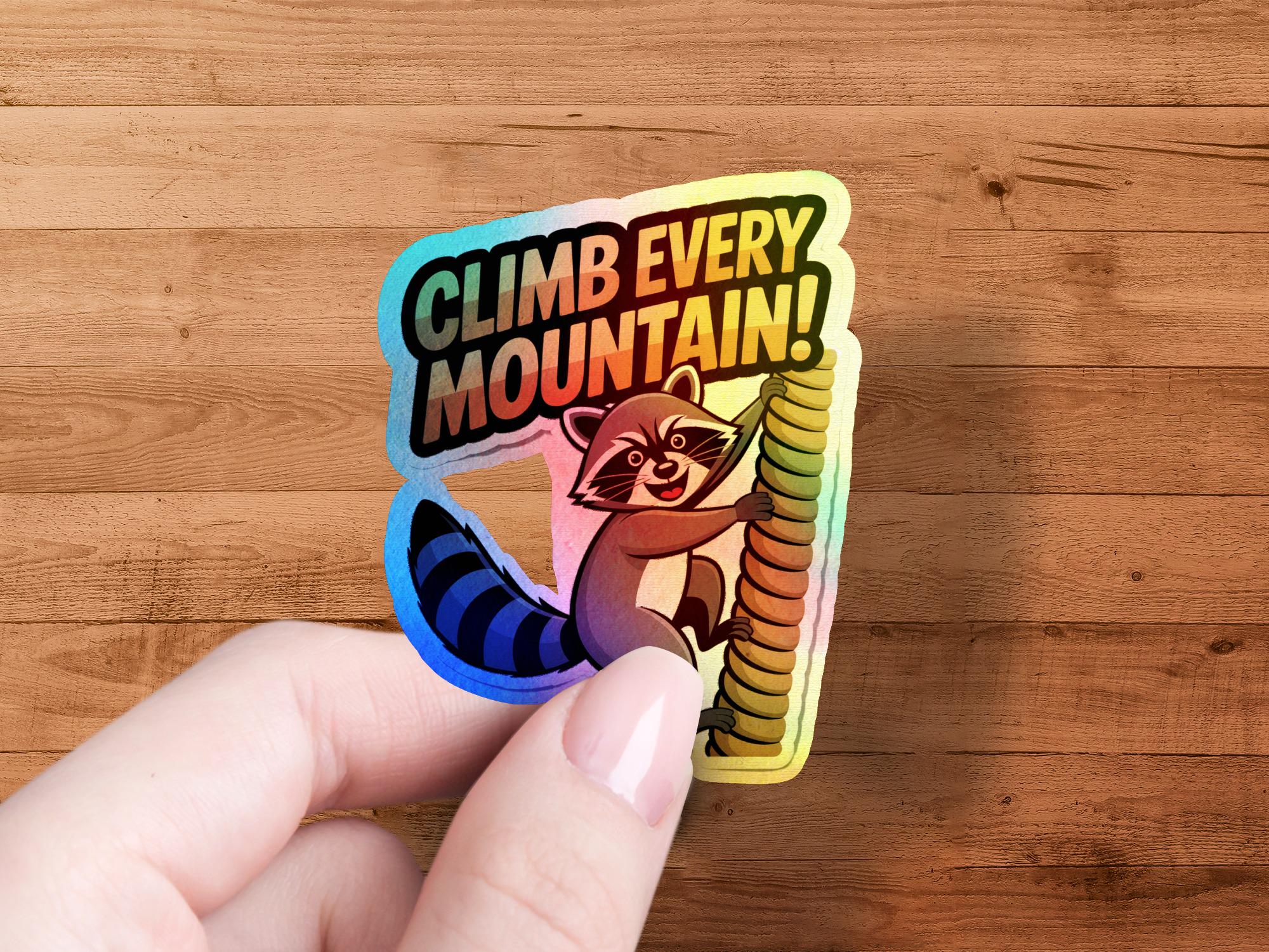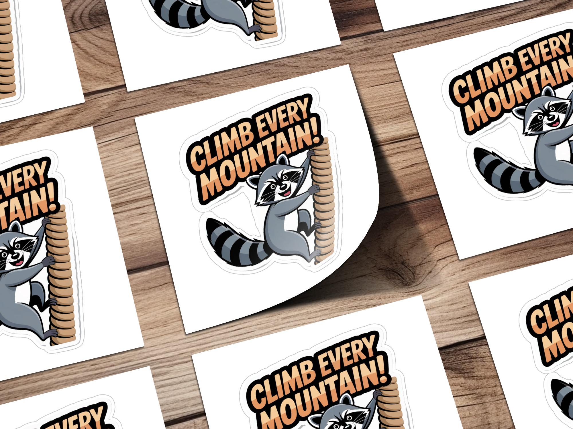 Raccoon Climb Every Mountain Sticker: Motivational Laptop Decal