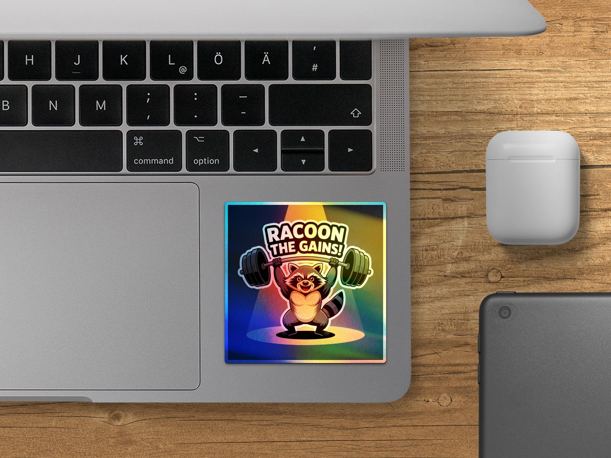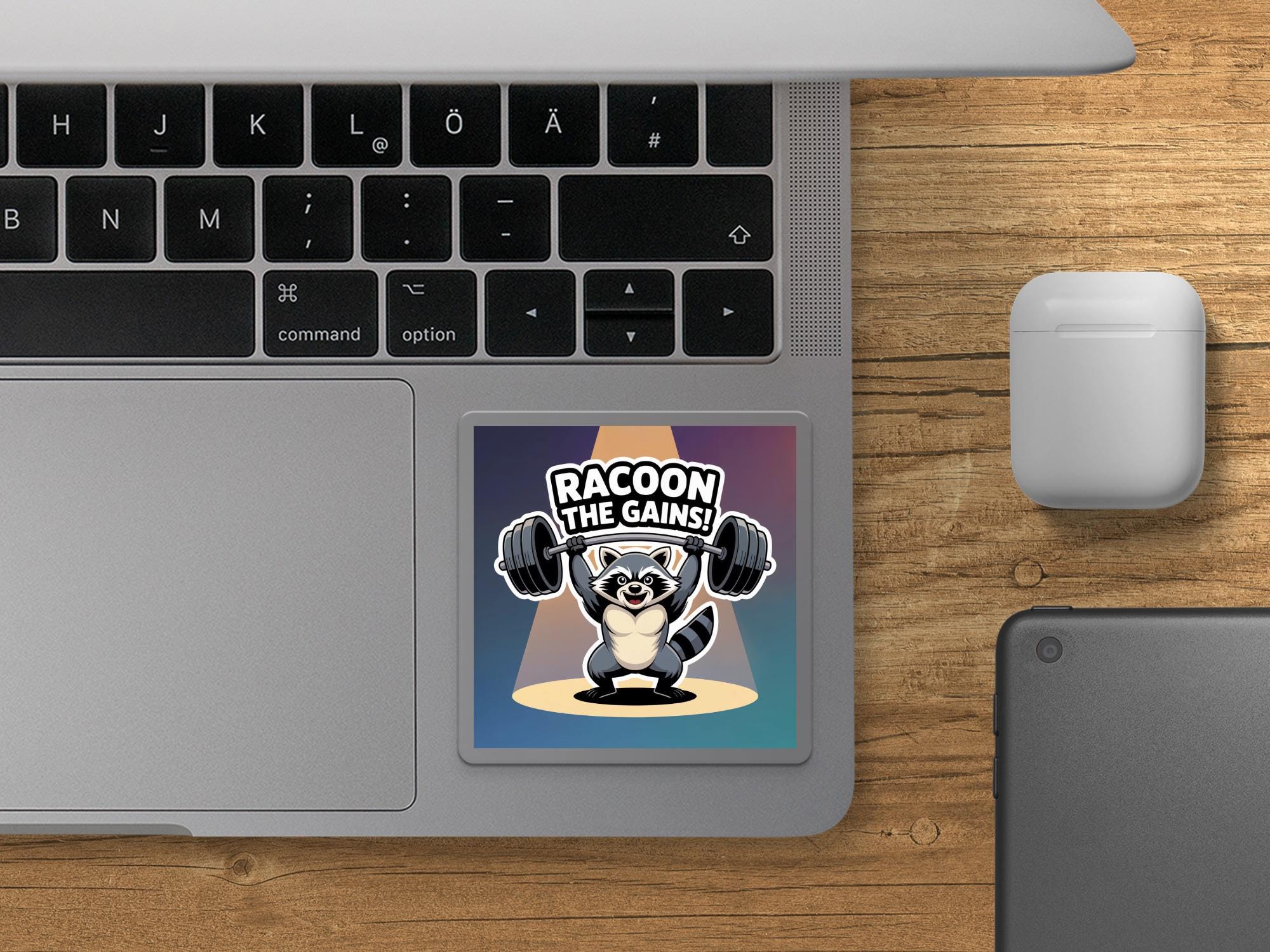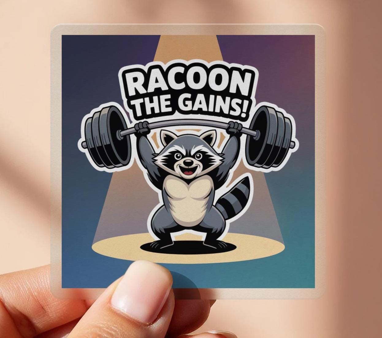 Add a touch of humor and motivation to your everyday items with this unique Raccoon Lifting Sticker. This funny gym animal decal features a cute raccoon lifting weights, perfect for adding personality to your laptop, water bottle, or notebook. Whether you are looking for exercise motivation or a unique gift for a fitness enthusiast, this sticker is sure to bring a smile. "Raccoon the gains" is a play on words to motivate you to work out more.