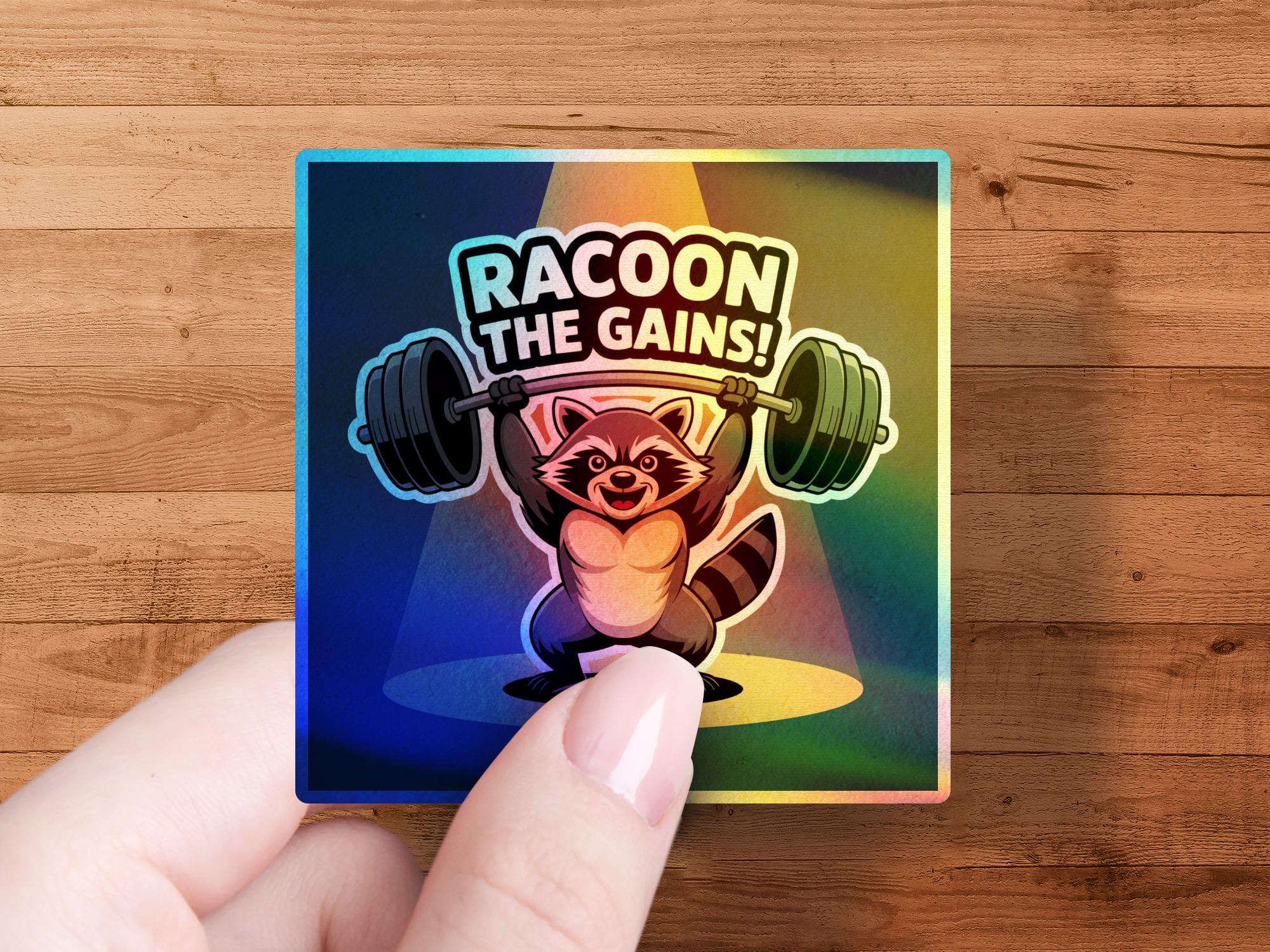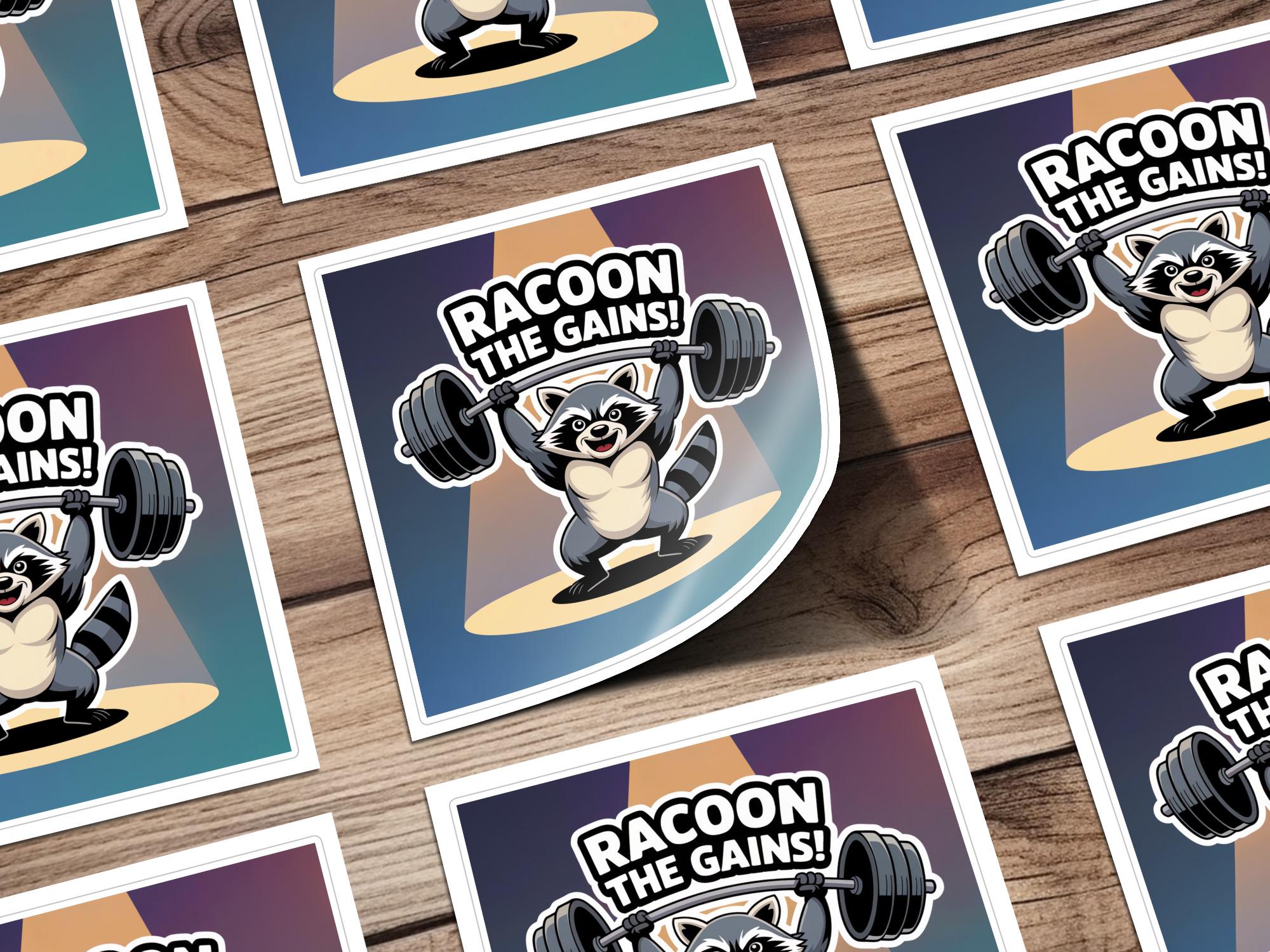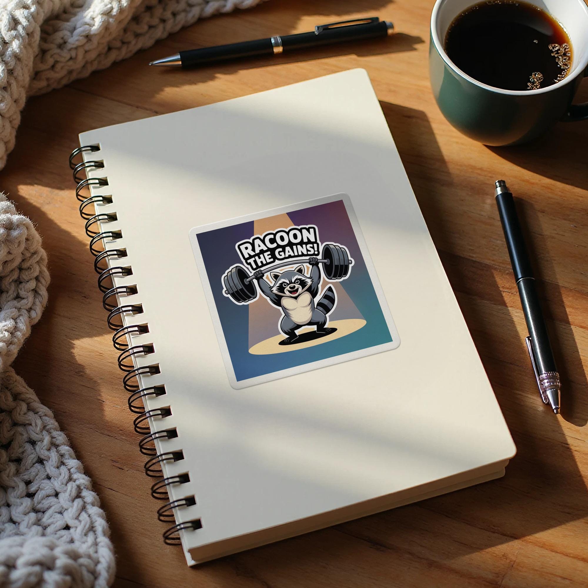 Add a touch of humor and motivation to your everyday items with this unique Raccoon Lifting Sticker. This funny gym animal decal features a cute raccoon lifting weights, perfect for adding personality to your laptop, water bottle, or notebook. Whether you are looking for exercise motivation or a unique gift for a fitness enthusiast, this sticker is sure to bring a smile. "Raccoon the gains" is a play on words to motivate you to work out more.