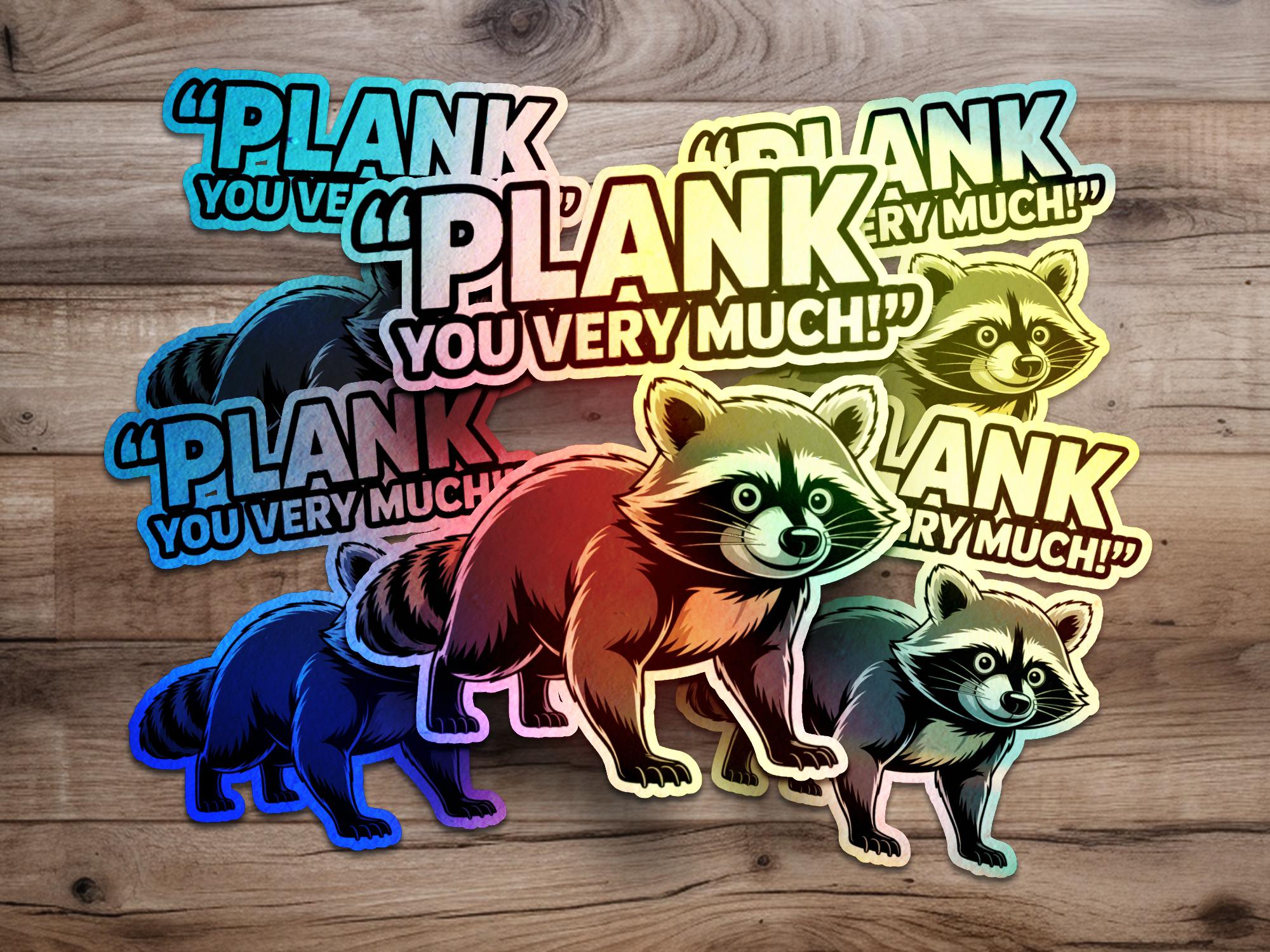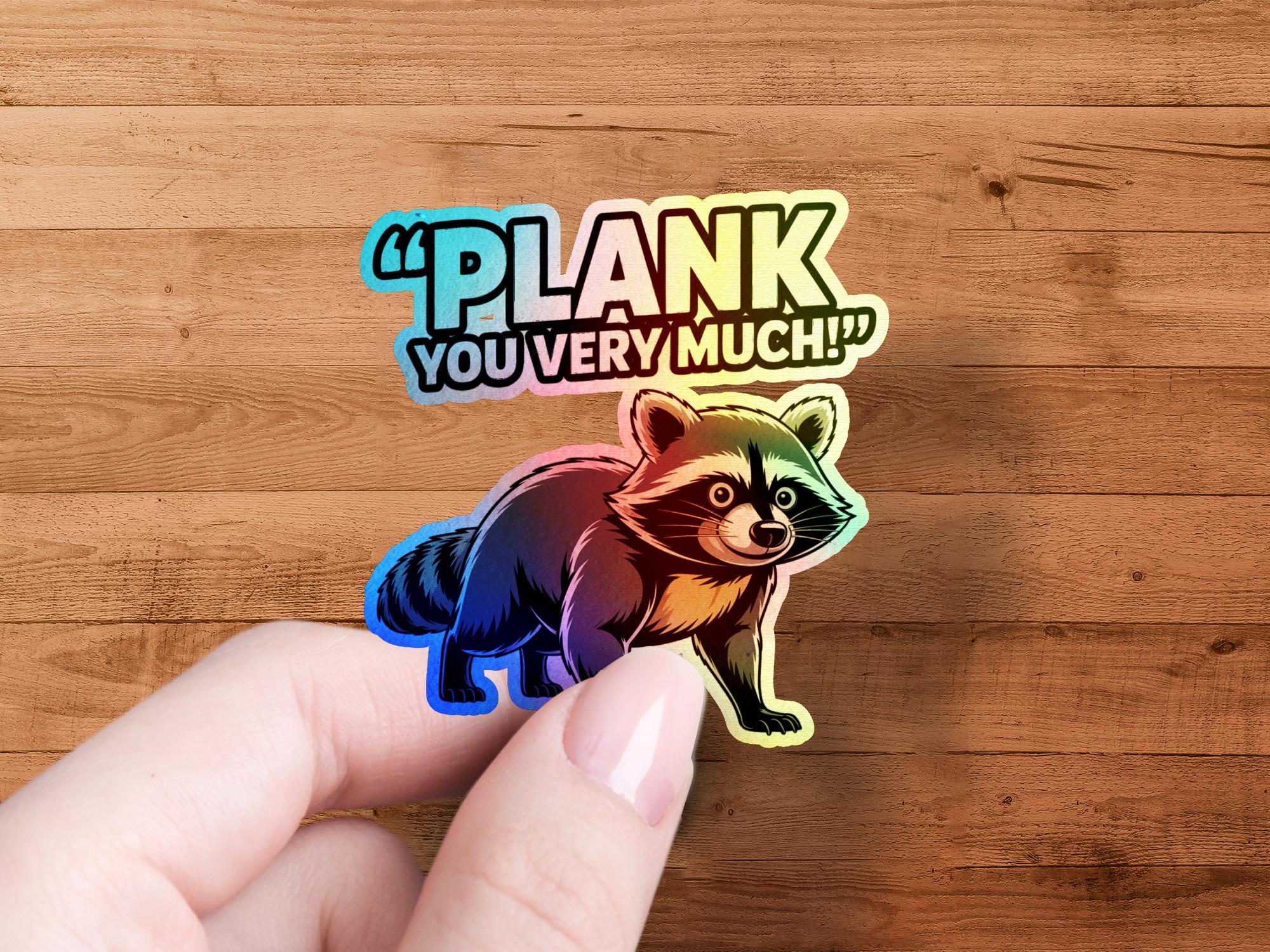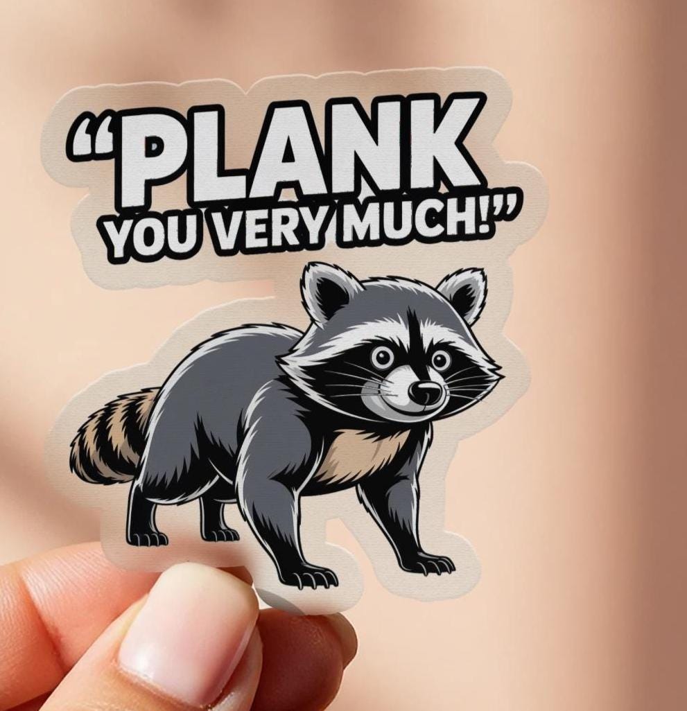 Plank You Raccoon Sticker: Funny Sarcastic Animal Pun Decal