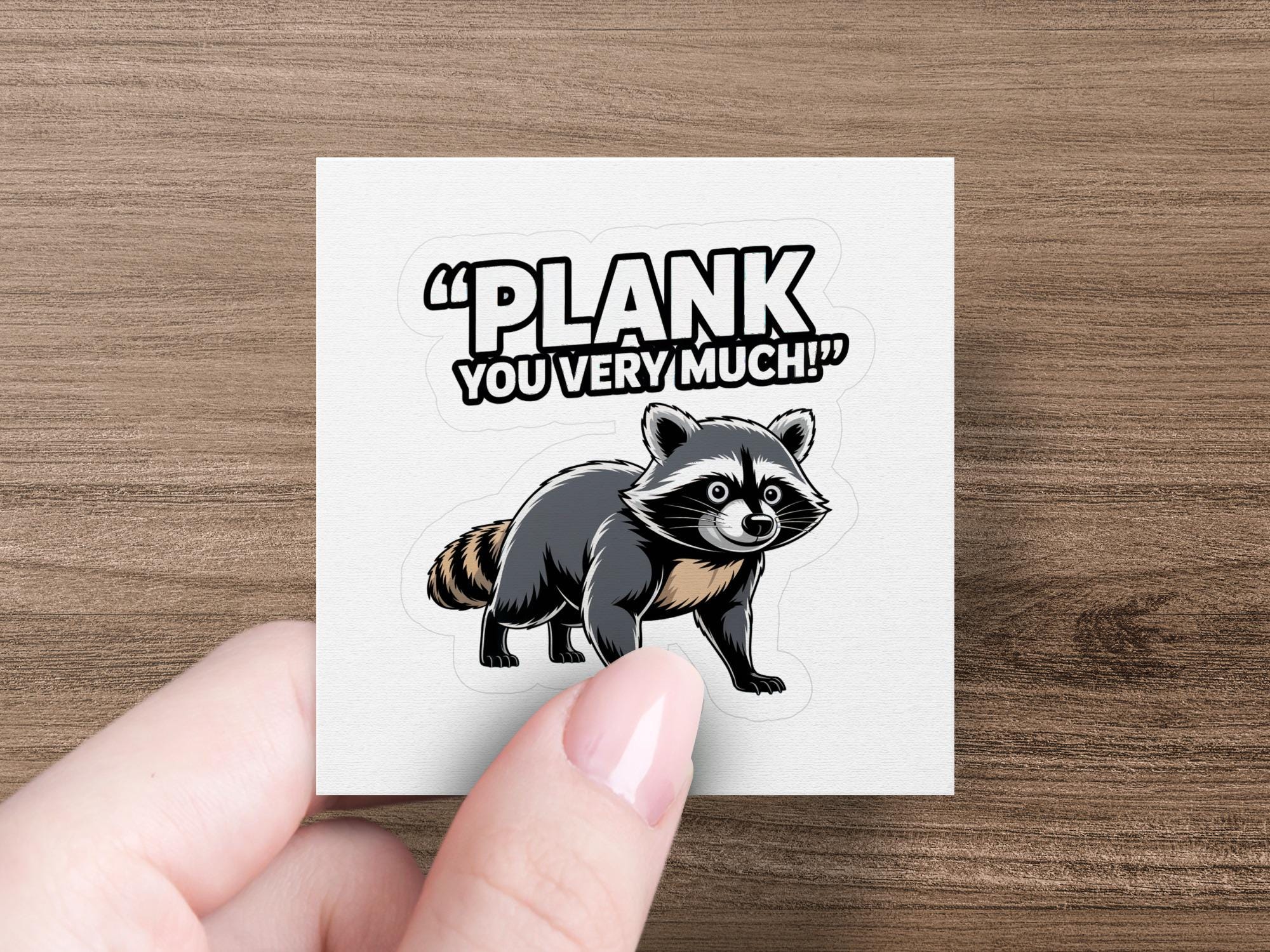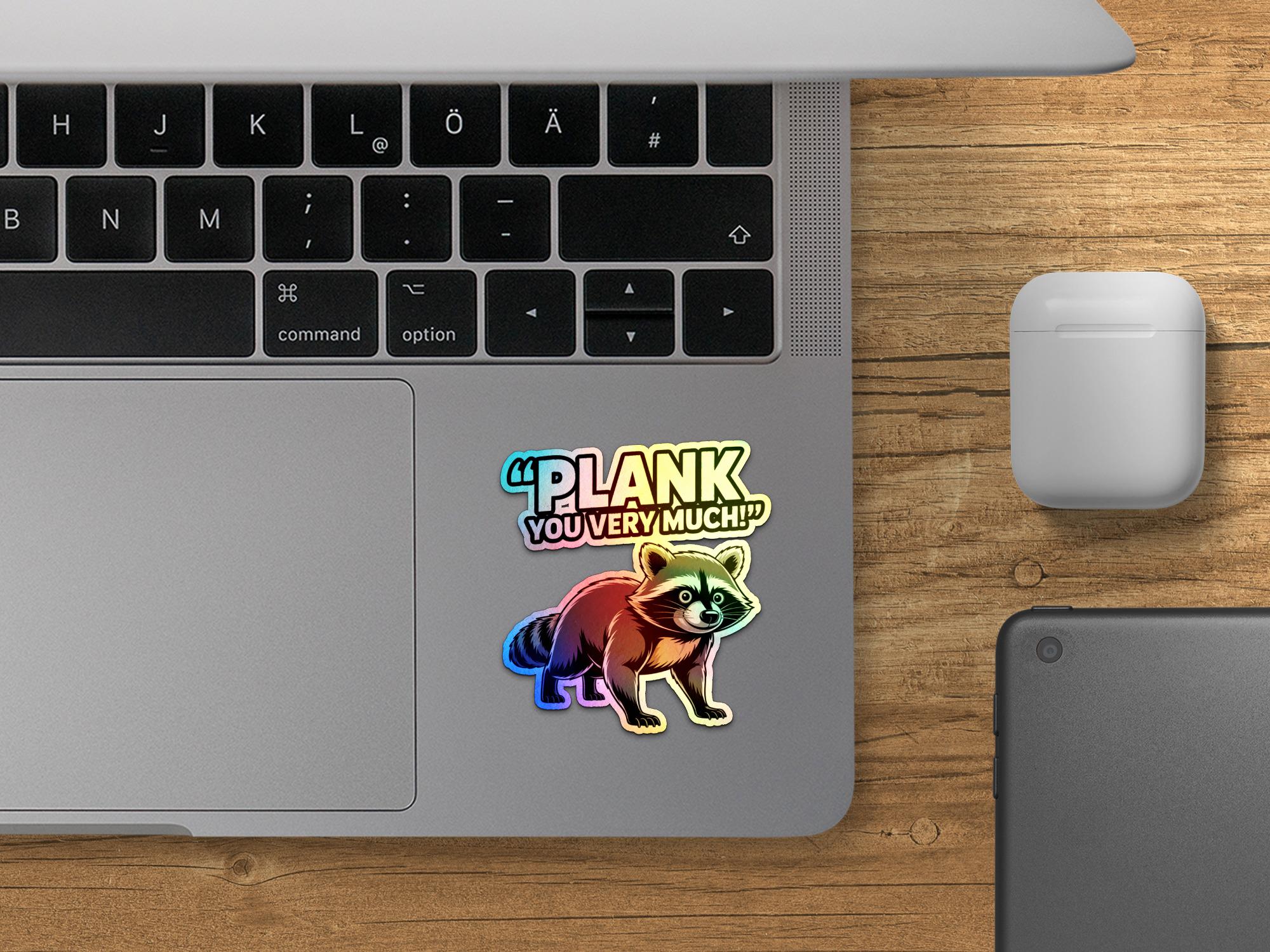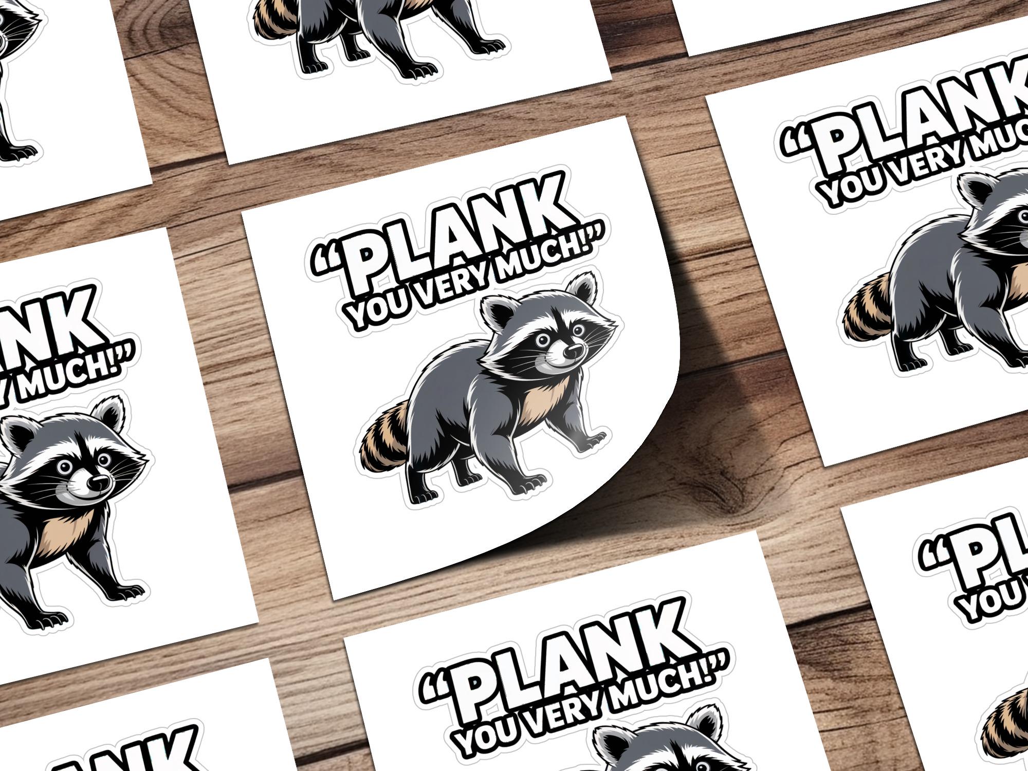 Add a touch of humor to your belongings with this adorable "Plank You Very Much" Raccoon Sticker! Perfect for laptops, water bottles, notebooks, and more, this sticker will bring a smile to anyone's face. Share a laugh with this unique design or make it a fun gift for the animal lovers.