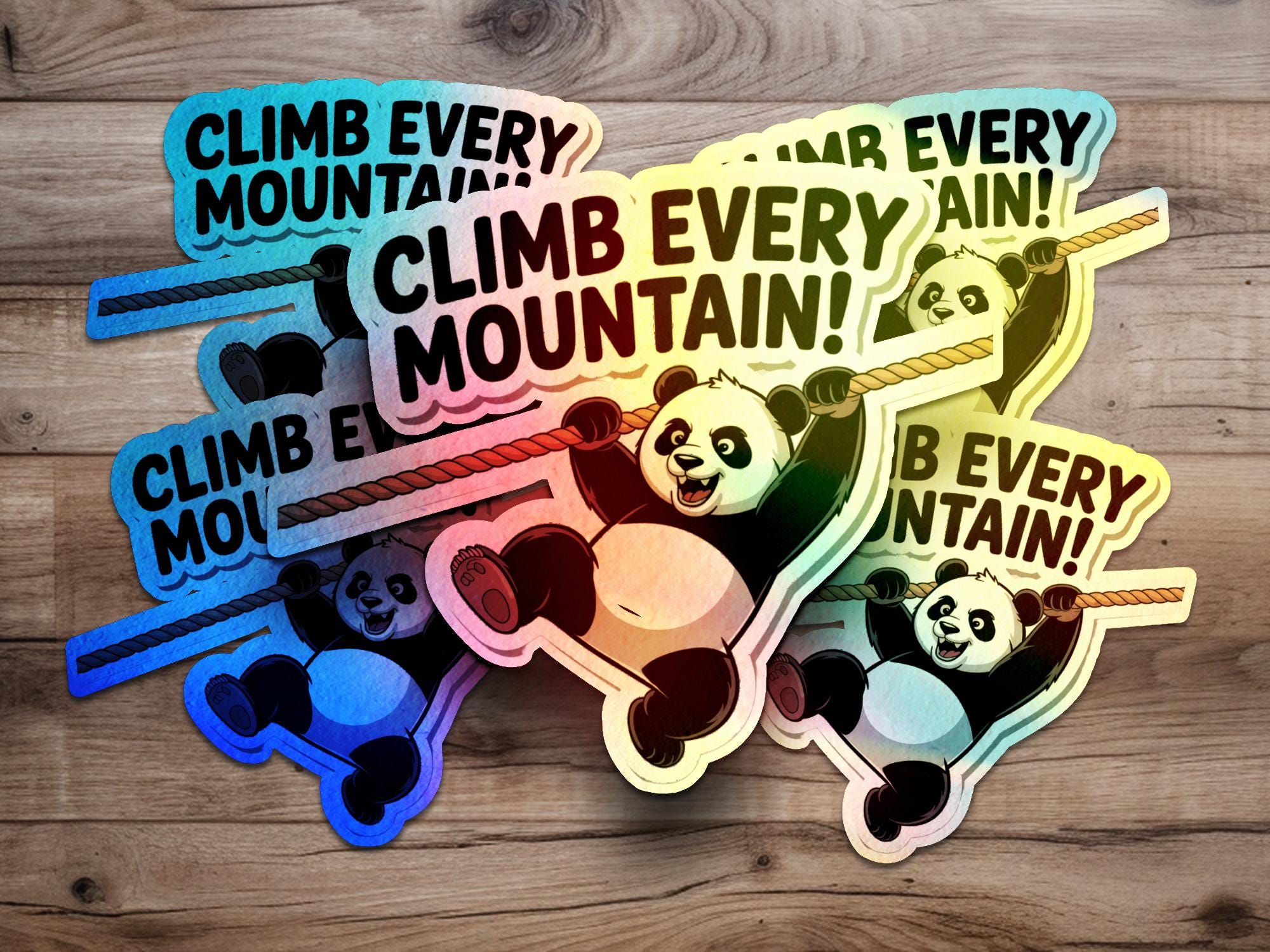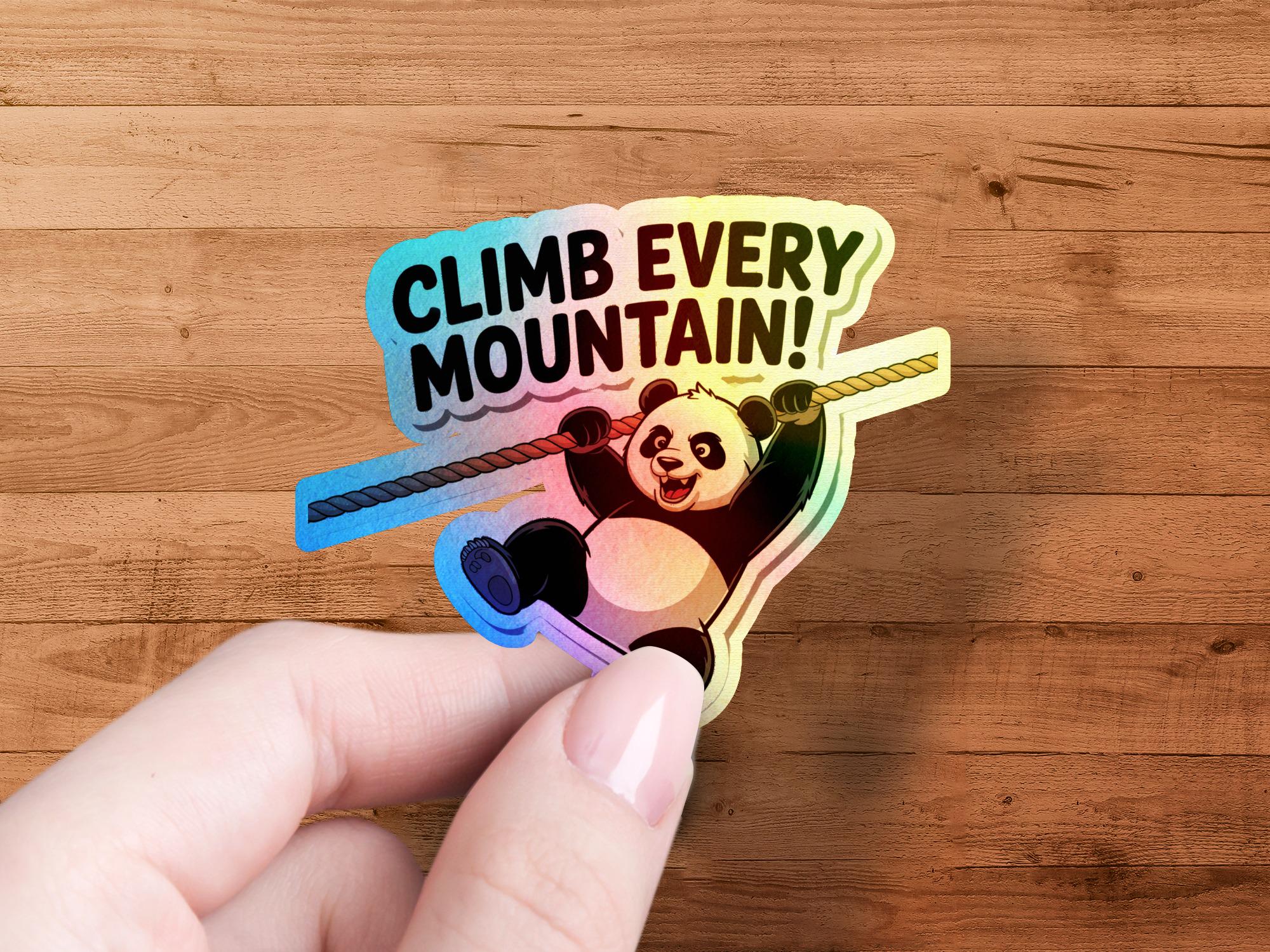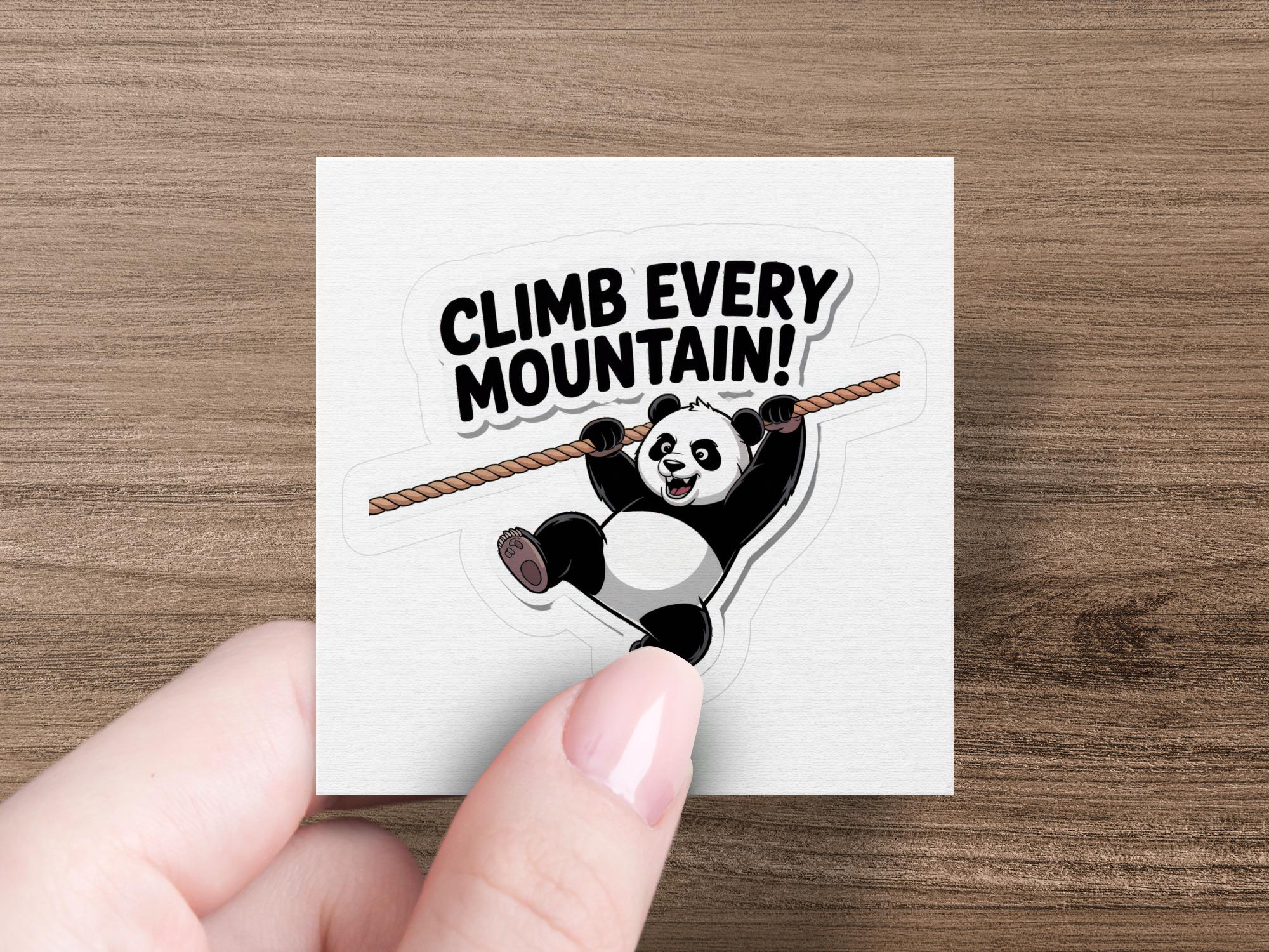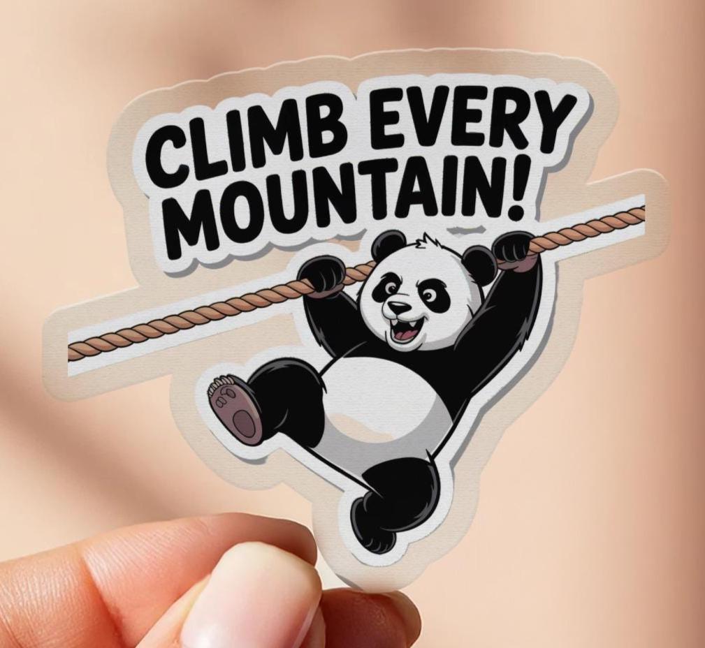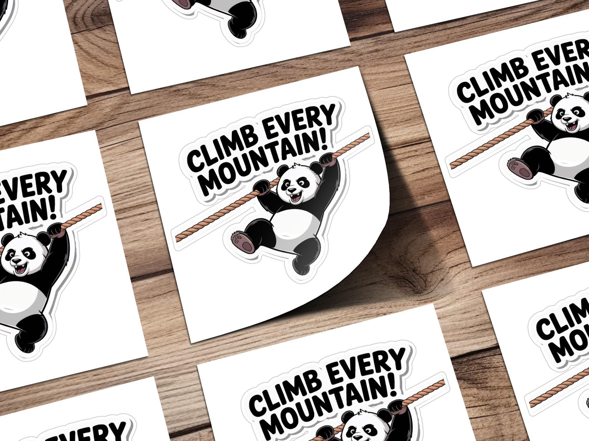 Motivational Panda Sticker: Climb Every Mountain, Adventure Decal