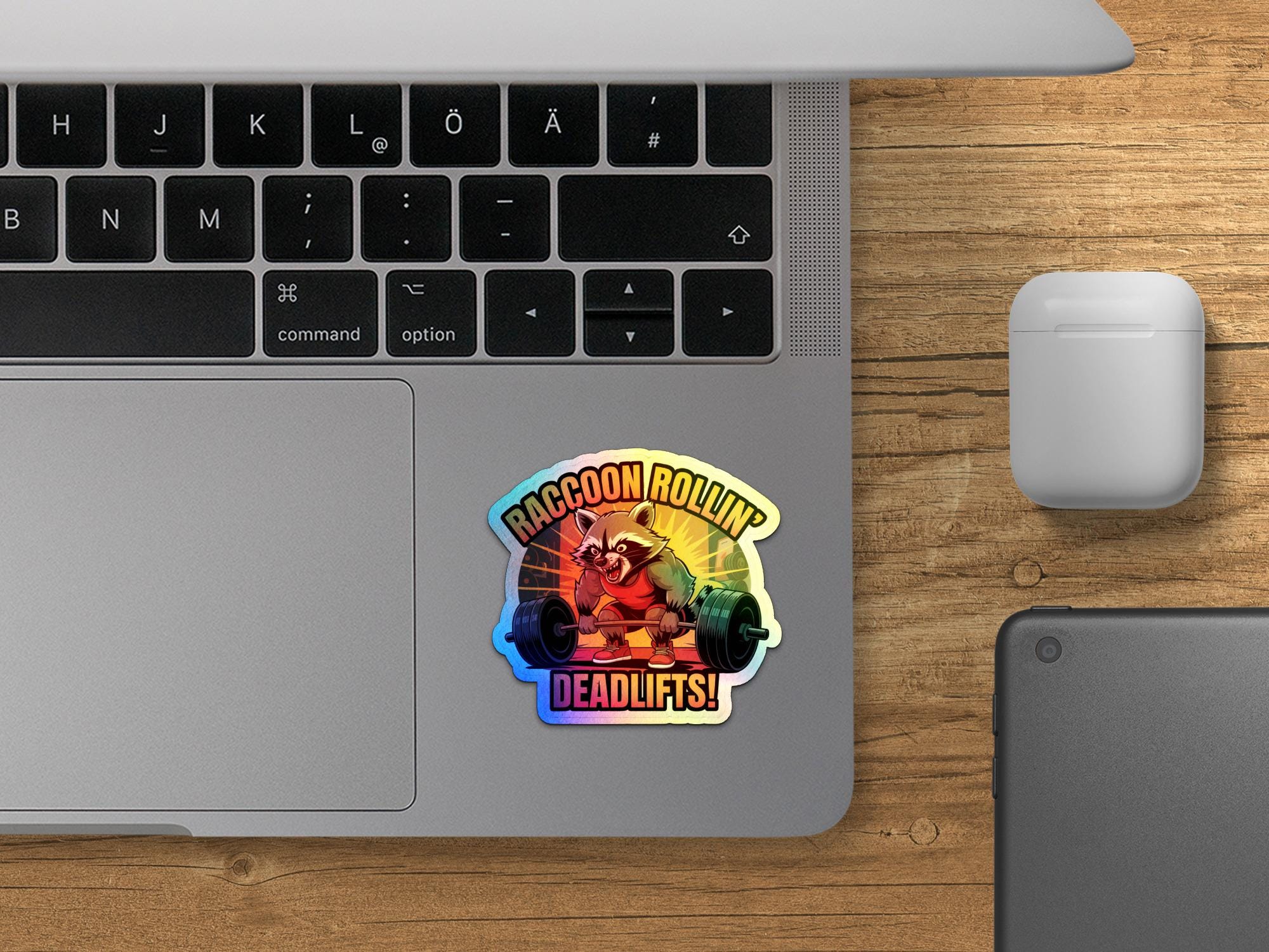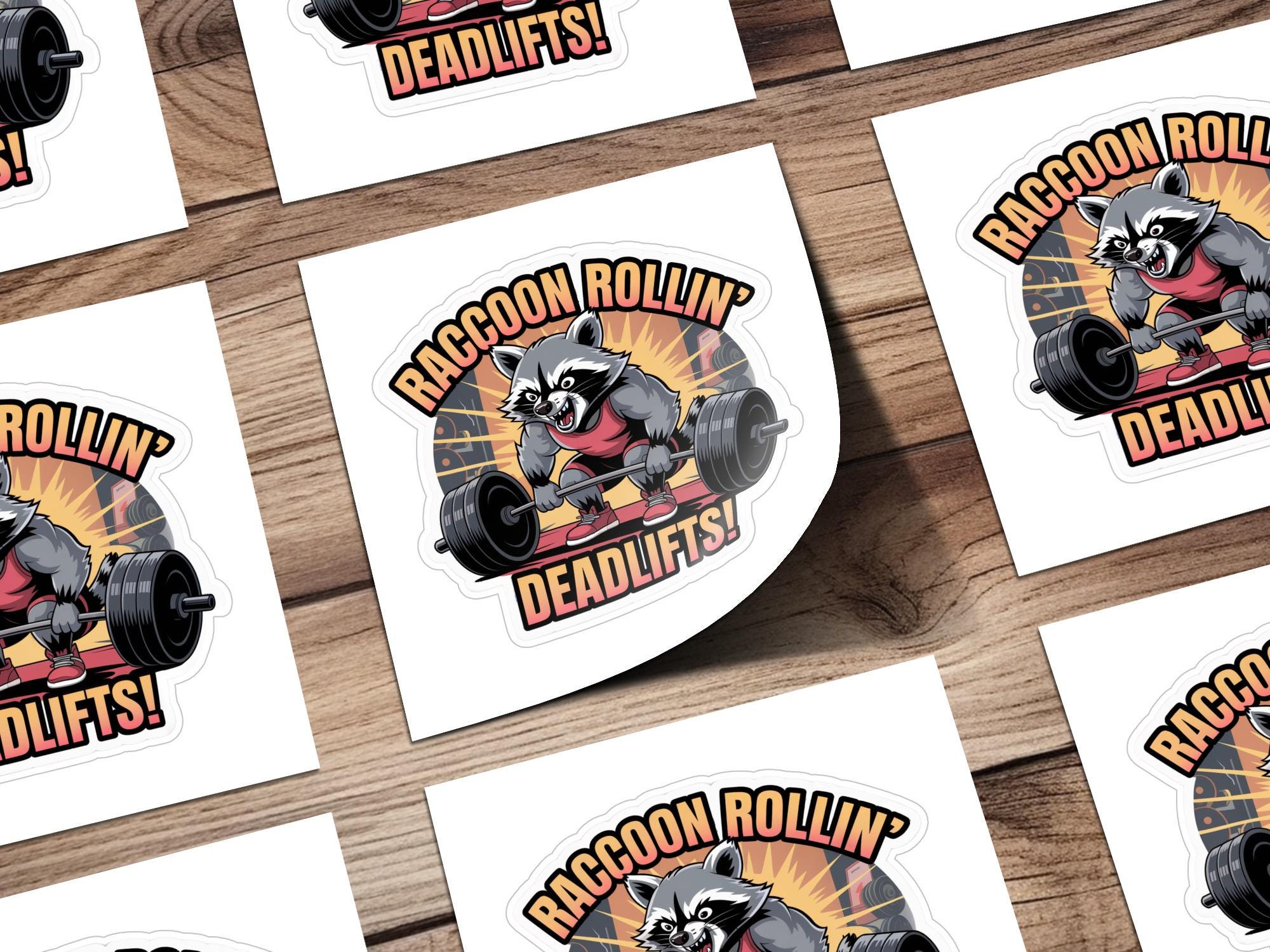 It can be used on laptops, water bottles, notebooks, and more. Get yours today and let this weightlifting raccoon inspire you!
