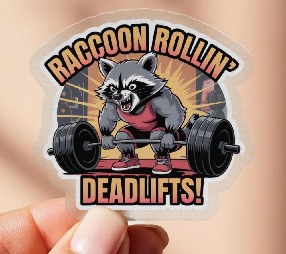Weightlifting Raccoon Sticker: Funny Gym Motivation, Fitness Gift