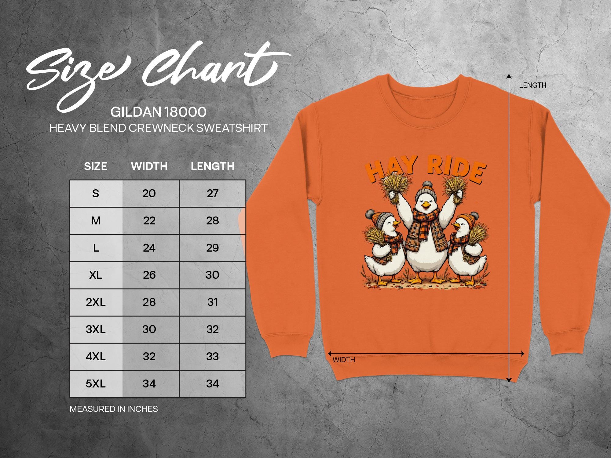 Embrace the autumn spirit with this Cute Ducks Hay Ride Sweatshirt. Perfect for fall harvest festivals, this cozy apparel features whimsical animal graphics that are sure to delight. Designed with the help of AI, this comfortable seasonal clothing piece is great for fun autumn outings. Love it or get a full refund with our Love it Guarantee!