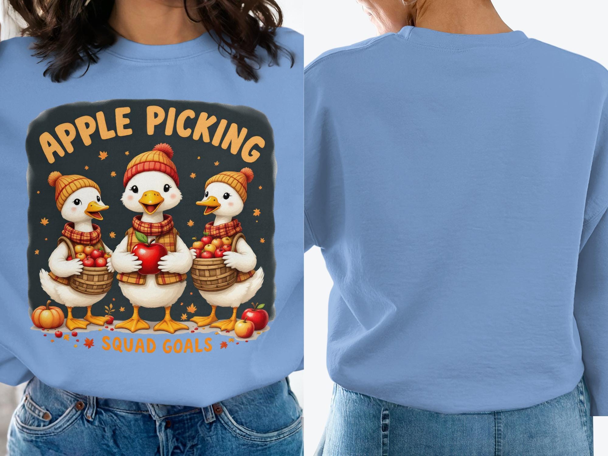 Embrace the fall season with this cute Apple Picking Ducks Sweatshirt featuring an adorable duck trio ready for country fall adventures. This charming design is made with the help of AI and promises a cozy and festive touch to your autumn wardrobe. Whether you're off to a pumpkin patch or enjoying a fall festival, this sweatshirt is ideal for all your autumn activities. Plus, with our Love it Guarantee, if you don’t absolutely love this product, you can return it for a full refund!