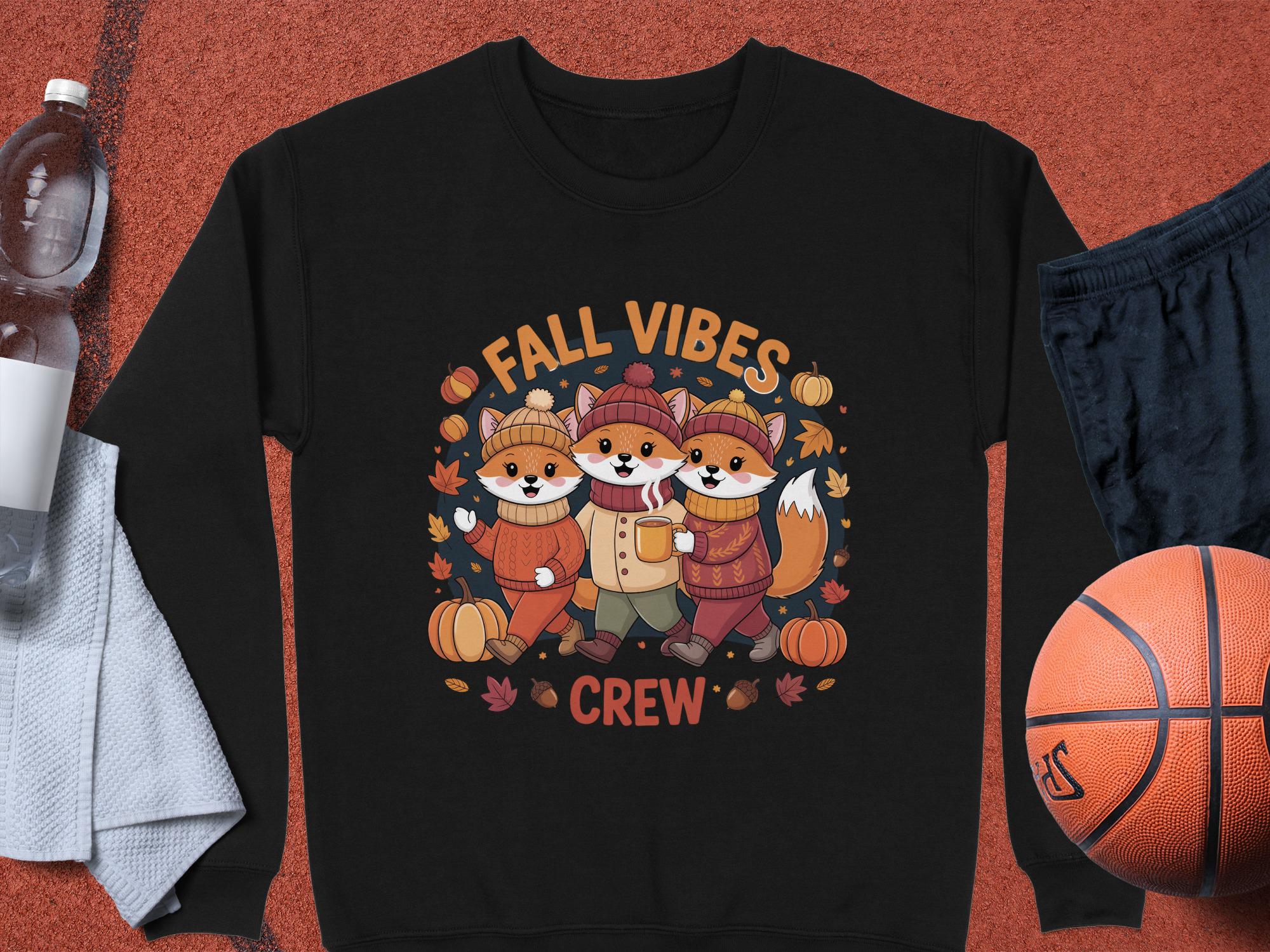 Fall Vibes Crew Sweatshirt Cute Fox Autumn Theme Cozy Shirt Pumpkin Leaves Acorns Cozy Fashion