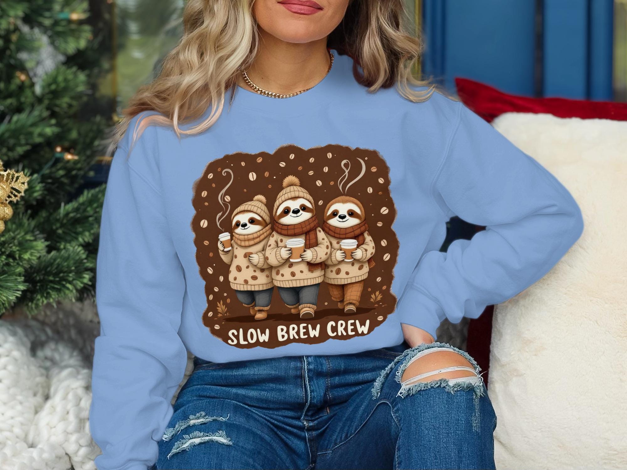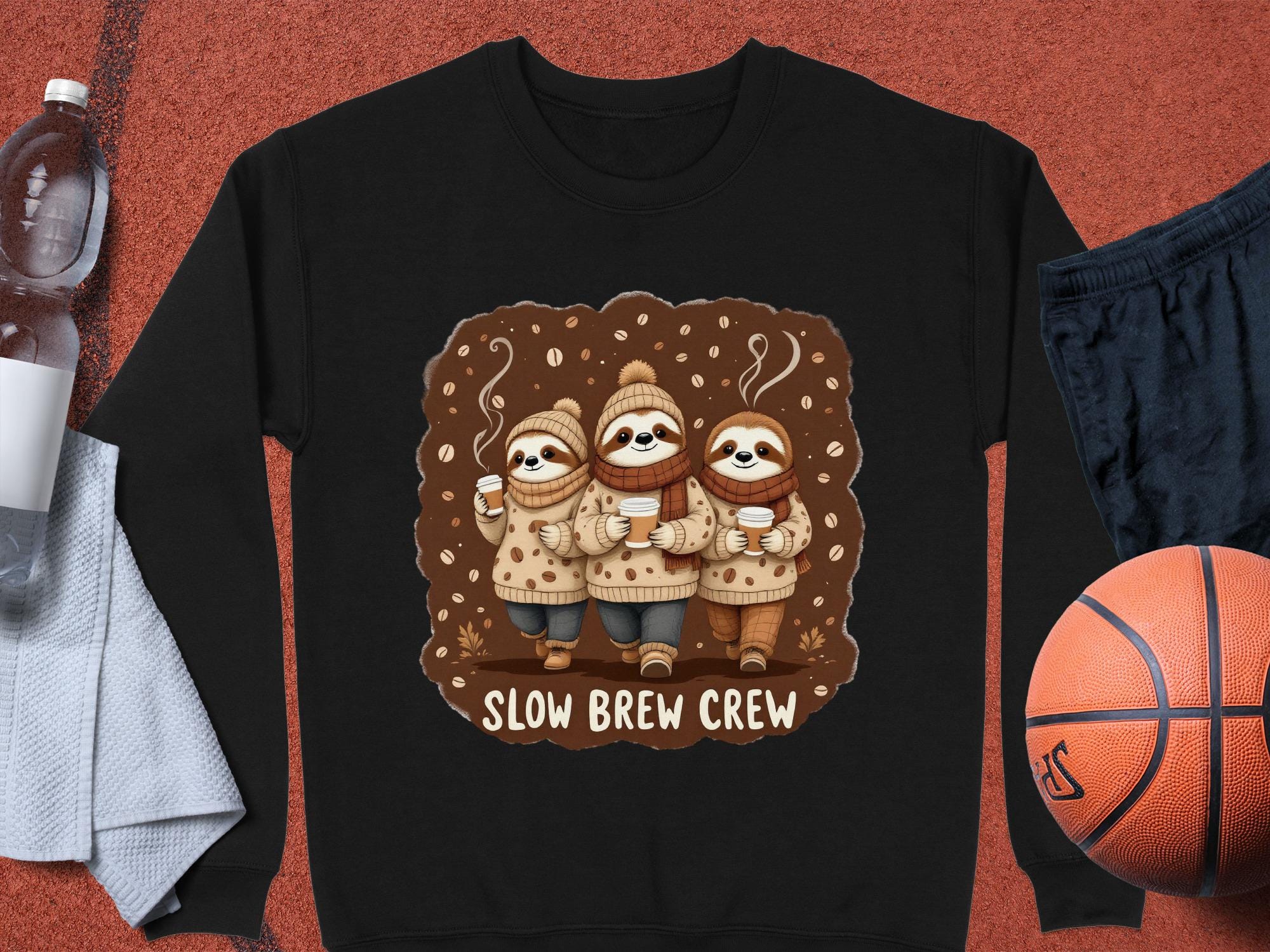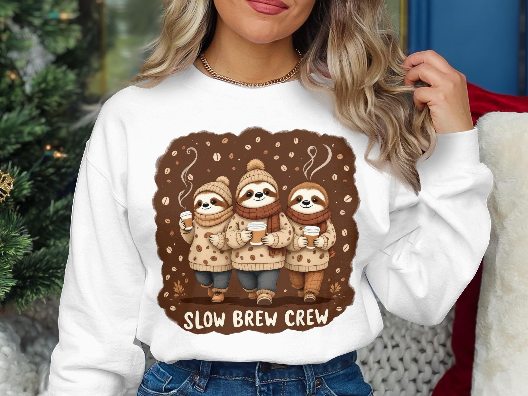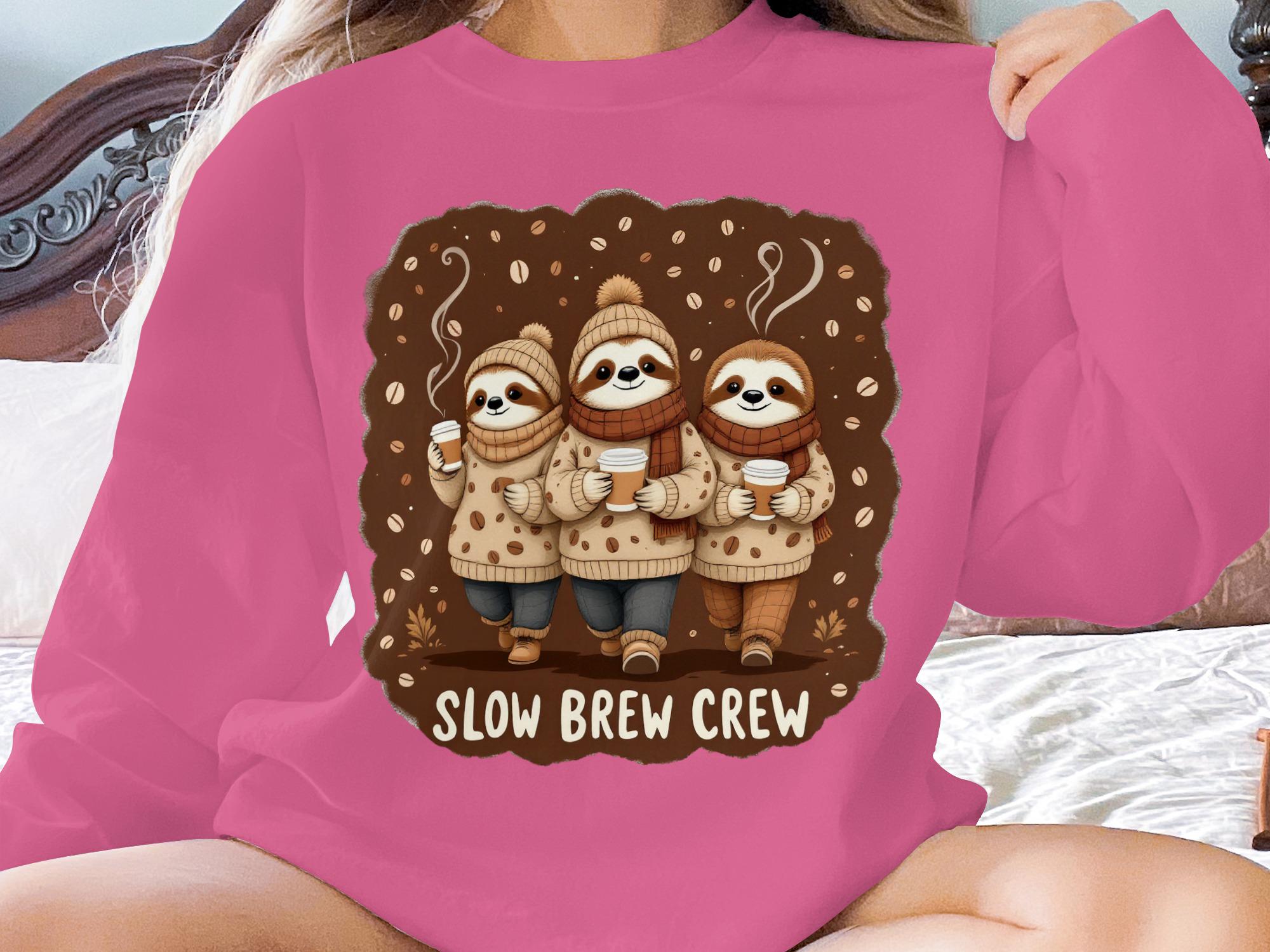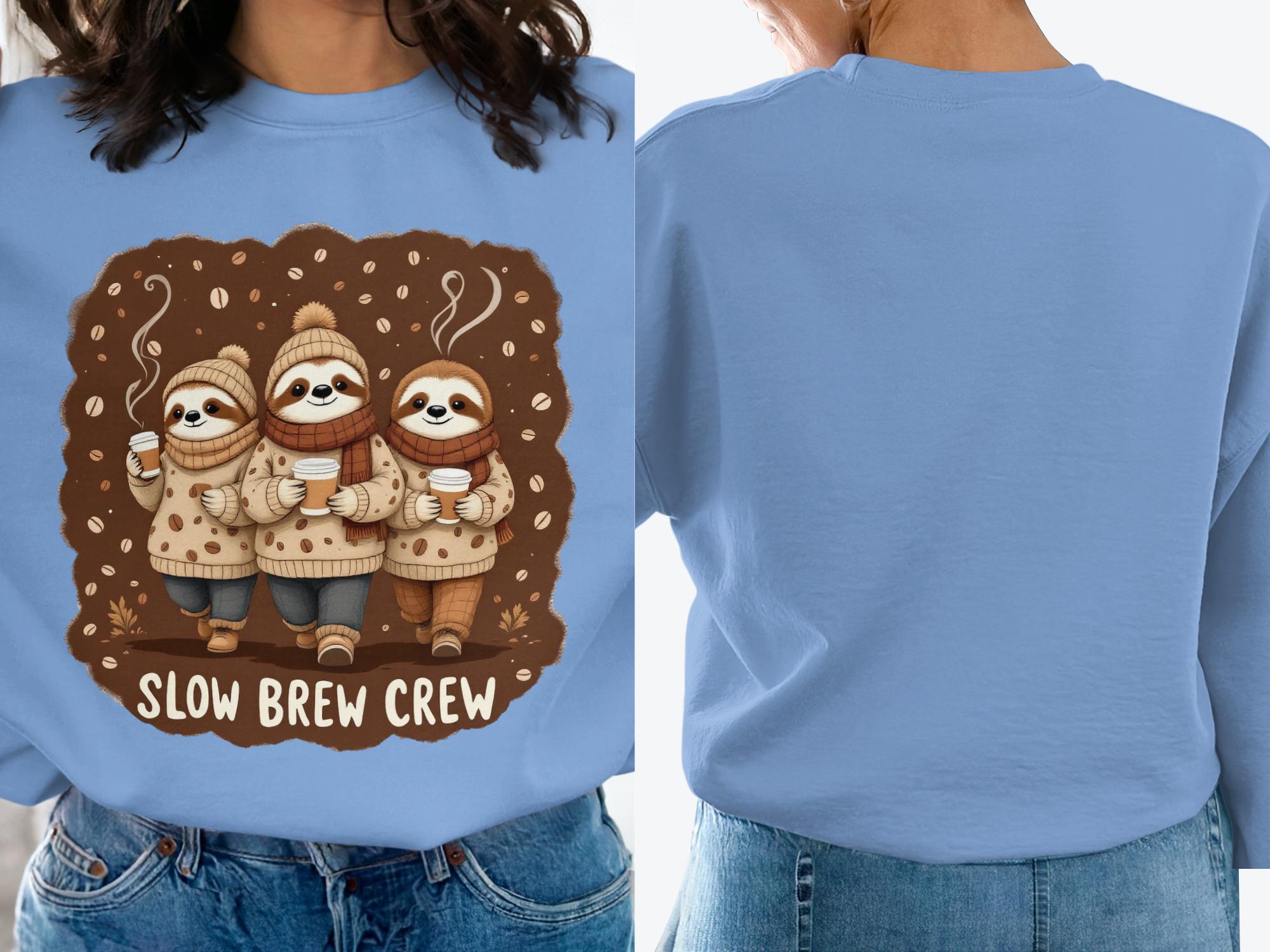 Slow Brew Crew Sloth Sweatshirt: Coffee Lover's Cozy Pullover