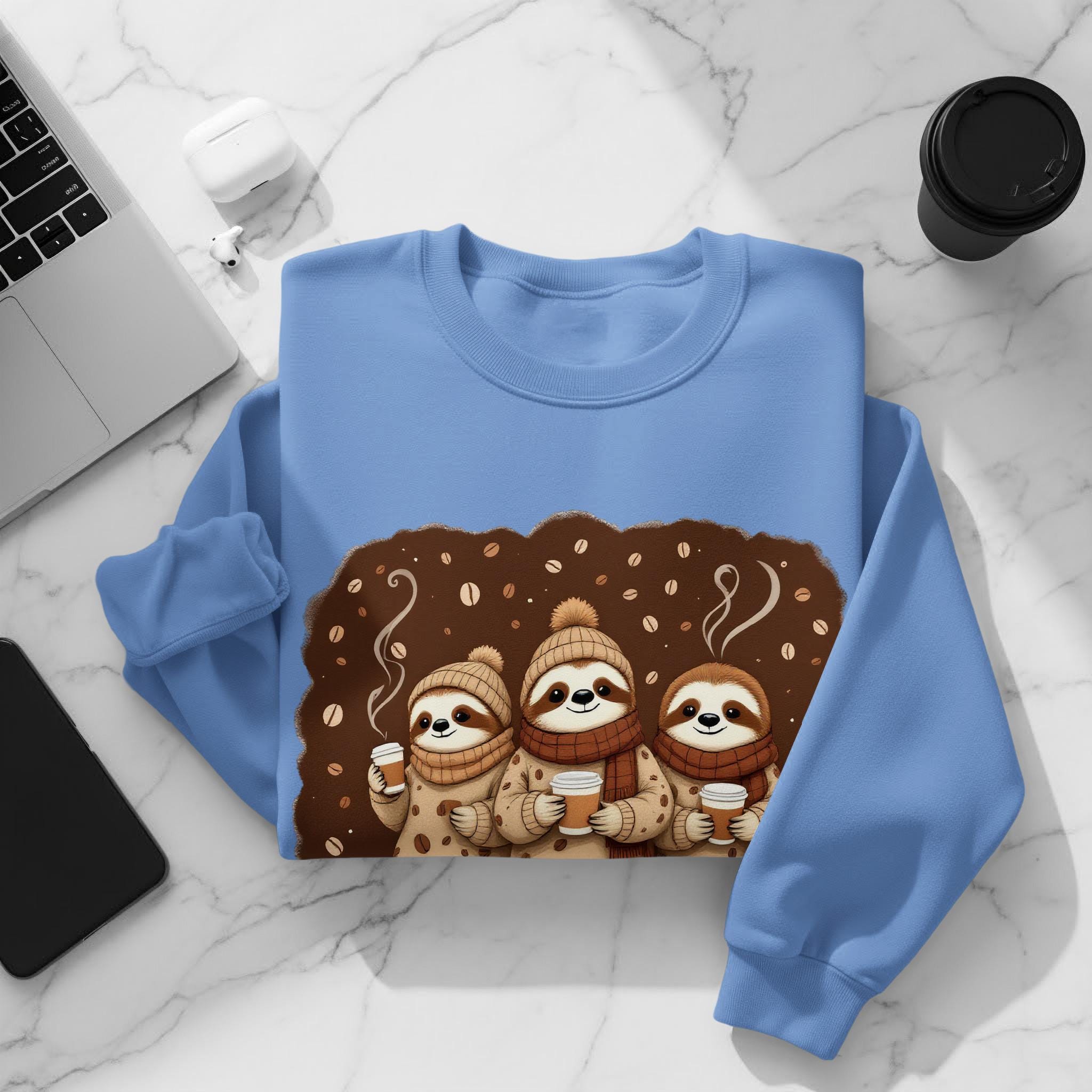 Embrace your love for coffee and sloths with this cozy "Slow Brew Crew" sweatshirt! Perfect for coffee lovers, this AI-designed pullover features adorable sloths enjoying their favorite brew. A charming addition to your wardrobe or a fun gift for a friend. Love it Guarantee: if you don't love your sweatshirt, return it for a full refund.
