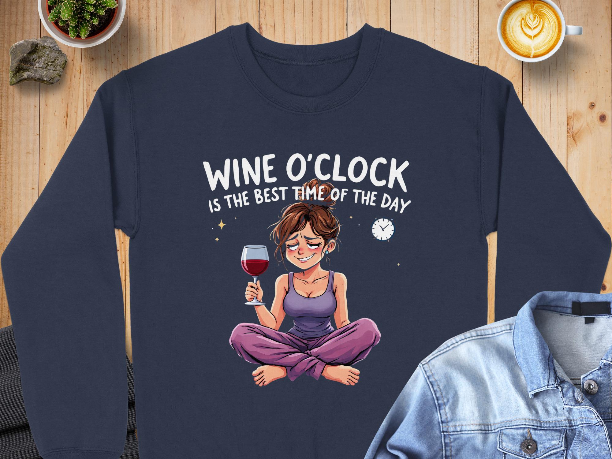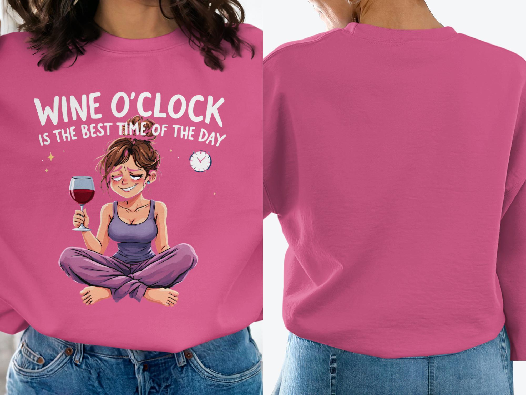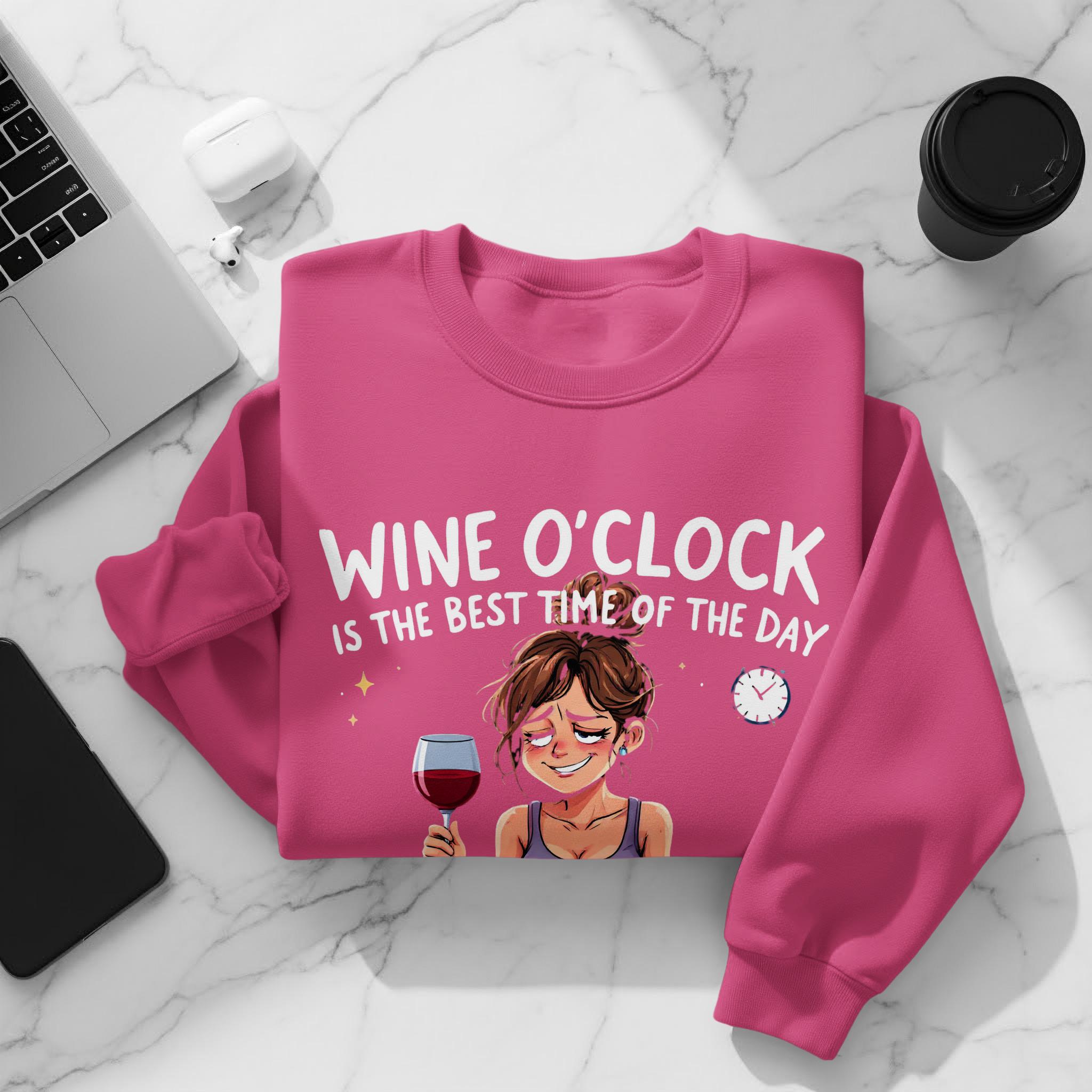 Wine O'Clock Sweatshirt: Funny Cartoon Woman, Relaxation Gift