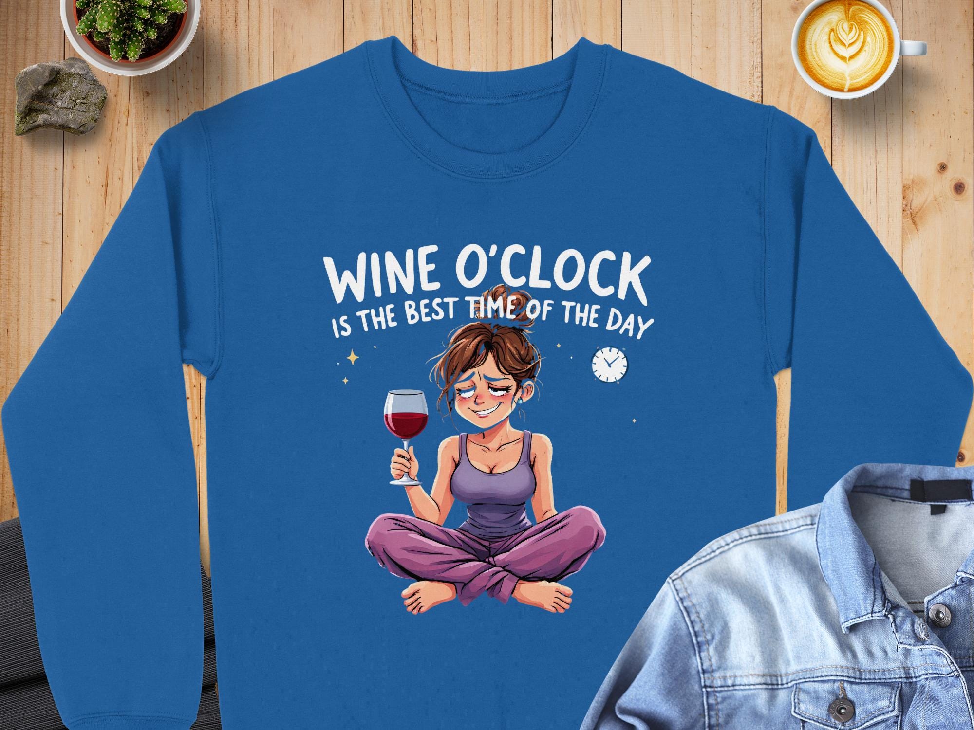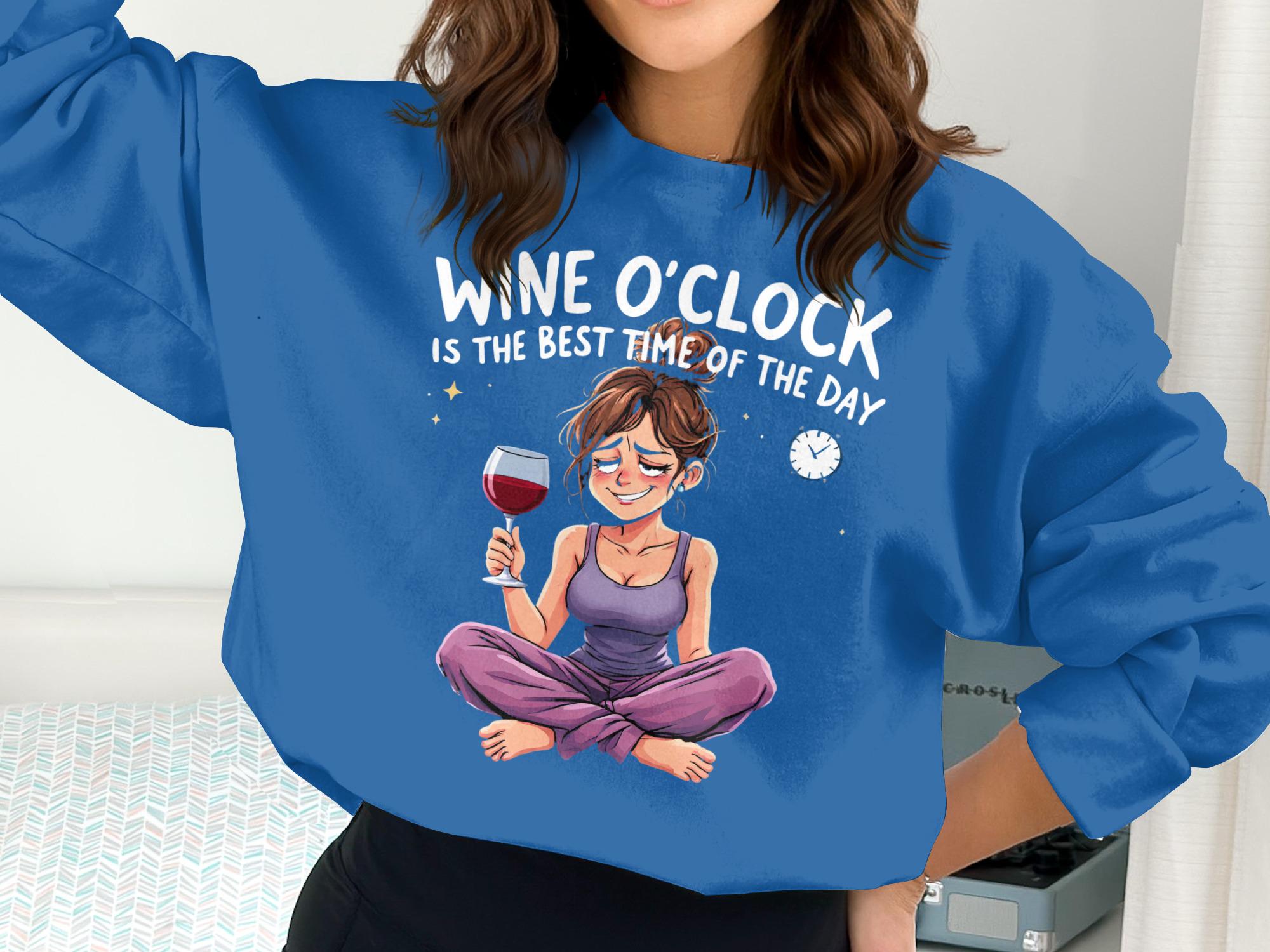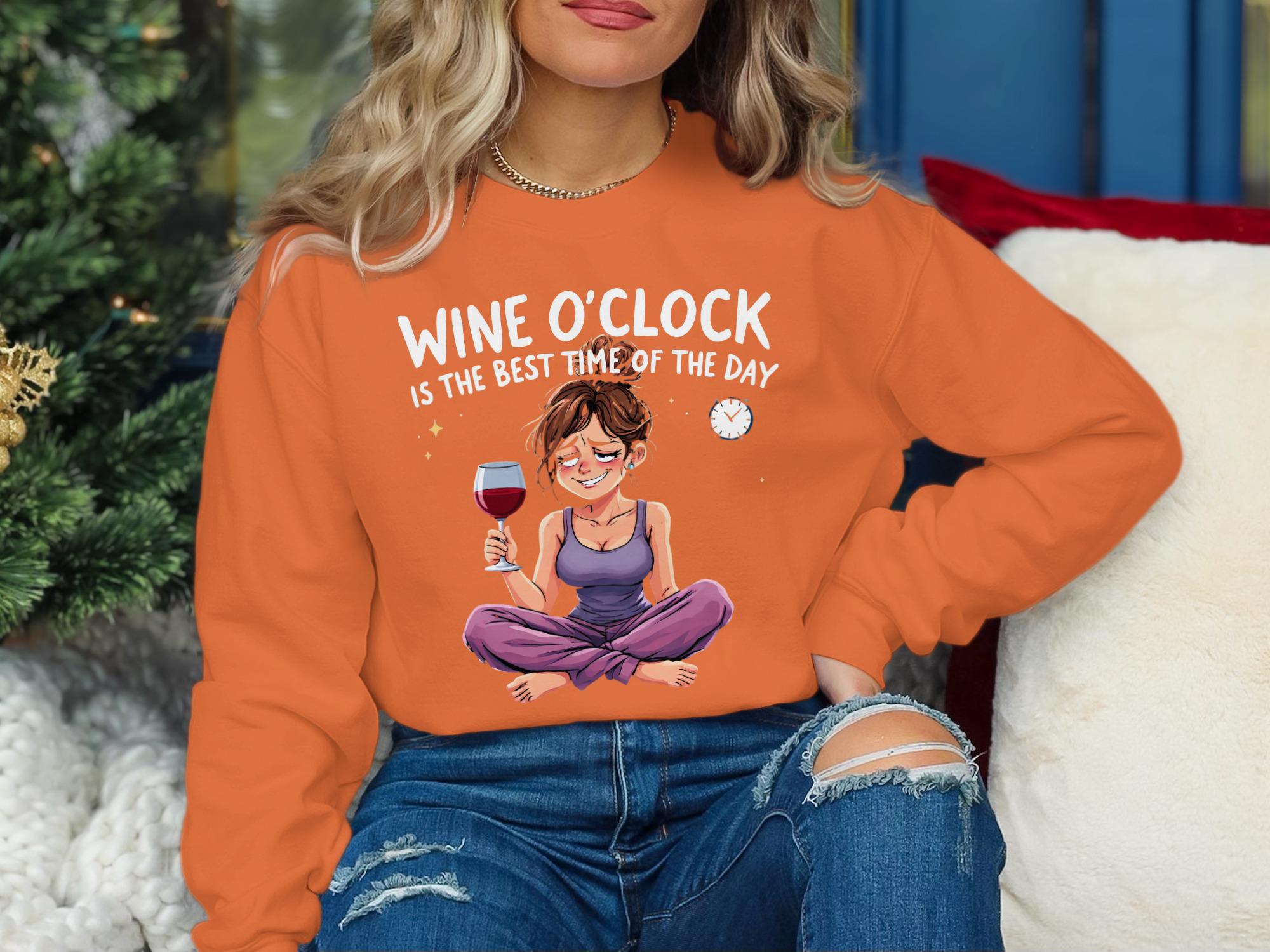 Wine O'Clock Sweatshirt: Funny Cartoon Woman, Relaxation Gift