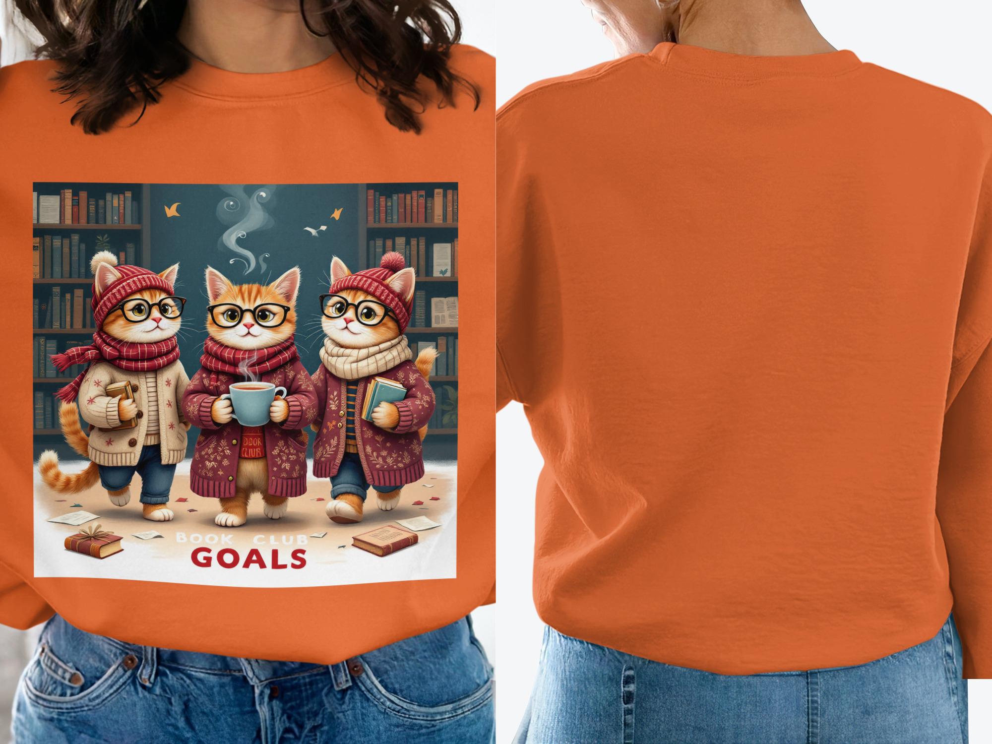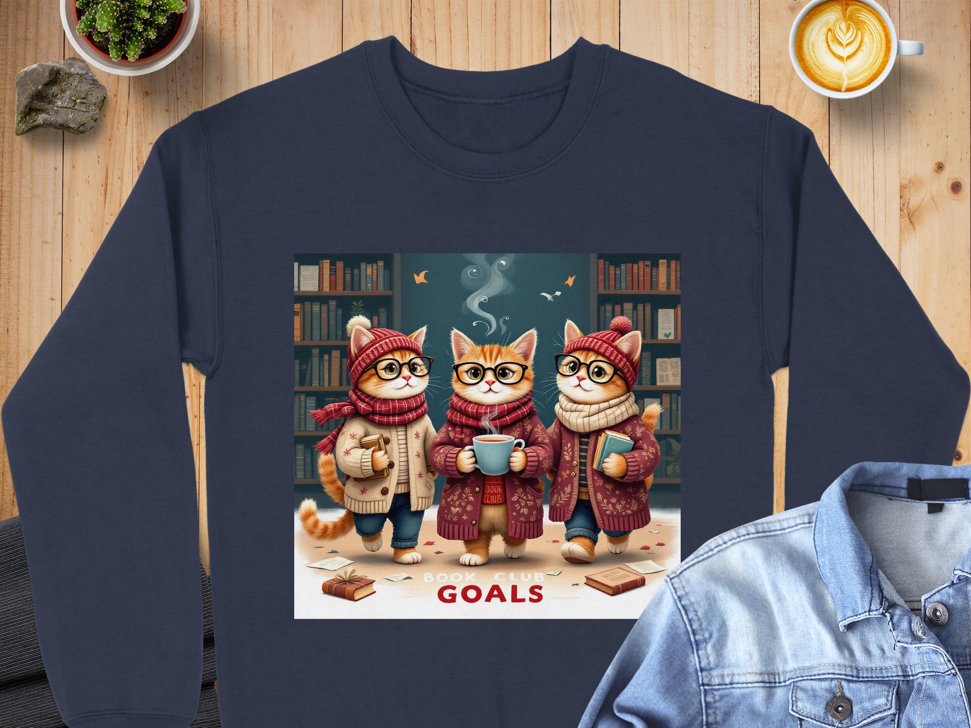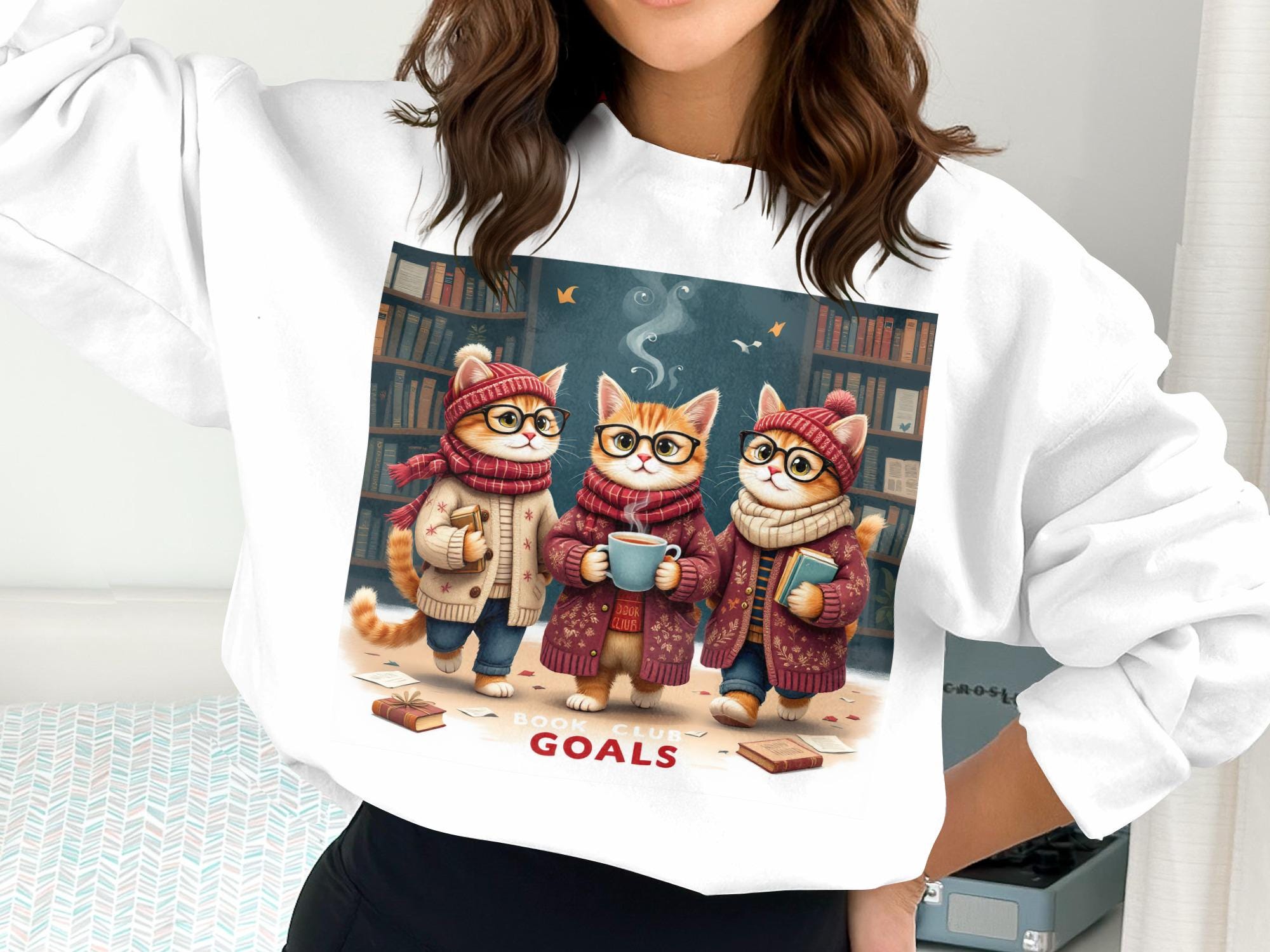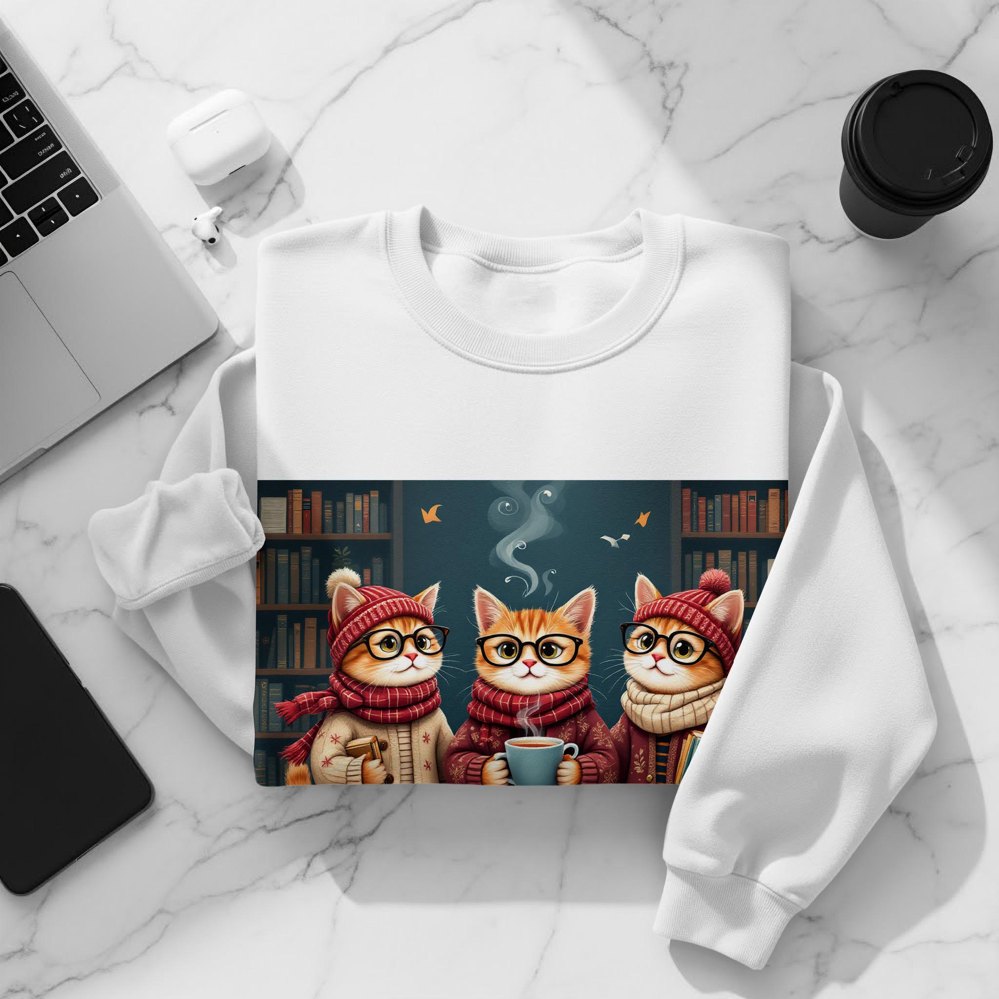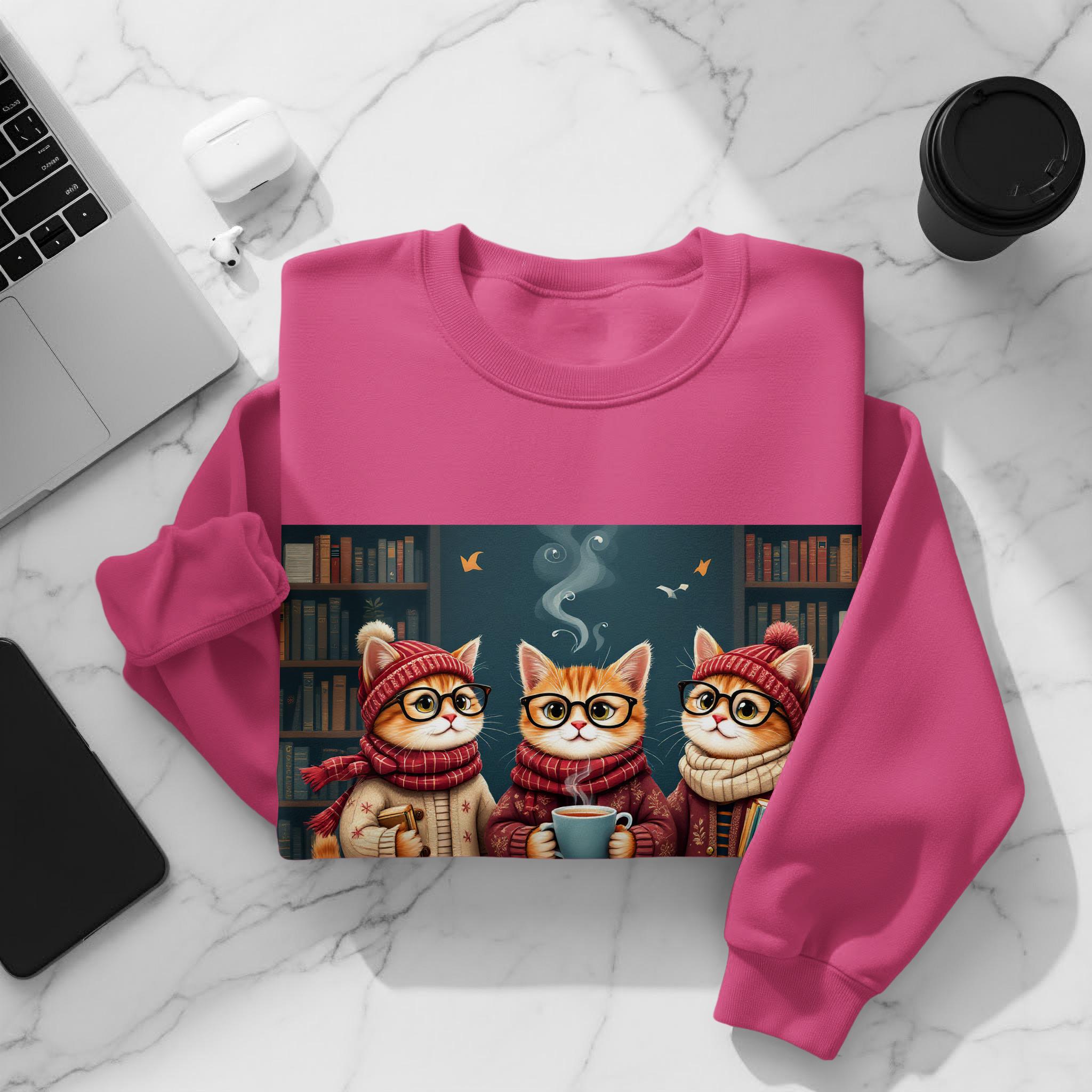 Cat Book Club Sweatshirt, Cozy Cat Lover Apparel