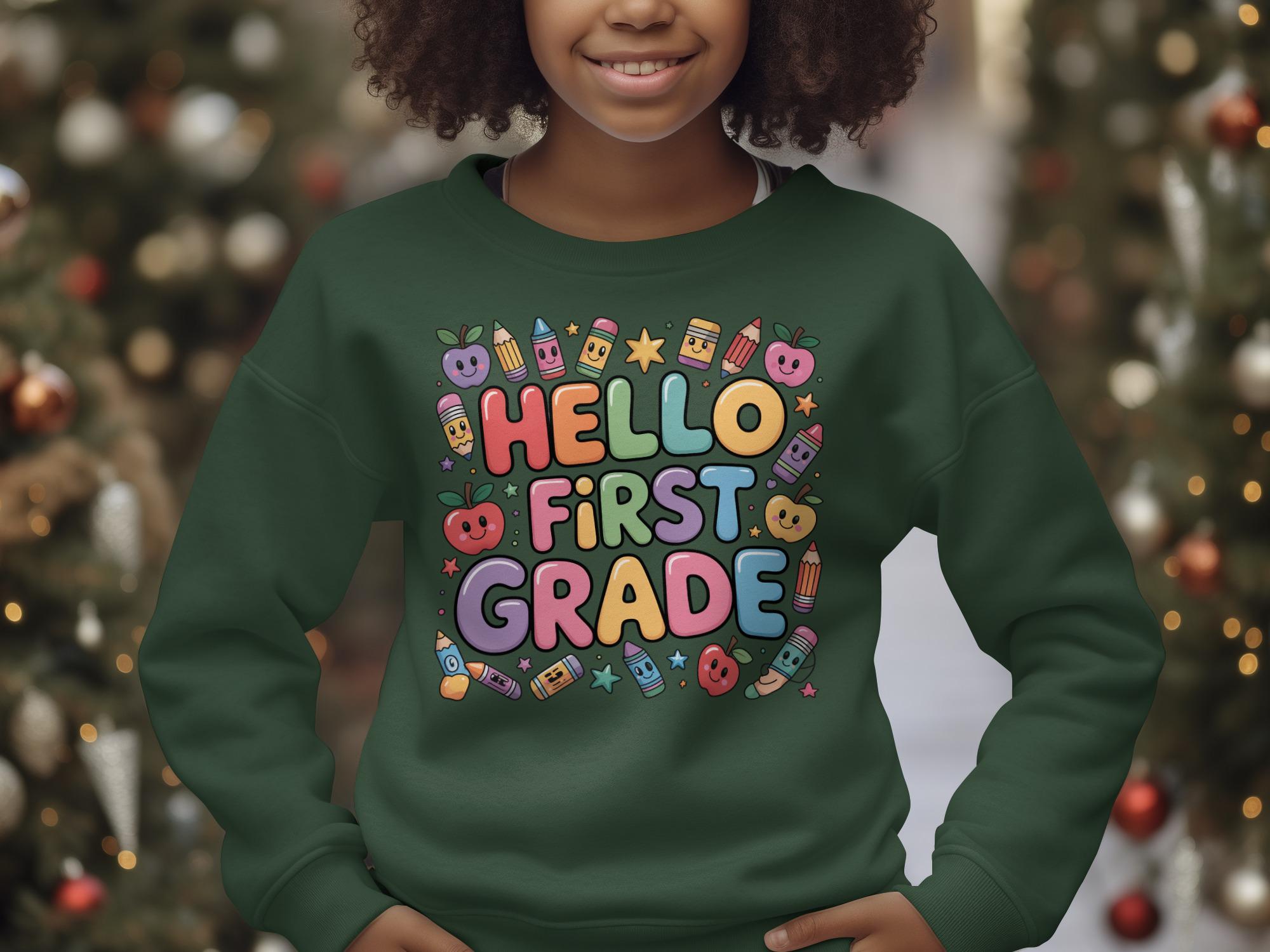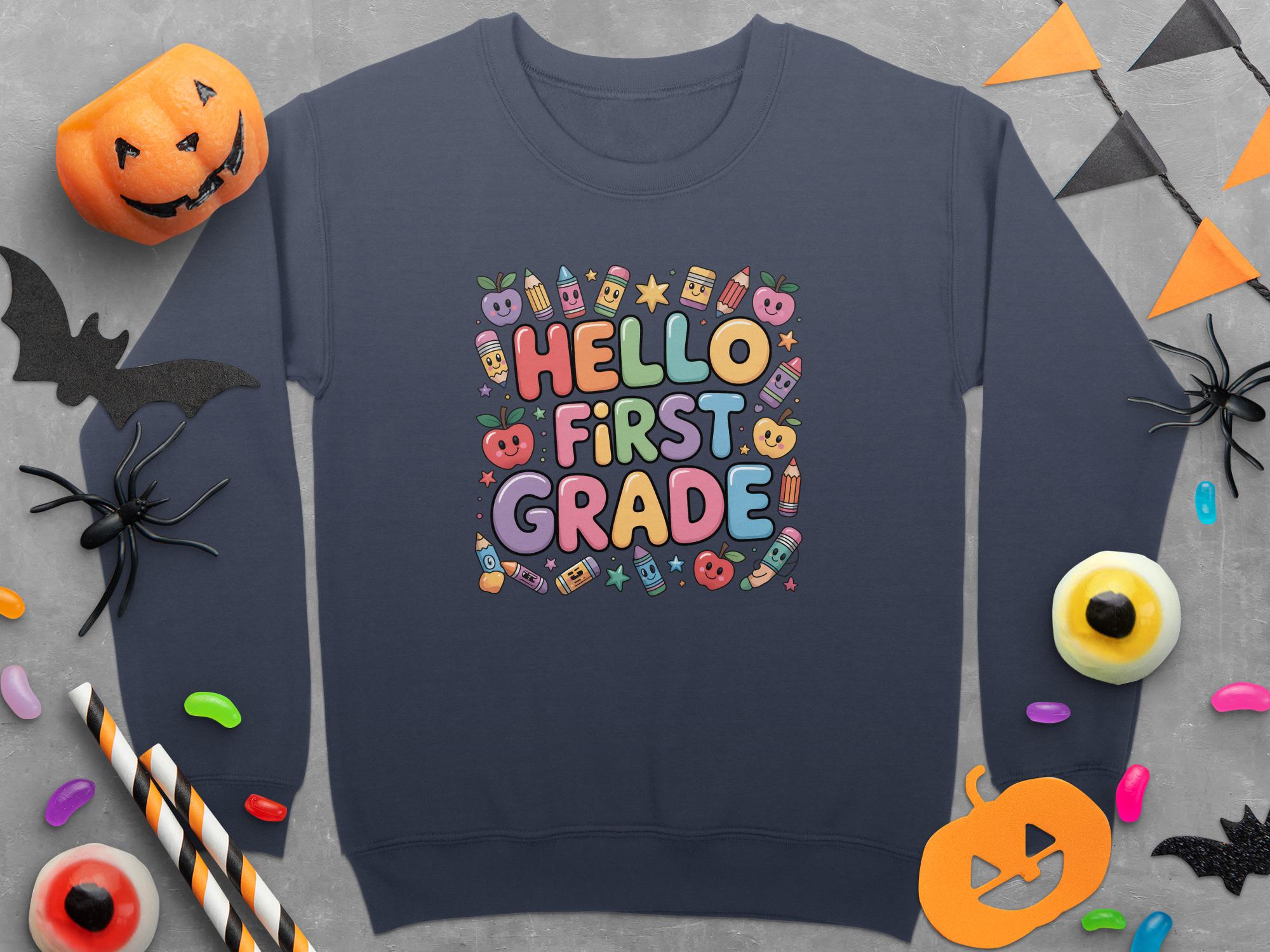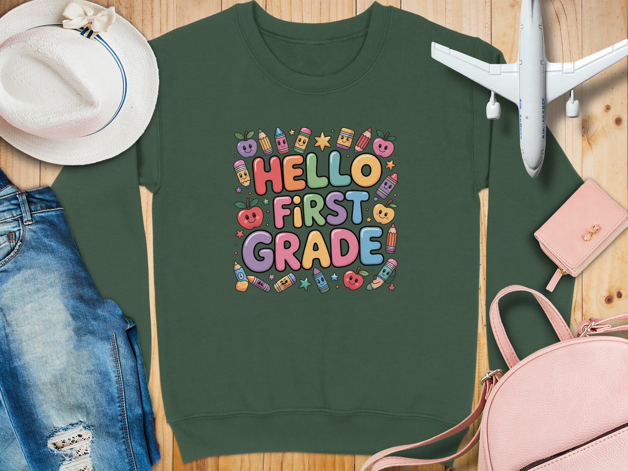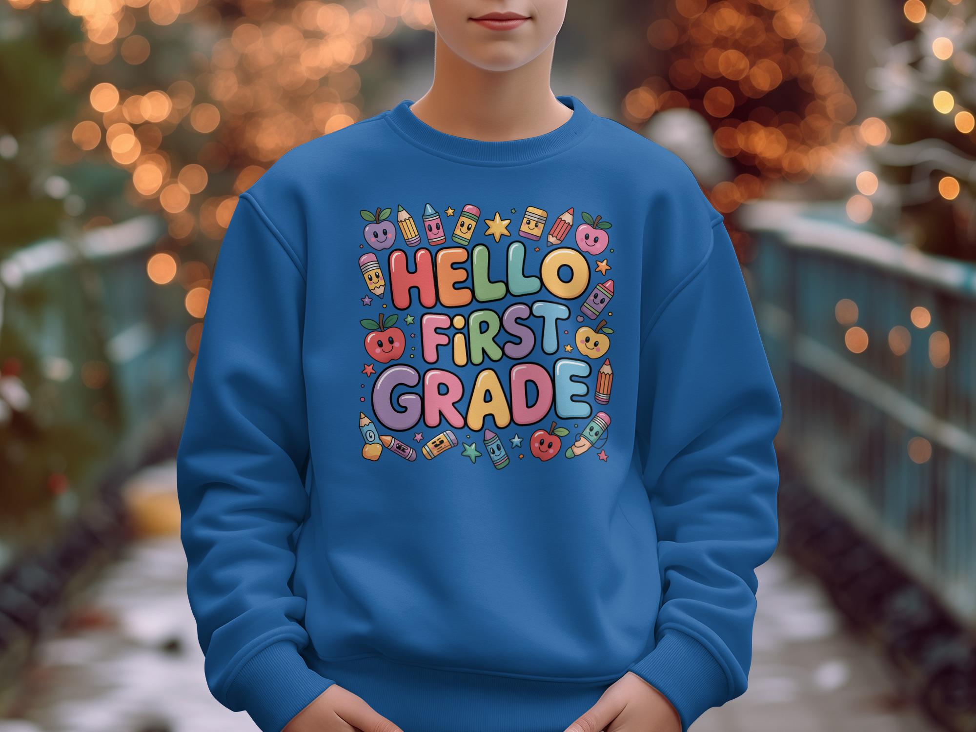 Hello First Grade Sweatshirt: Fun Back to School Design
