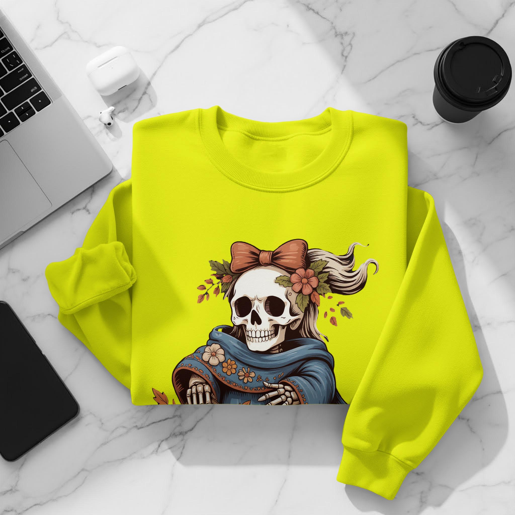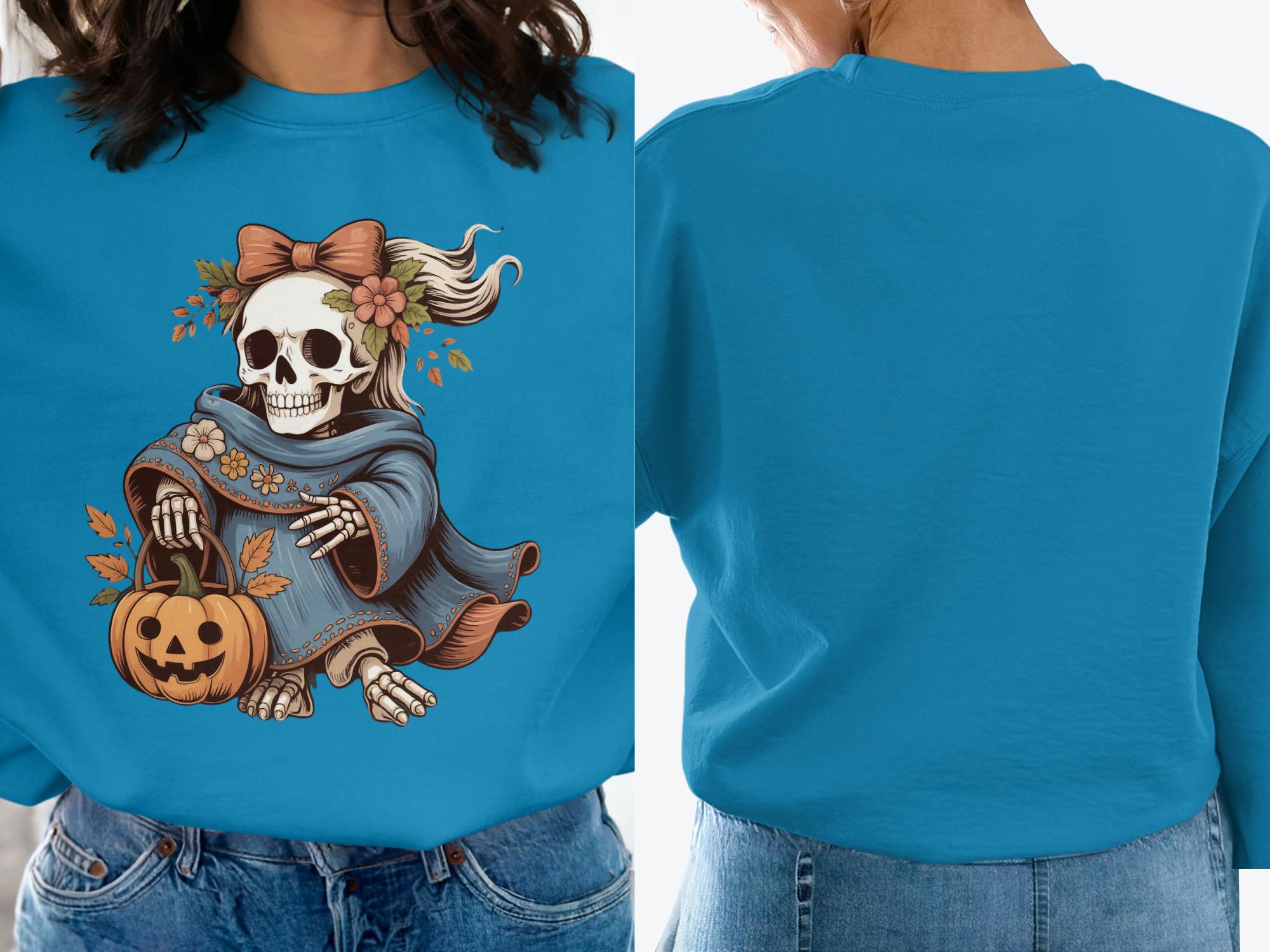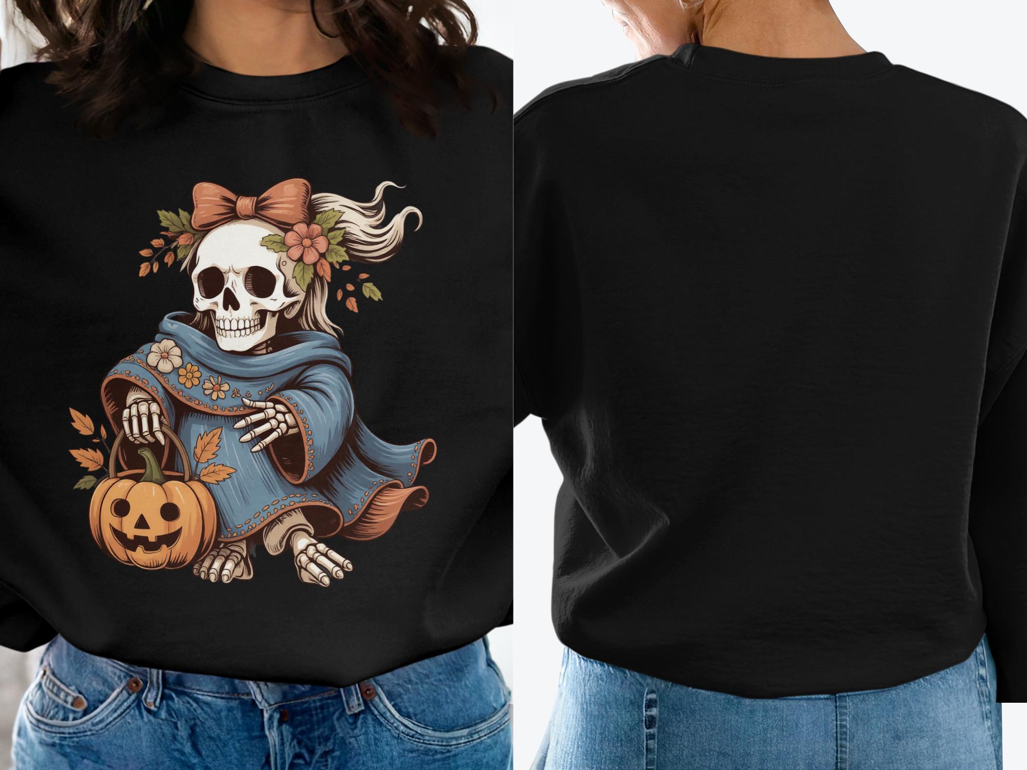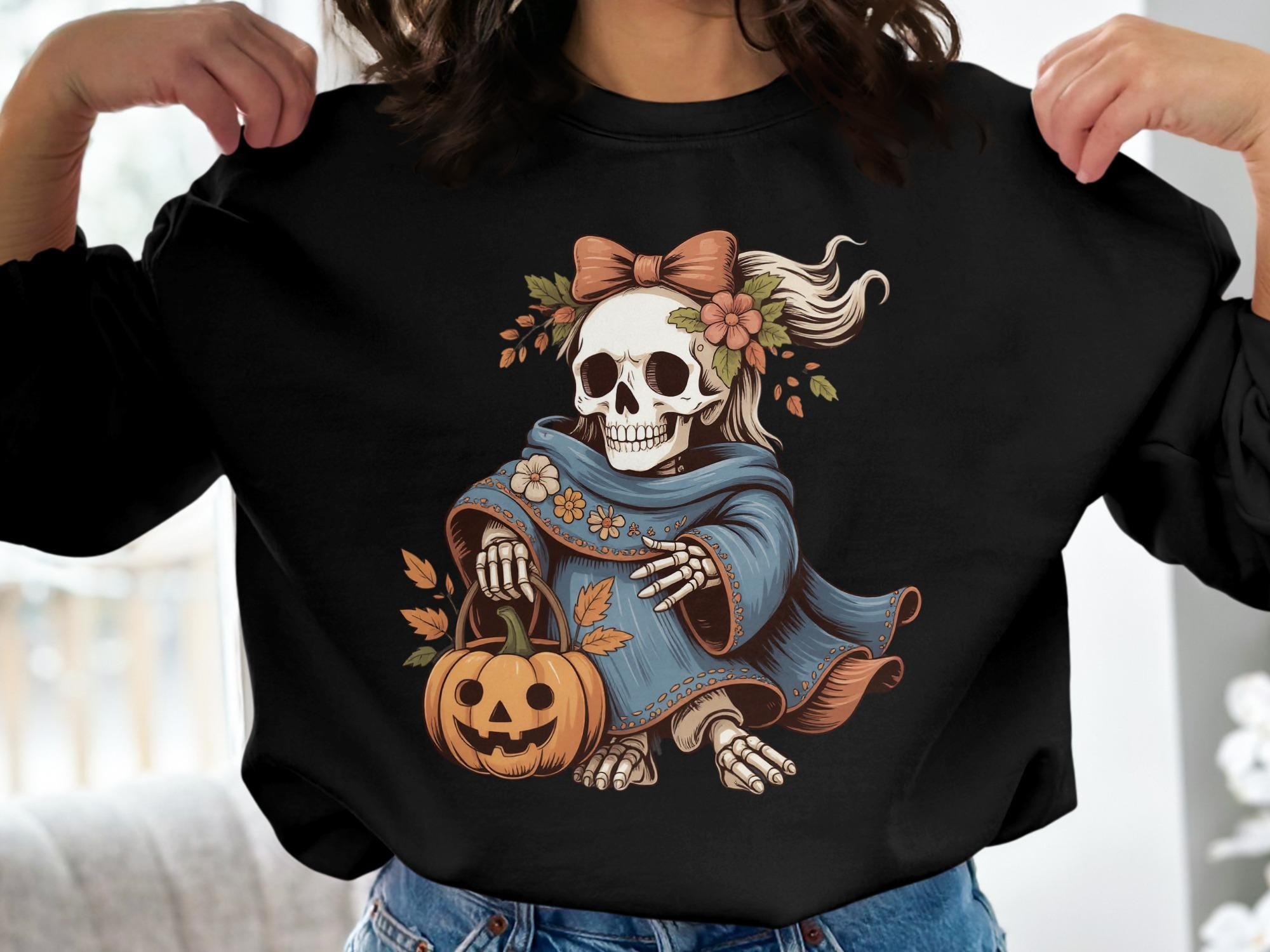 Embrace the spooky season with this Vintage Halloween Skull Sweatshirt featuring a retro spooky skeleton and a cute pumpkin. Perfect for unique fall fashion, this cozy Halloween top is sure to turn heads at any Halloween party or gathering. Ai helped create this image. Enjoy the comfort and style, plus my Love it Guarantee - if you don't love it, you can return it for a full refund.