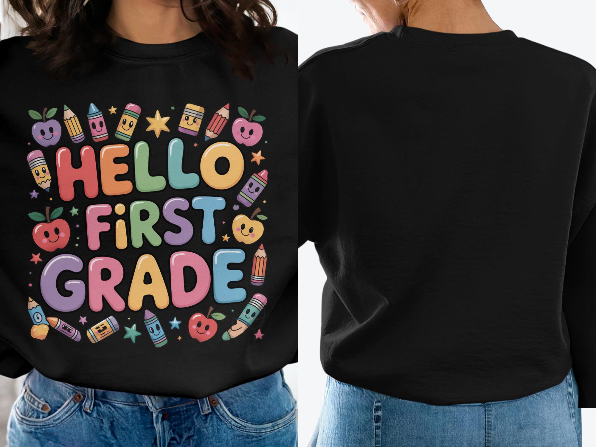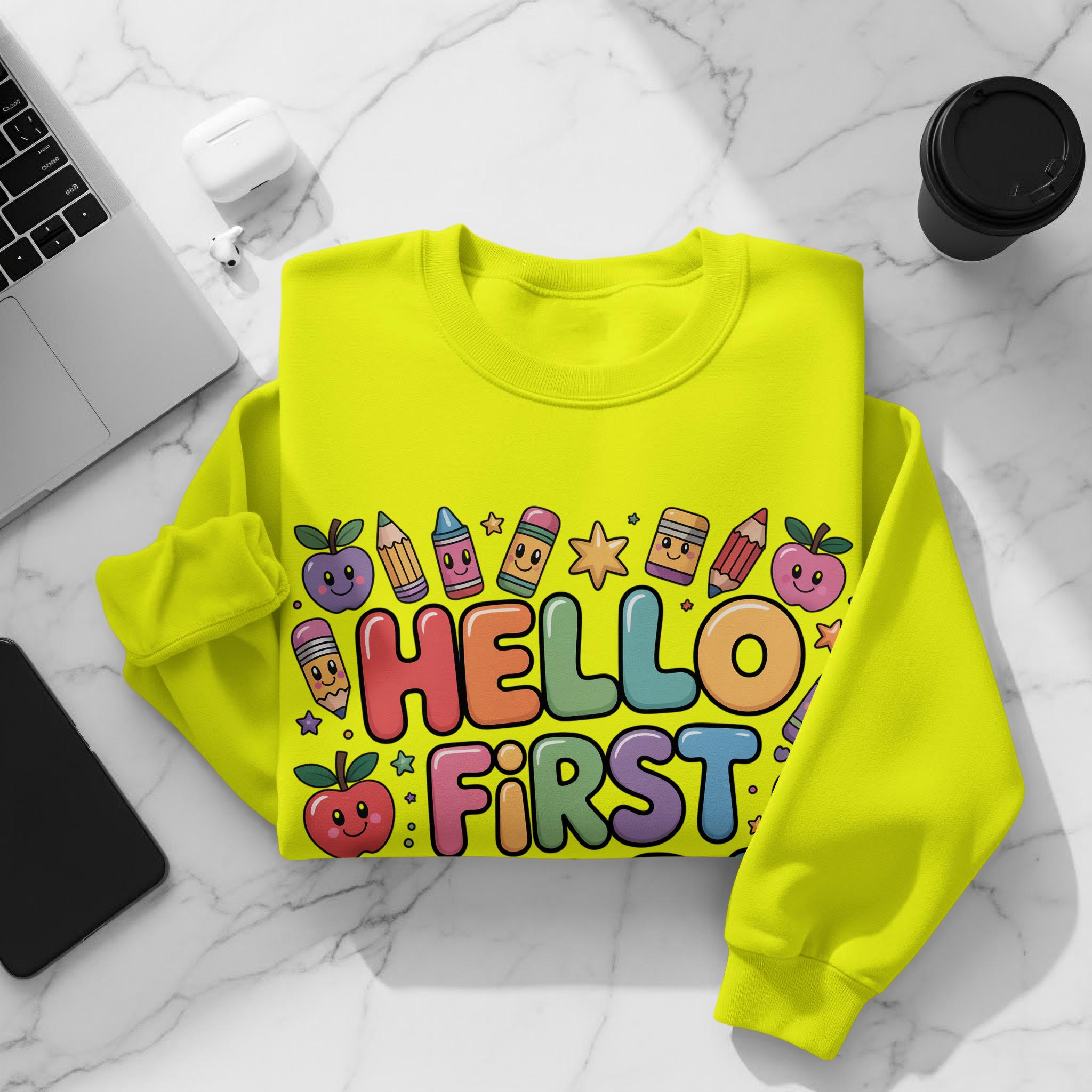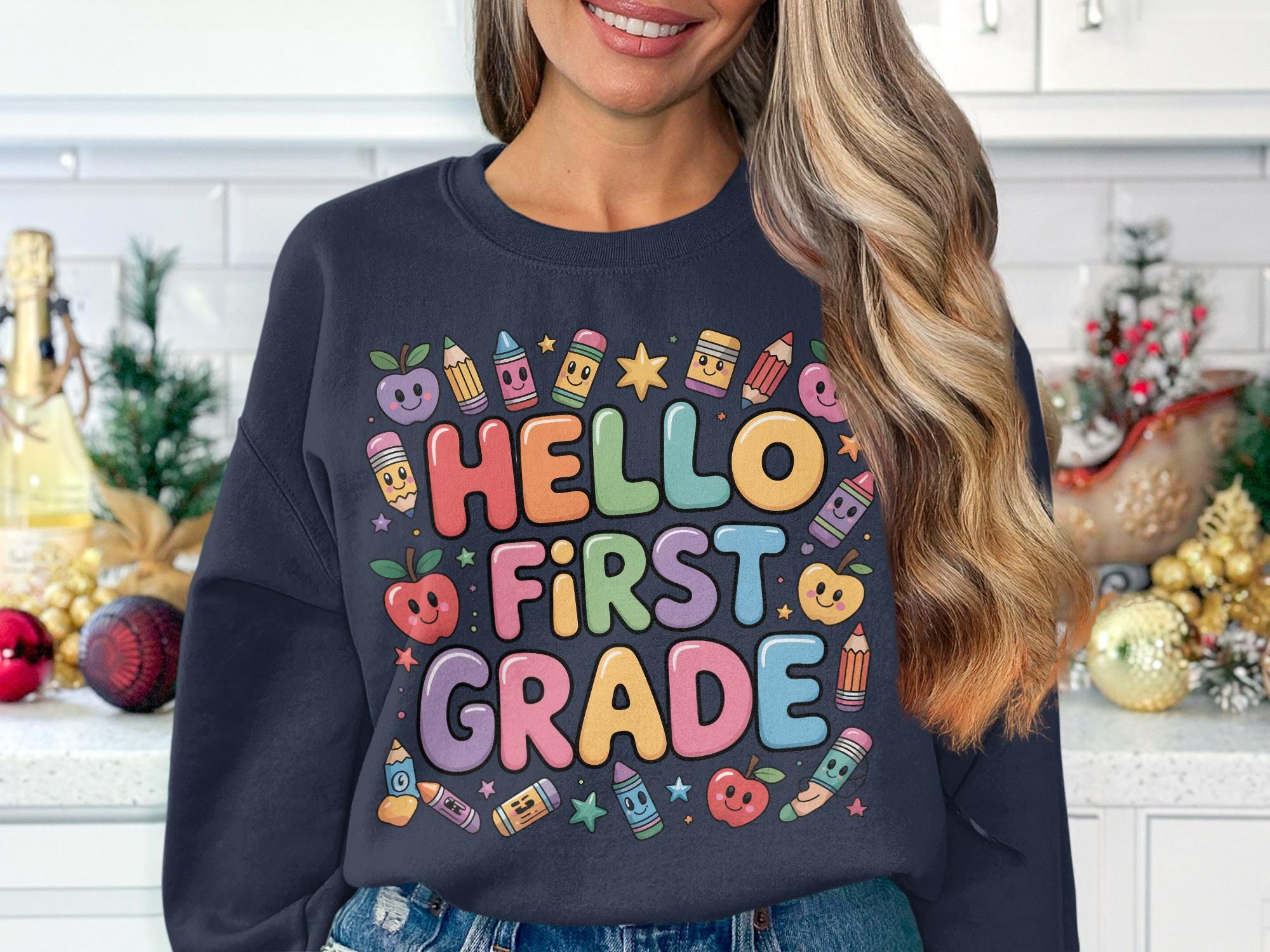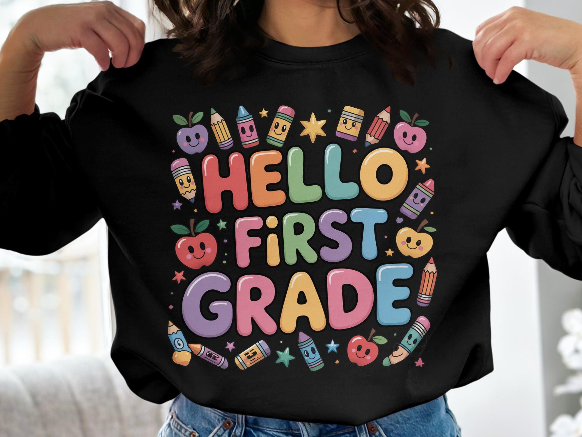Celebrate the start of first grade with our Hello First Grade sweatshirt, perfect for kids excited about school. Featuring a playful design created with the help of AI, this sweatshirt is not only fun but also comfortable. Our Love it Guarantee ensures that if your child doesn’t love this sweatshirt, you can return it for a full refund.
