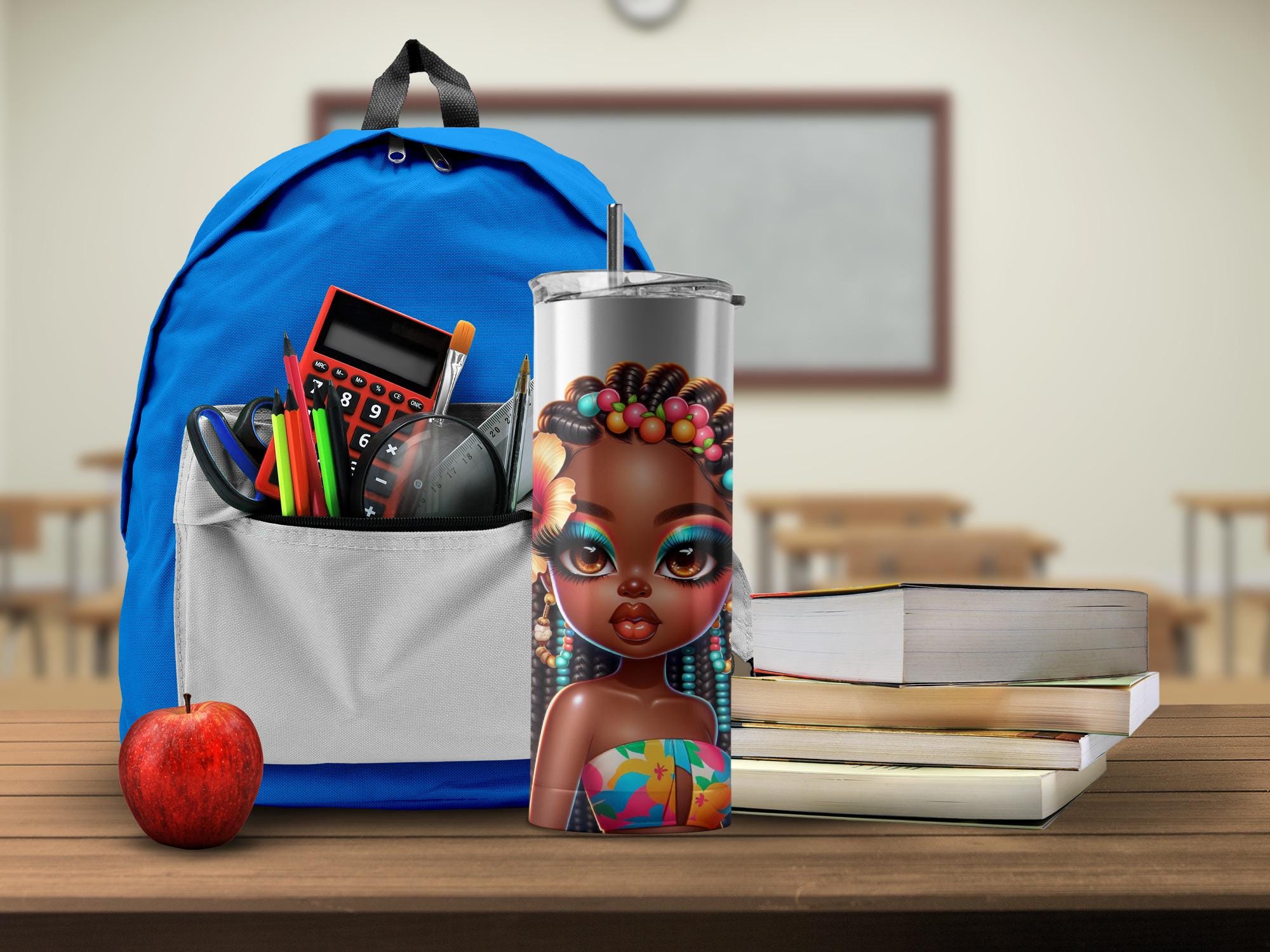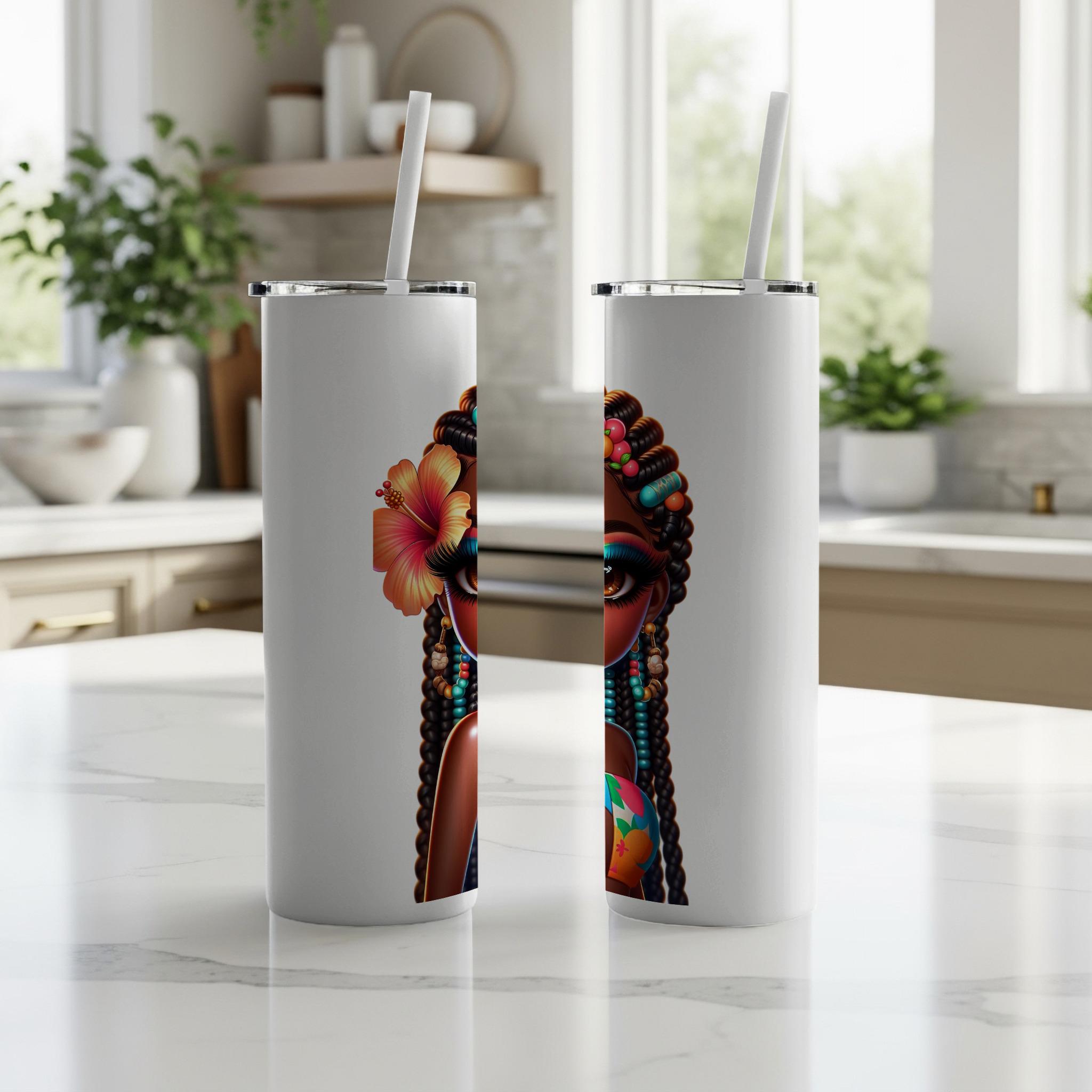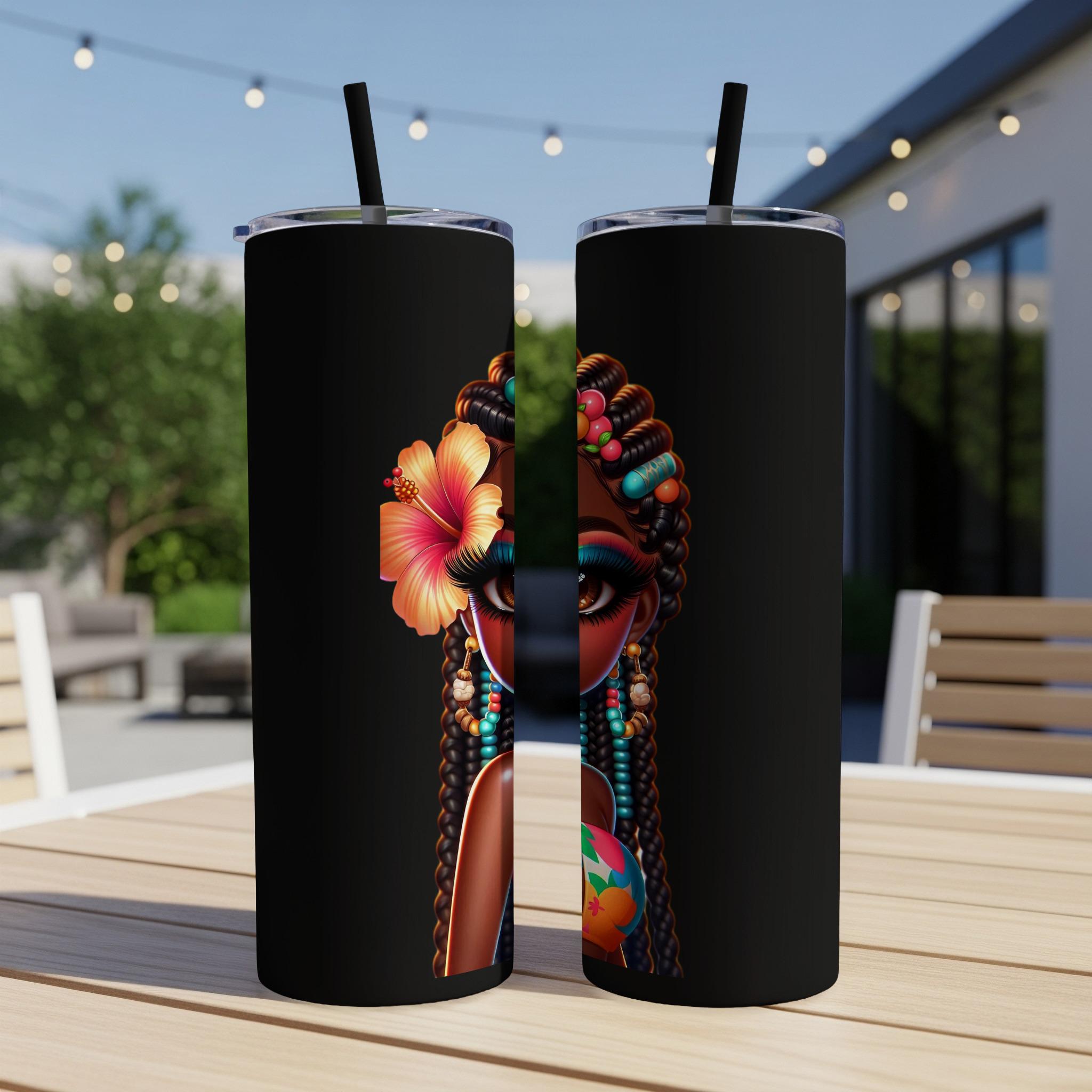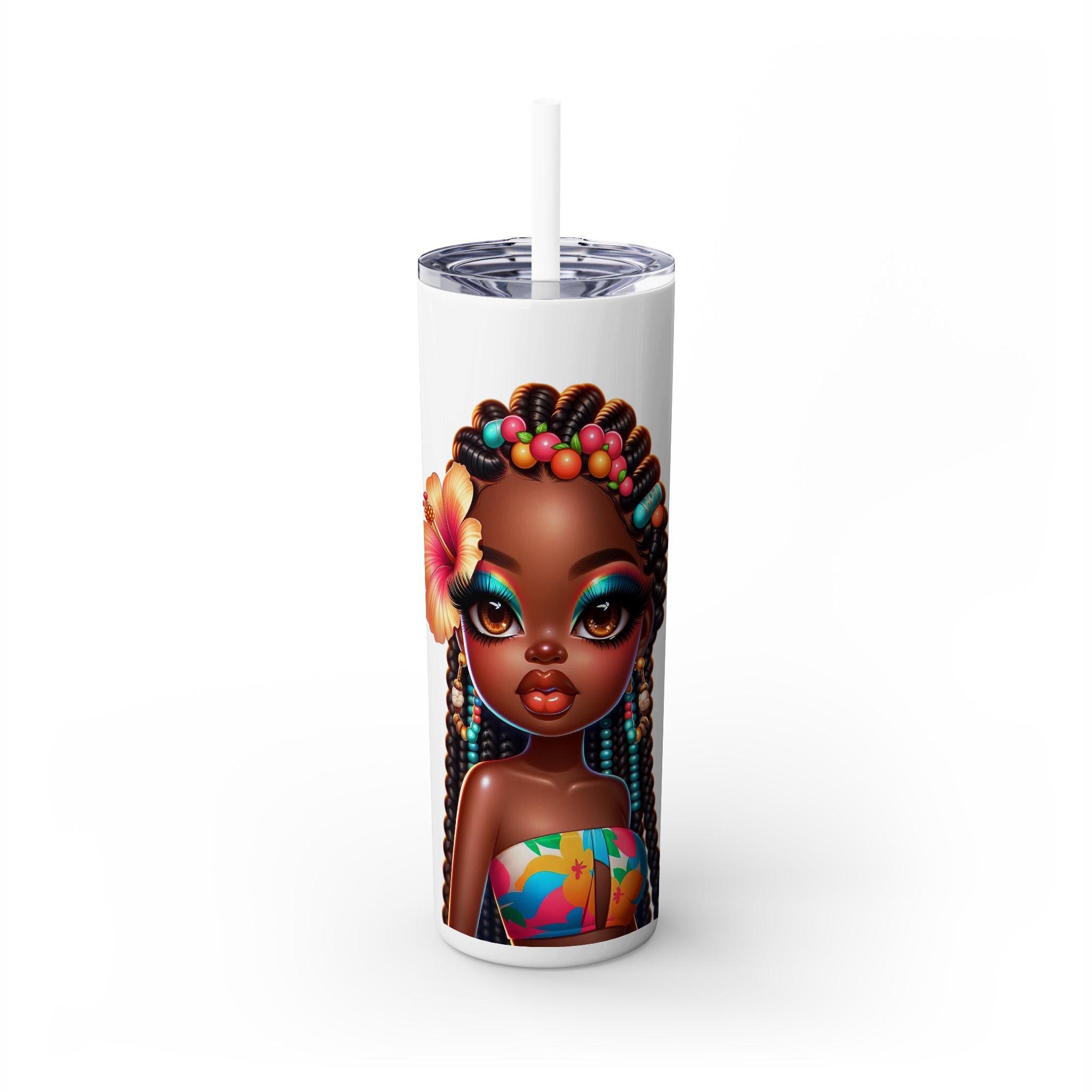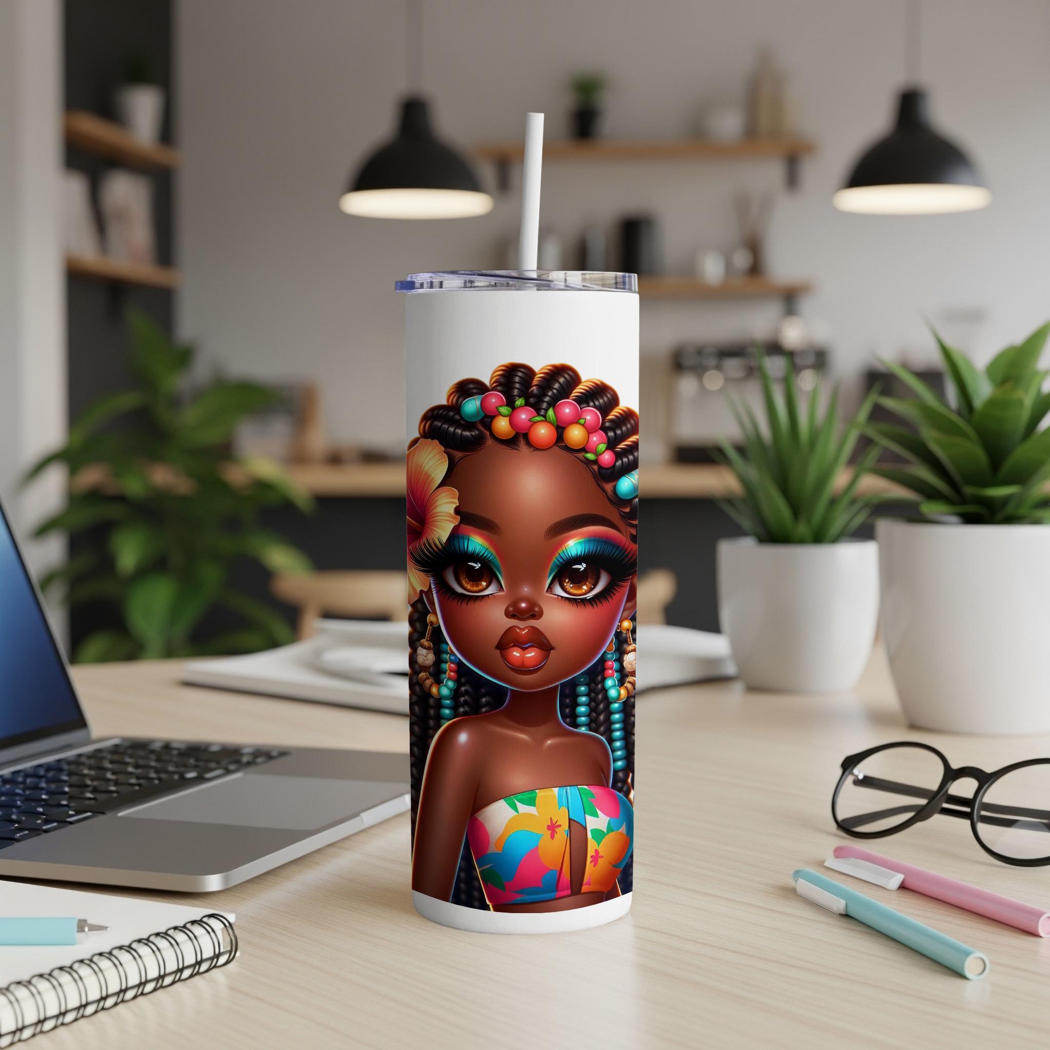 This vibrant tumbler features a stunning AI-created art doll with colorful floral braids. Perfect as a cute cartoon character cup, it makes a unique gift idea. The love it guarantee offers a full refund if the customer does not love the product.
