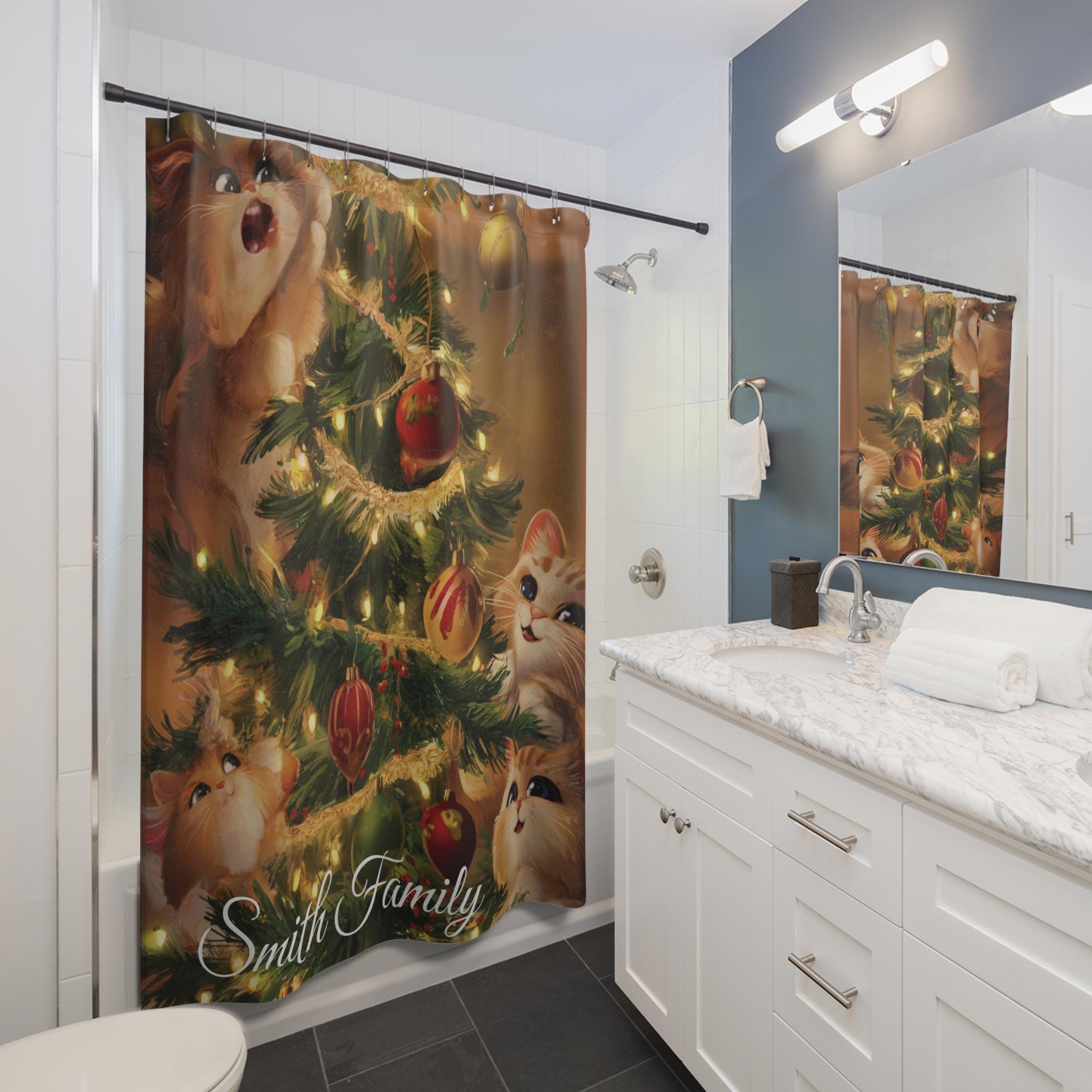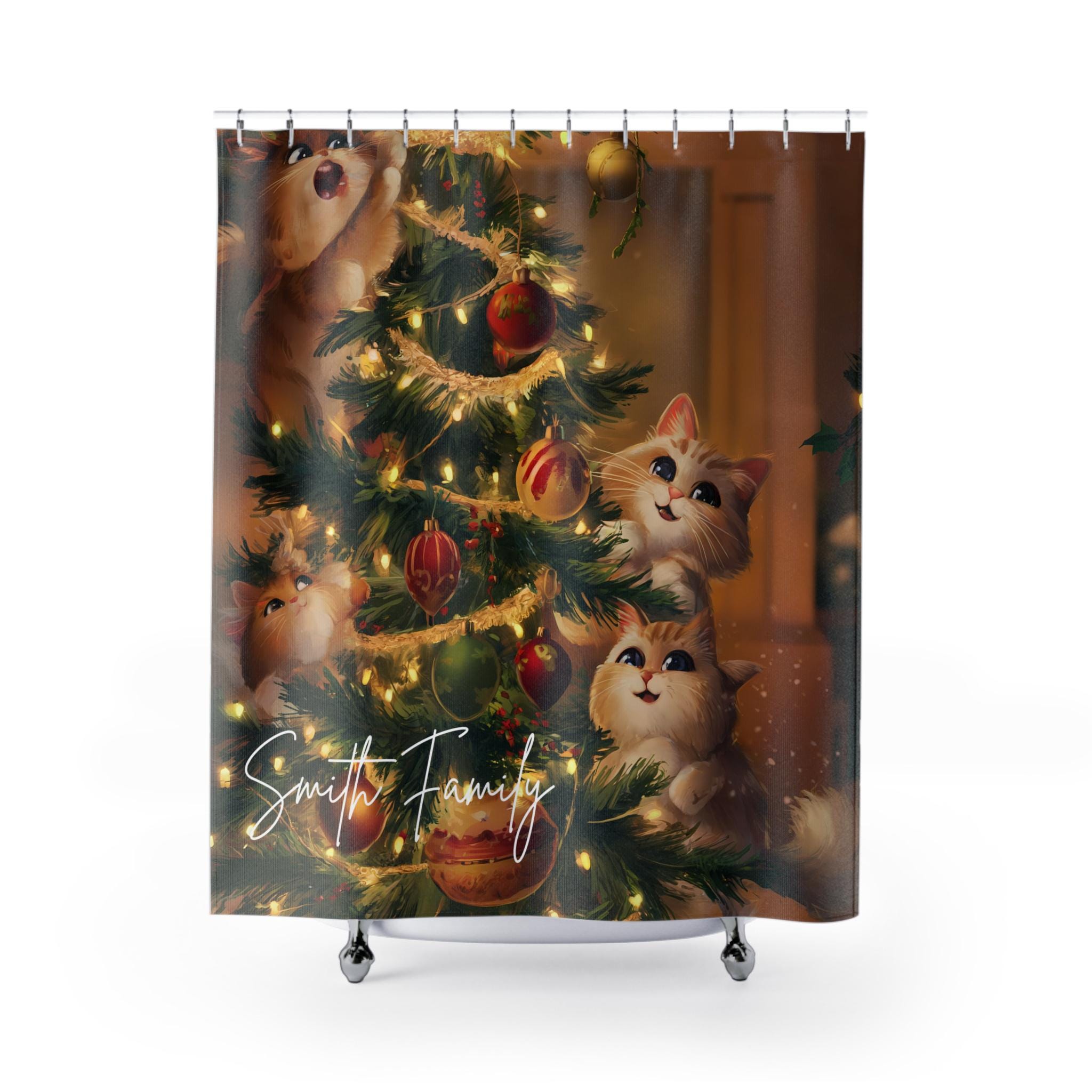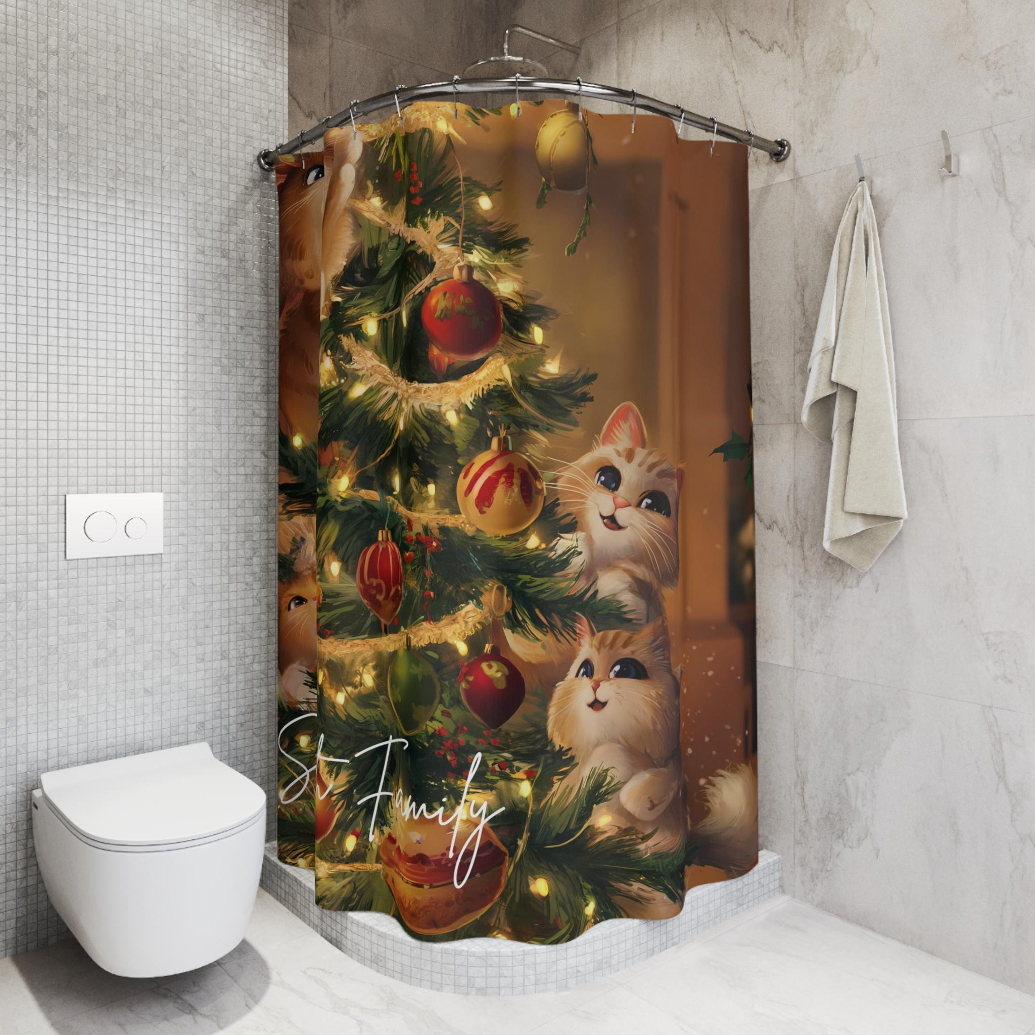 Christmas Cats Shower Curtain: Festive Holiday Bathroom Decor, cat lovers gift, co worker gift