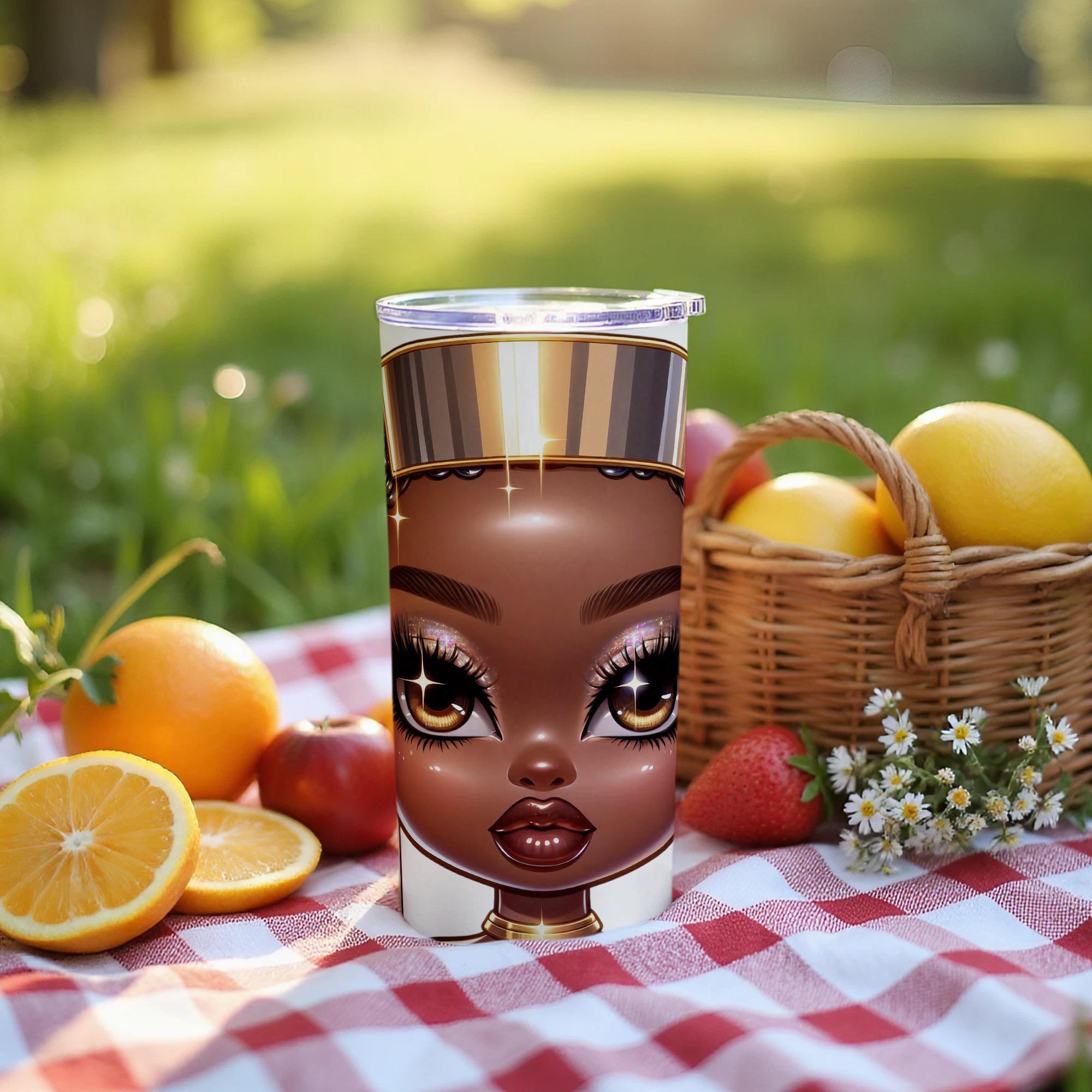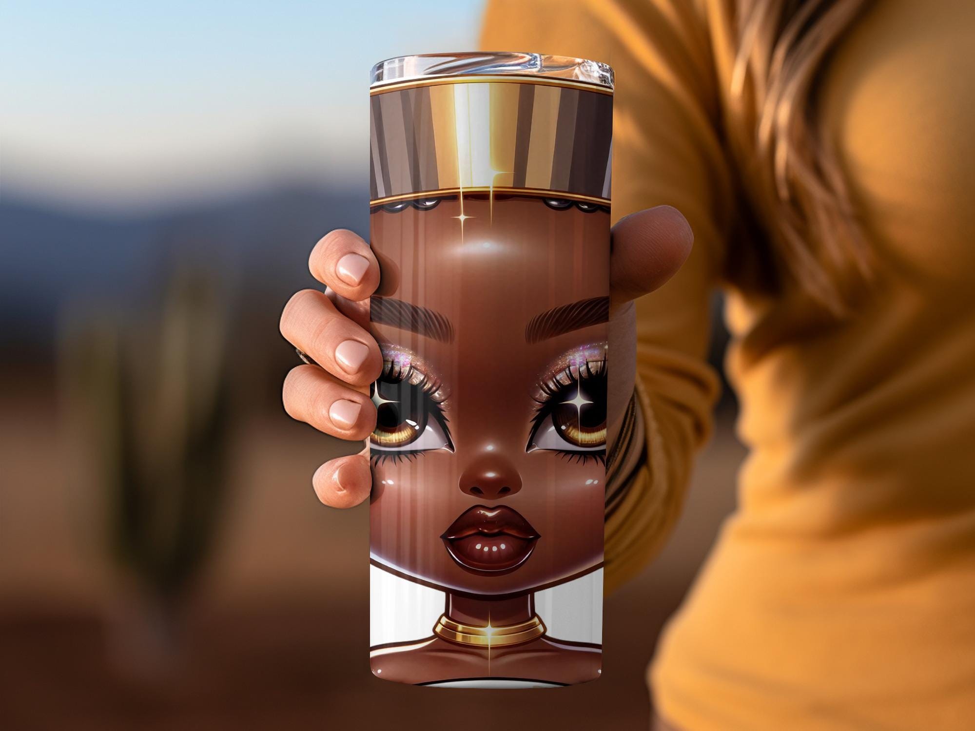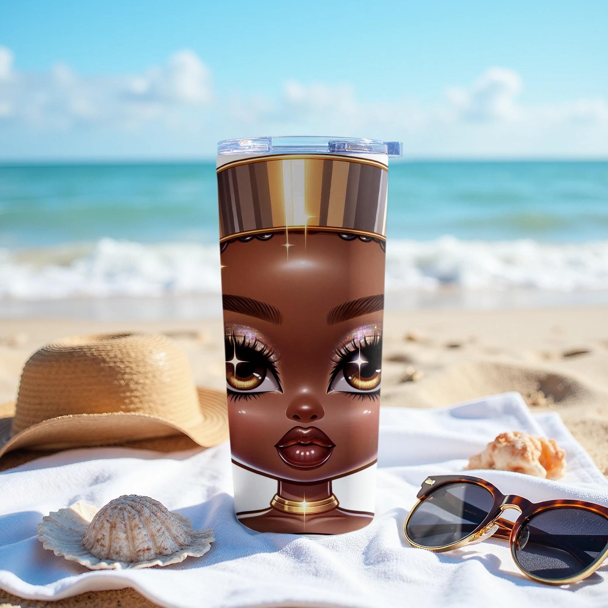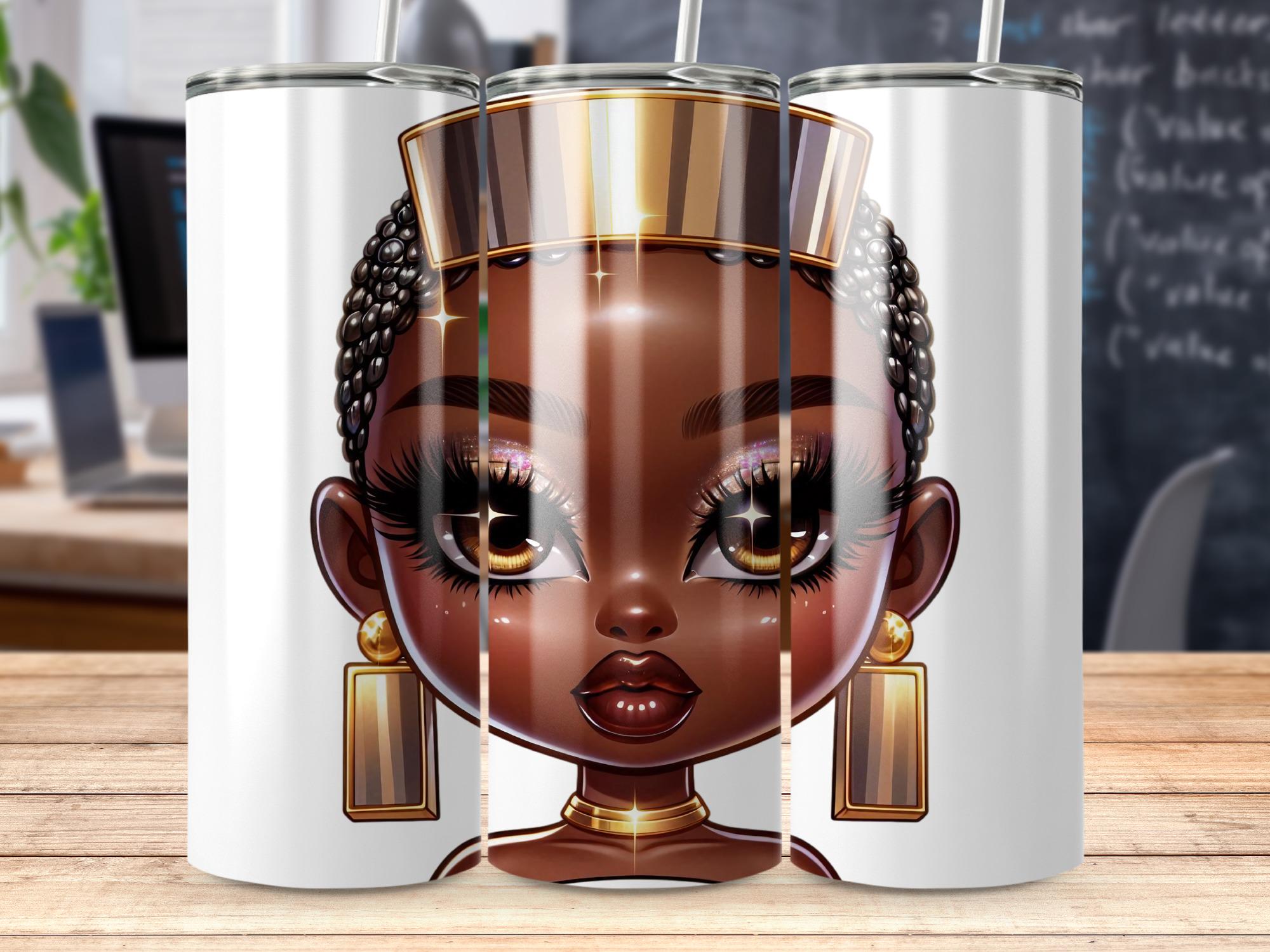 This design showcases a beautifully rendered African Queen with intricate details. Her captivating gaze and regal demeanor make this tumbler a true statement piece.